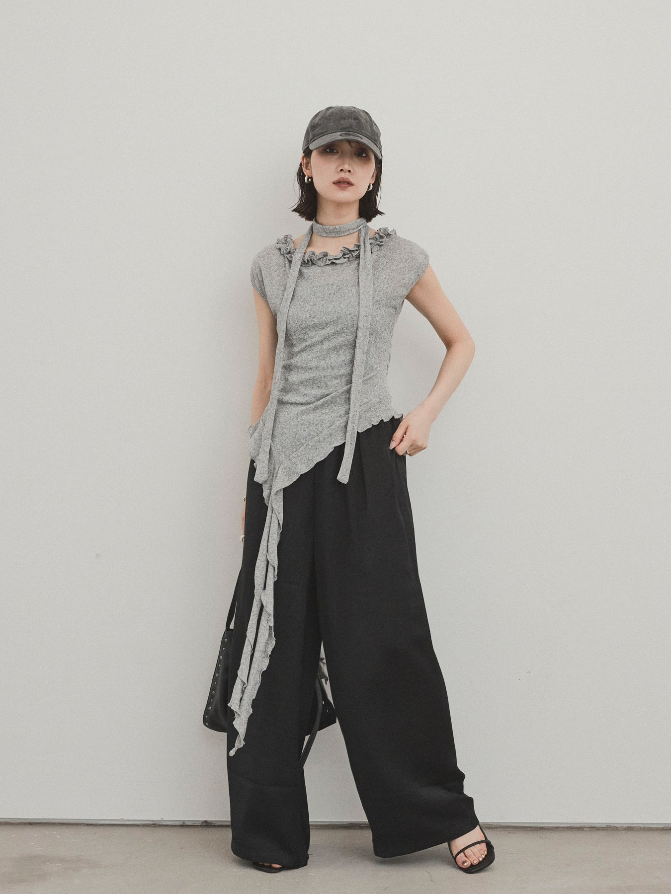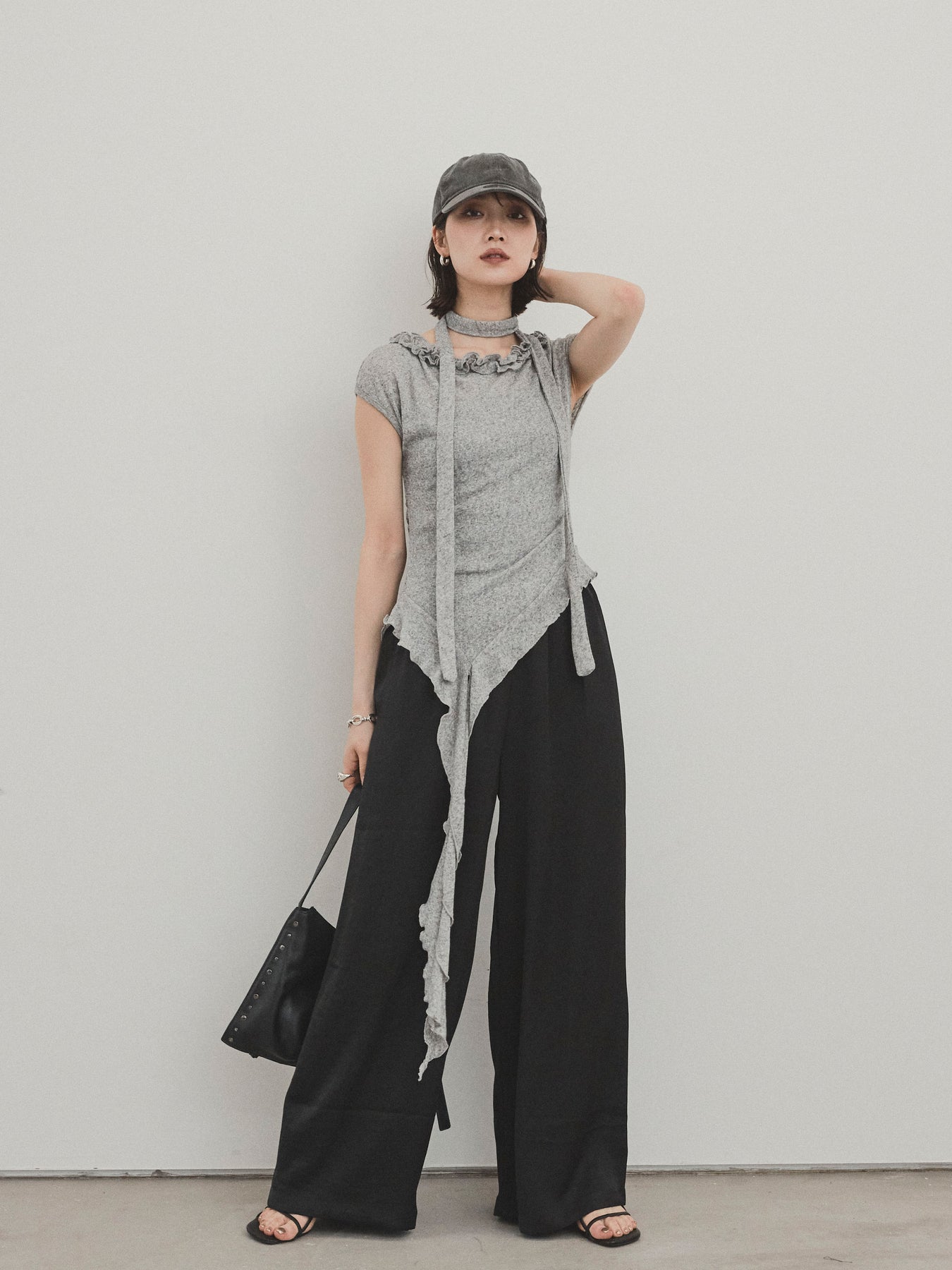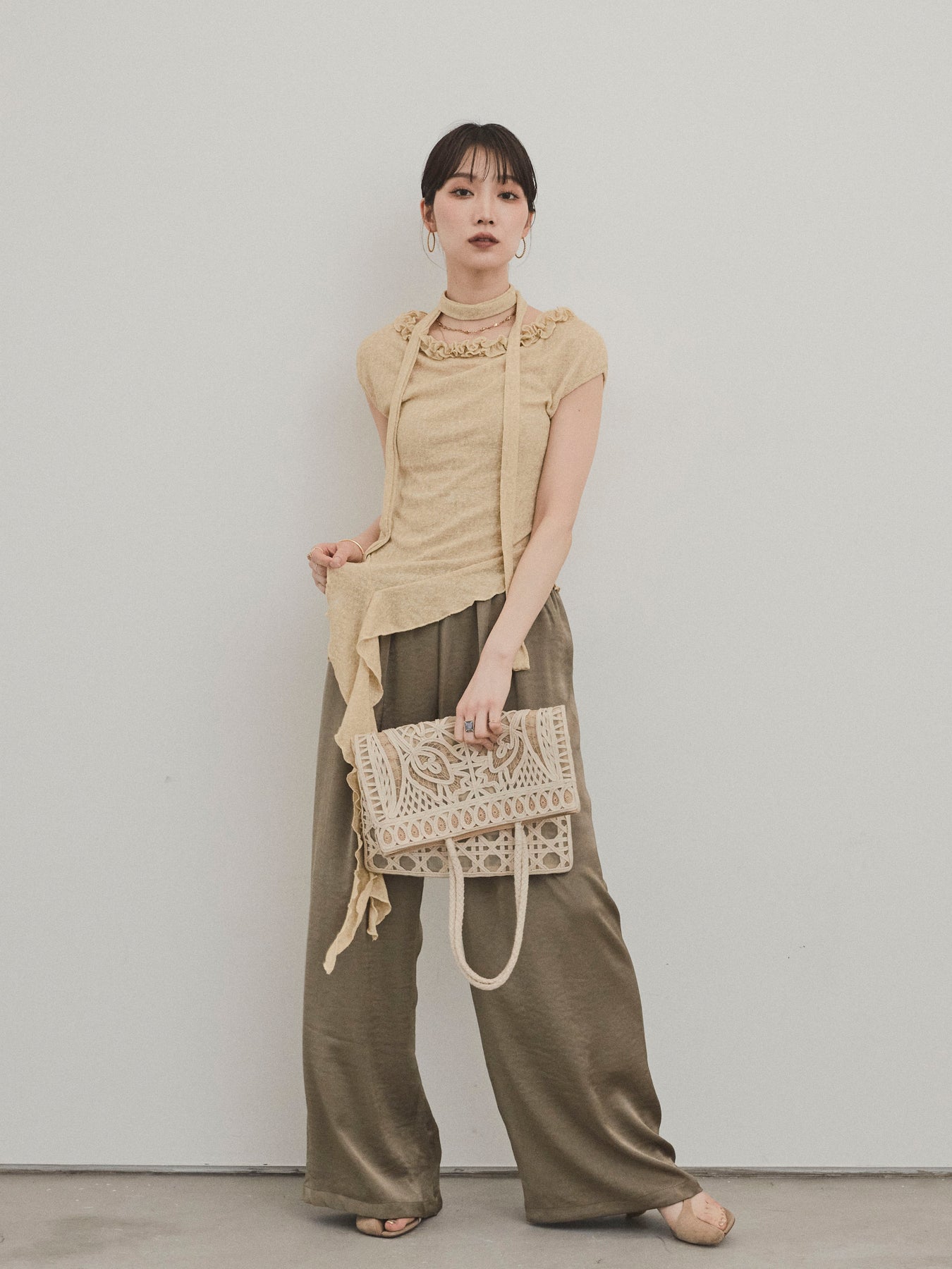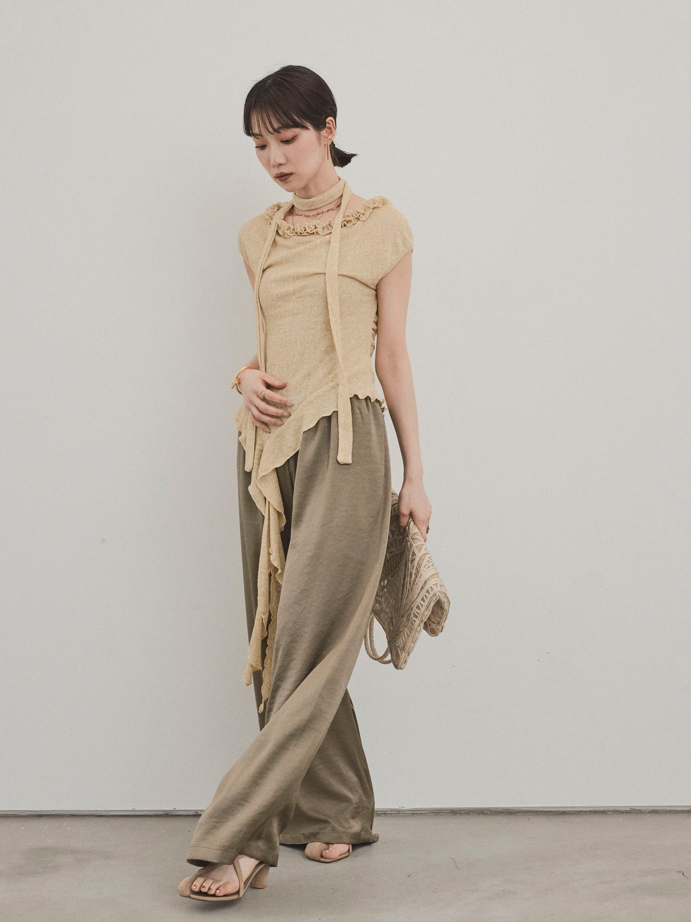 [SET]ラッフルシアーニットタンクトップ+サテンイージーパンツ(2set)
