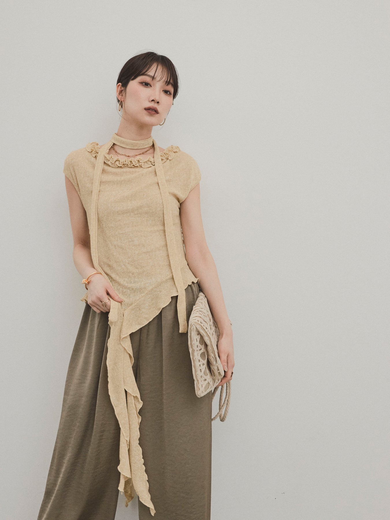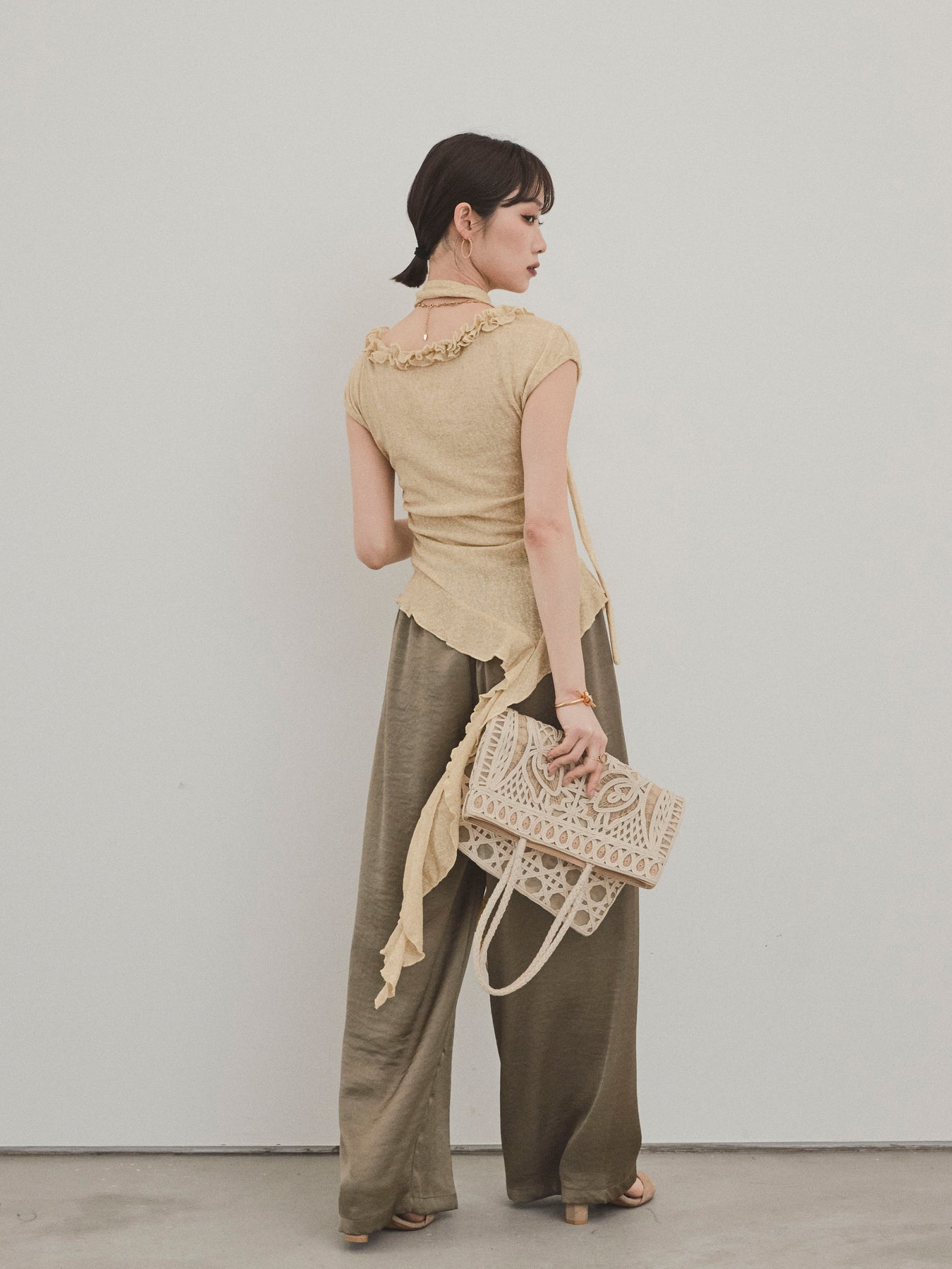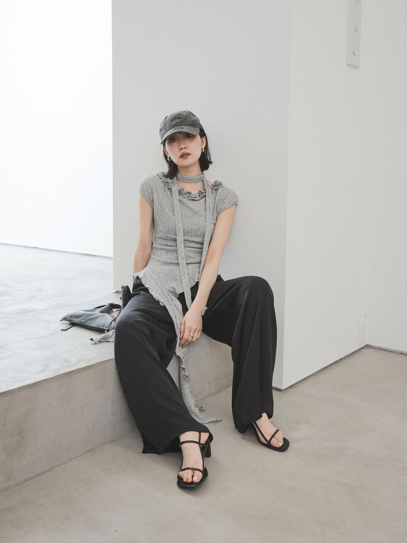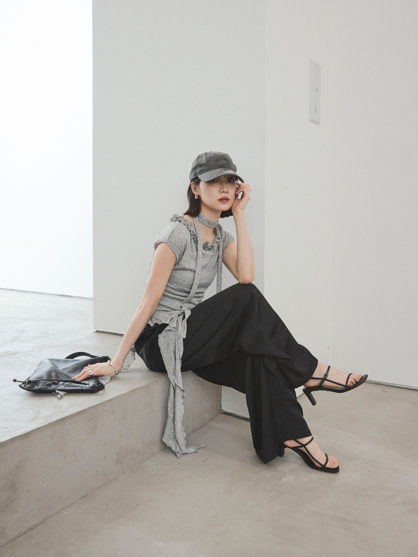 [SET]ラッフルシアーニットタンクトップ+サテンイージーパンツ(2set)