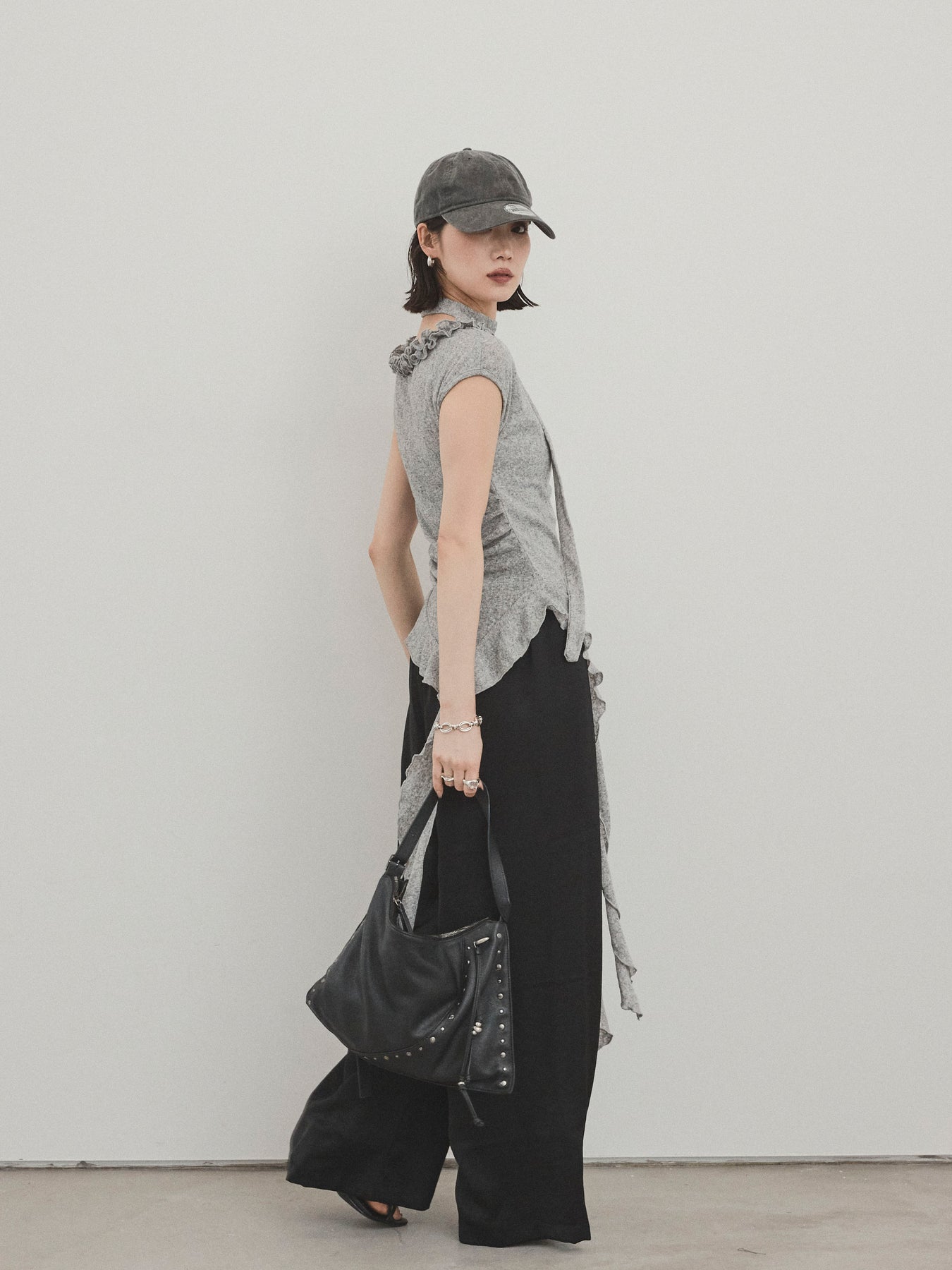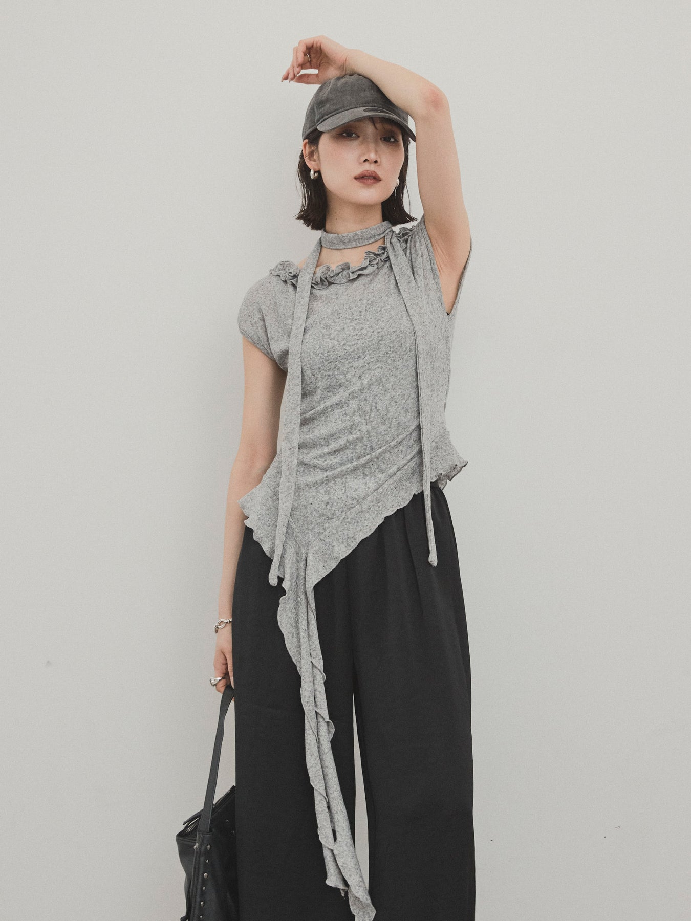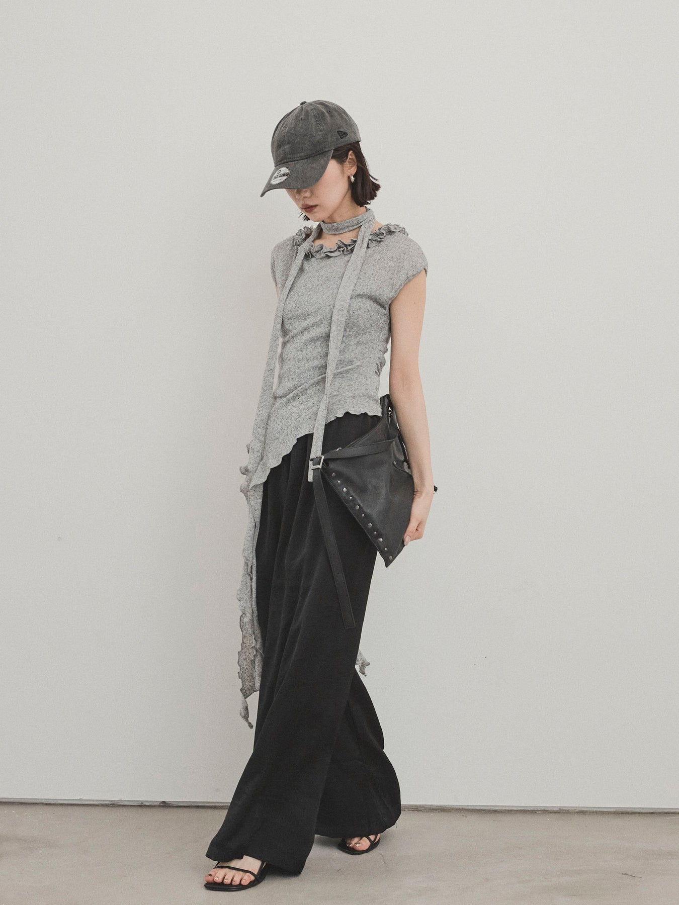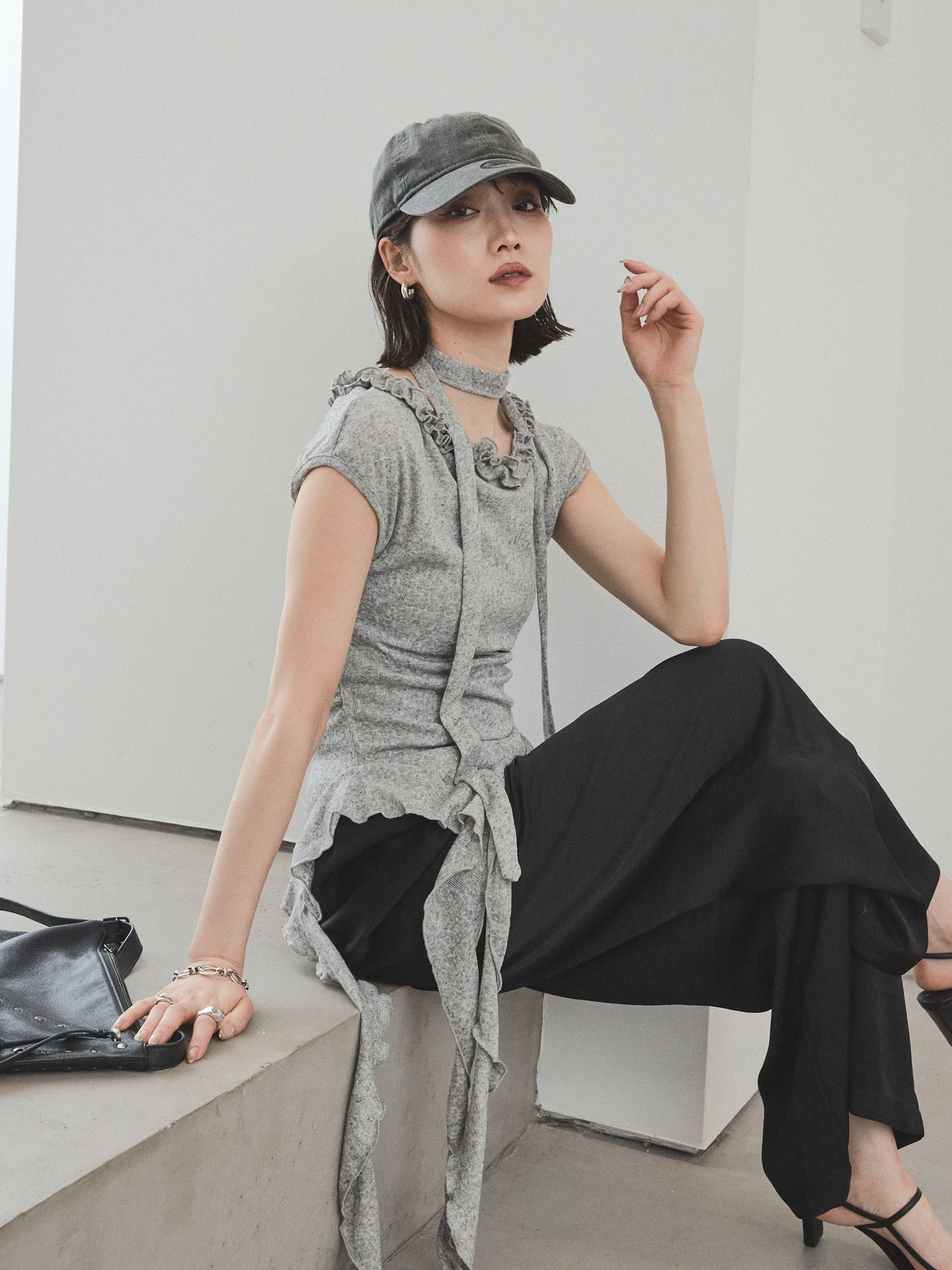 [SET]ラッフルシアーニットタンクトップ+サテンイージーパンツ(2set)