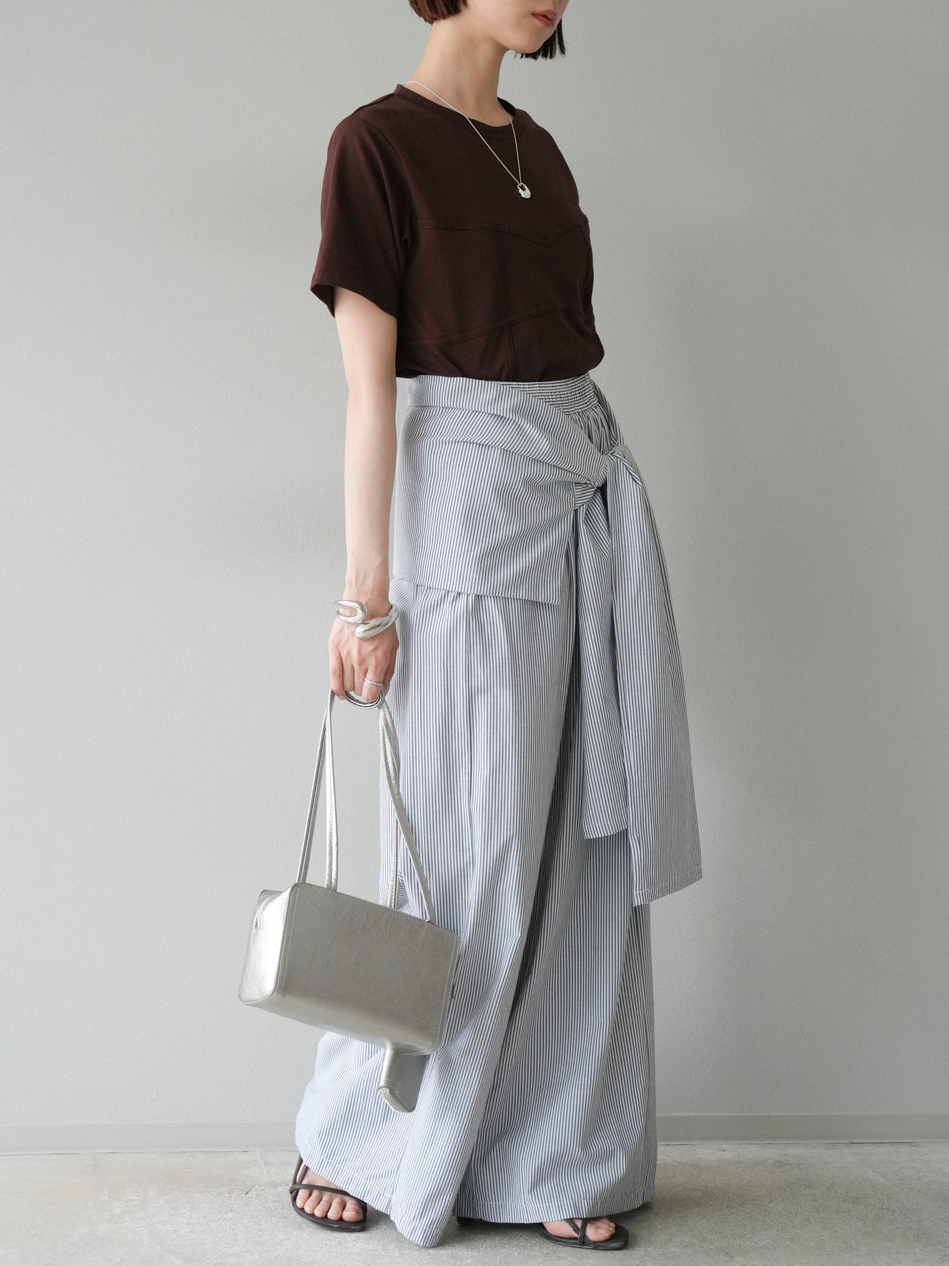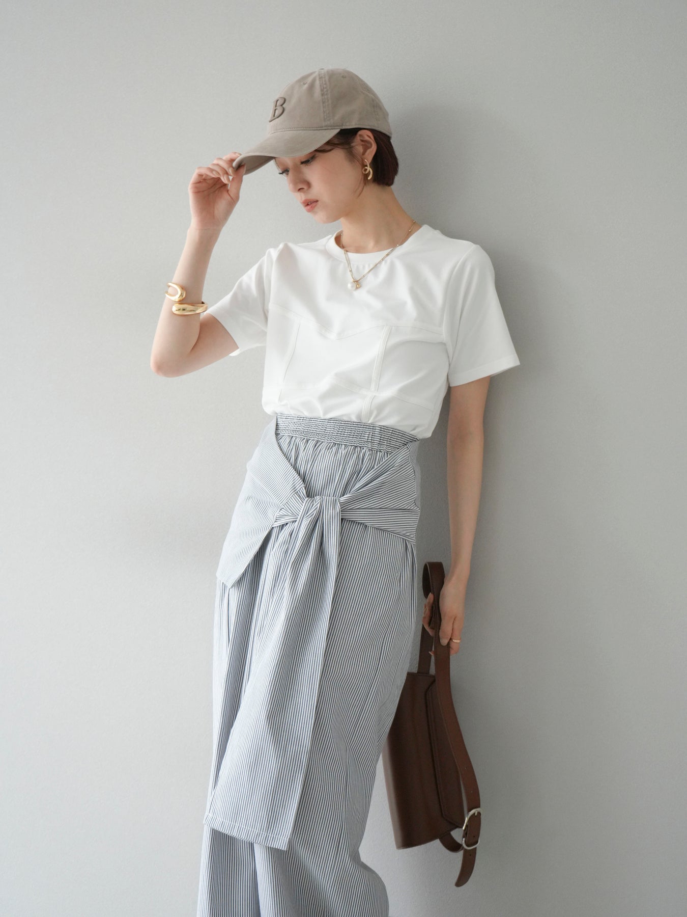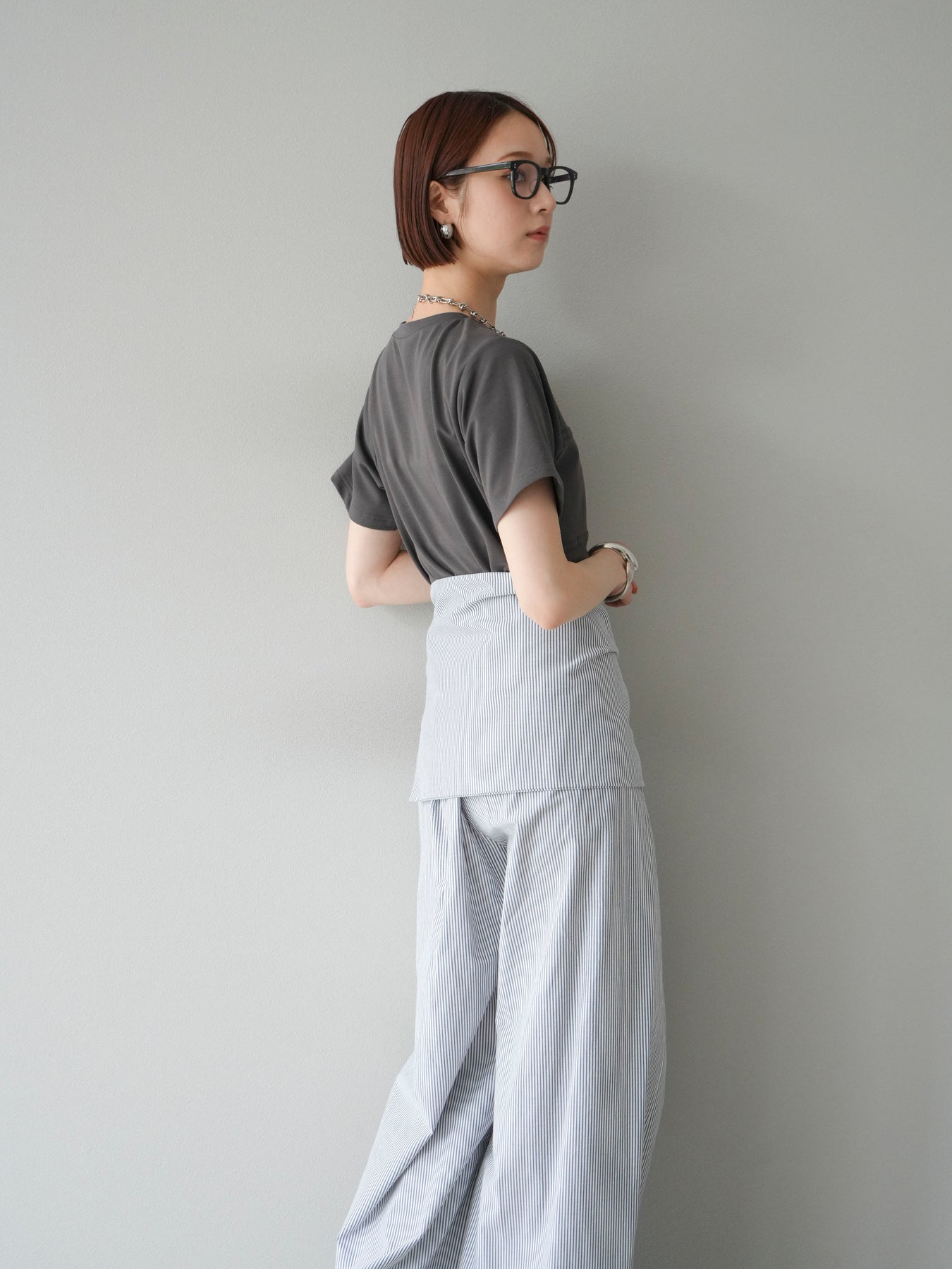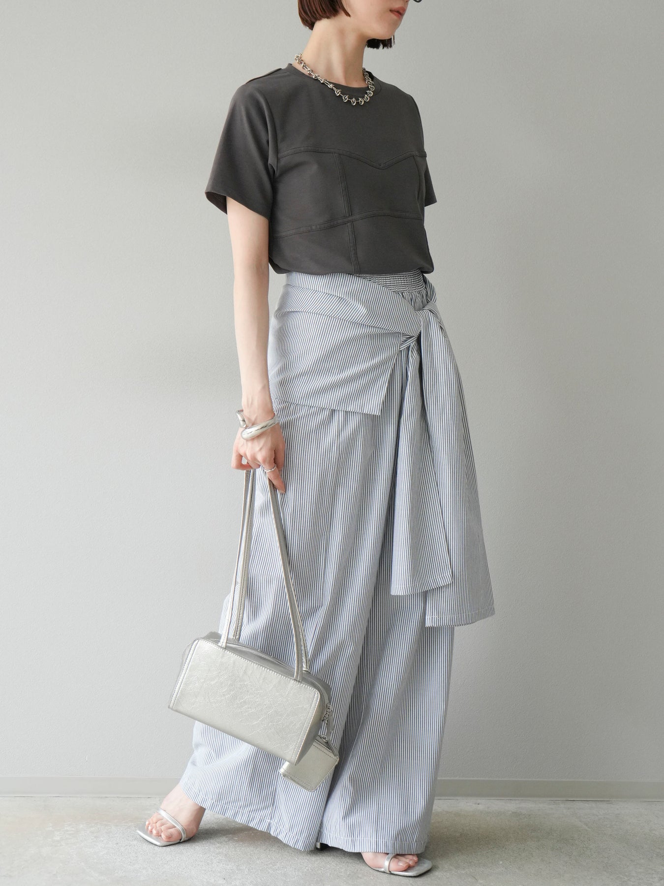[SET]ビスチェデザインTシャツ+ウエスト巻きストライプイージーパンツ(2set)