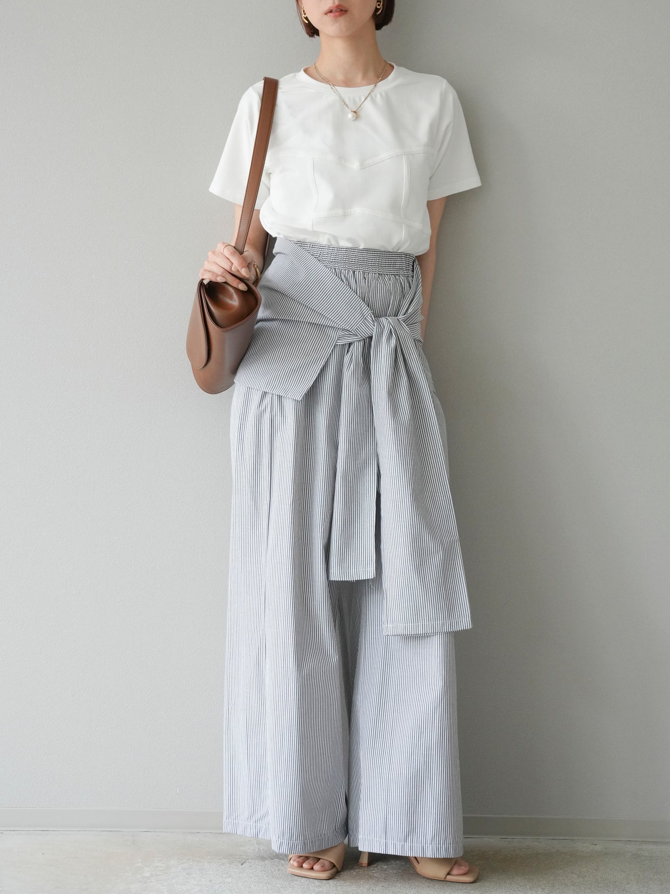 ◆ [予約]ウエスト巻きストライプイージーパンツ