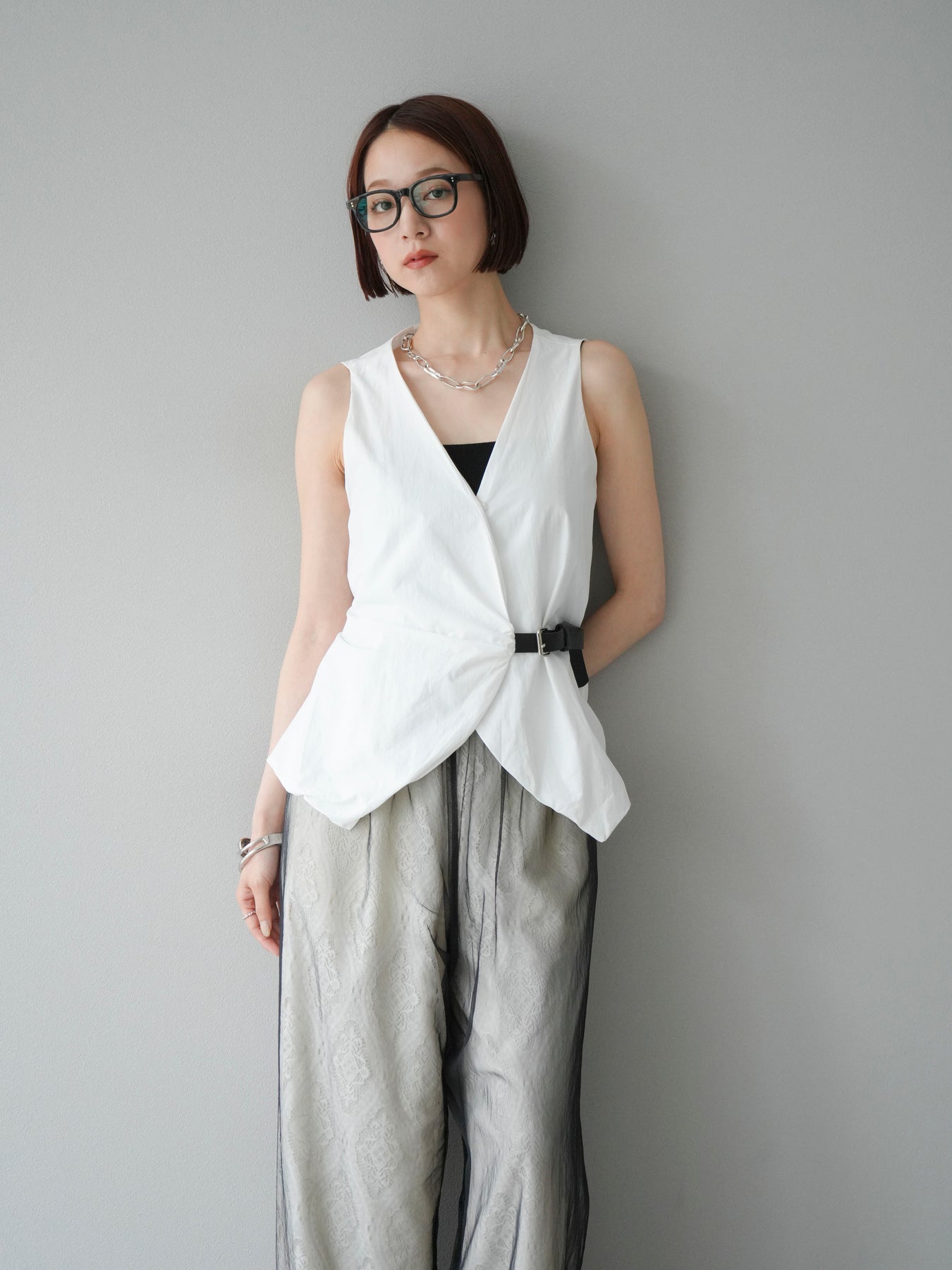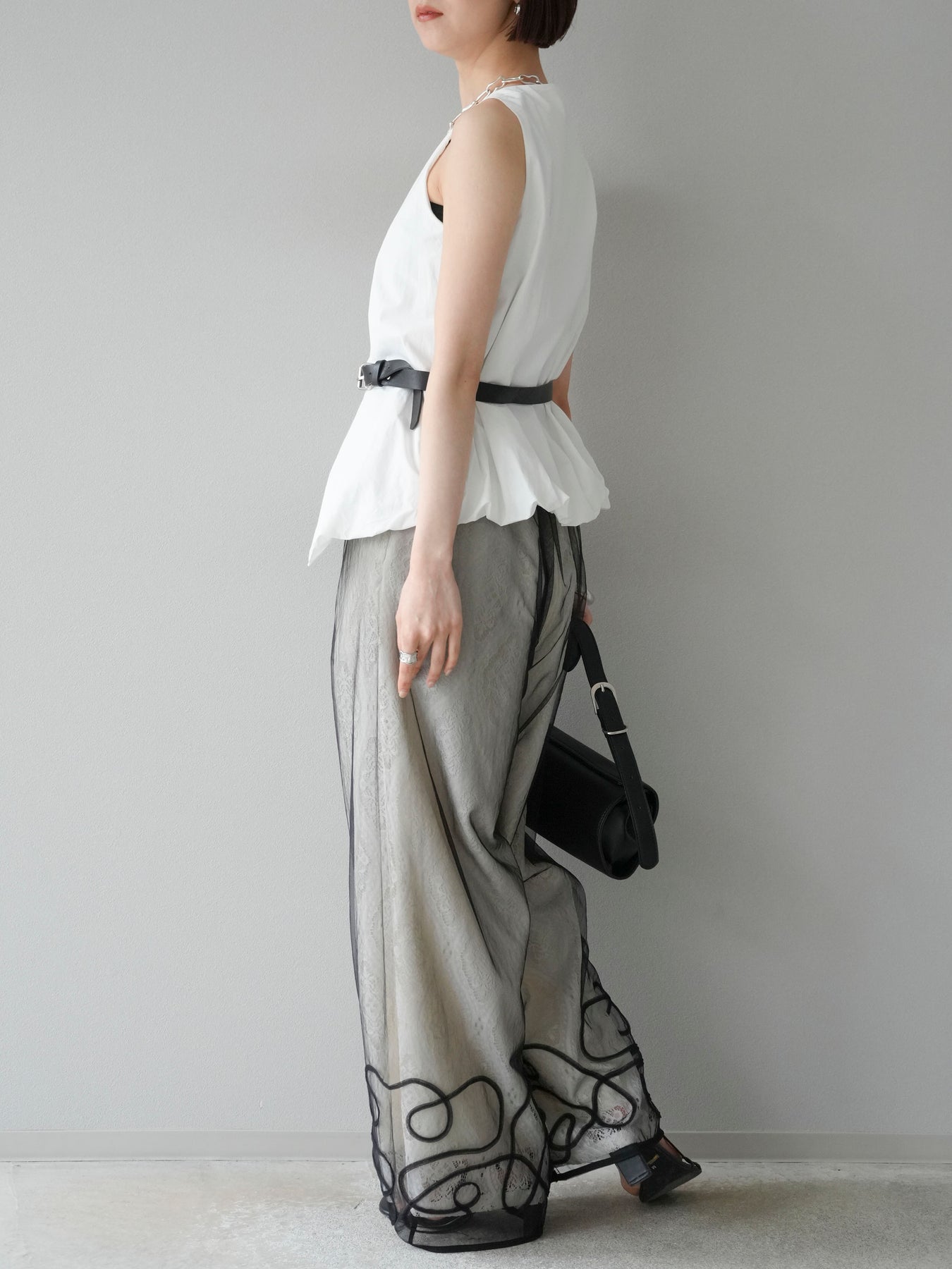 [SET]ベルトデザインバルーンブラウス+レースタックイージーパンツ(2set)