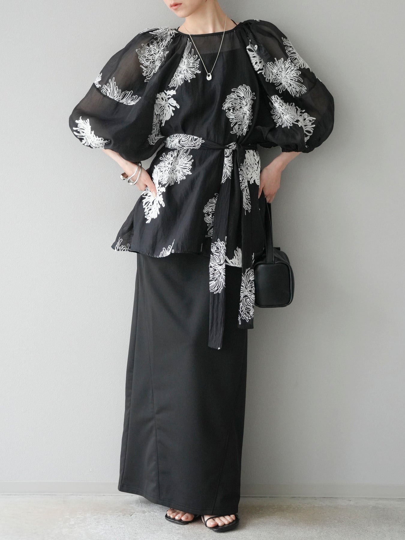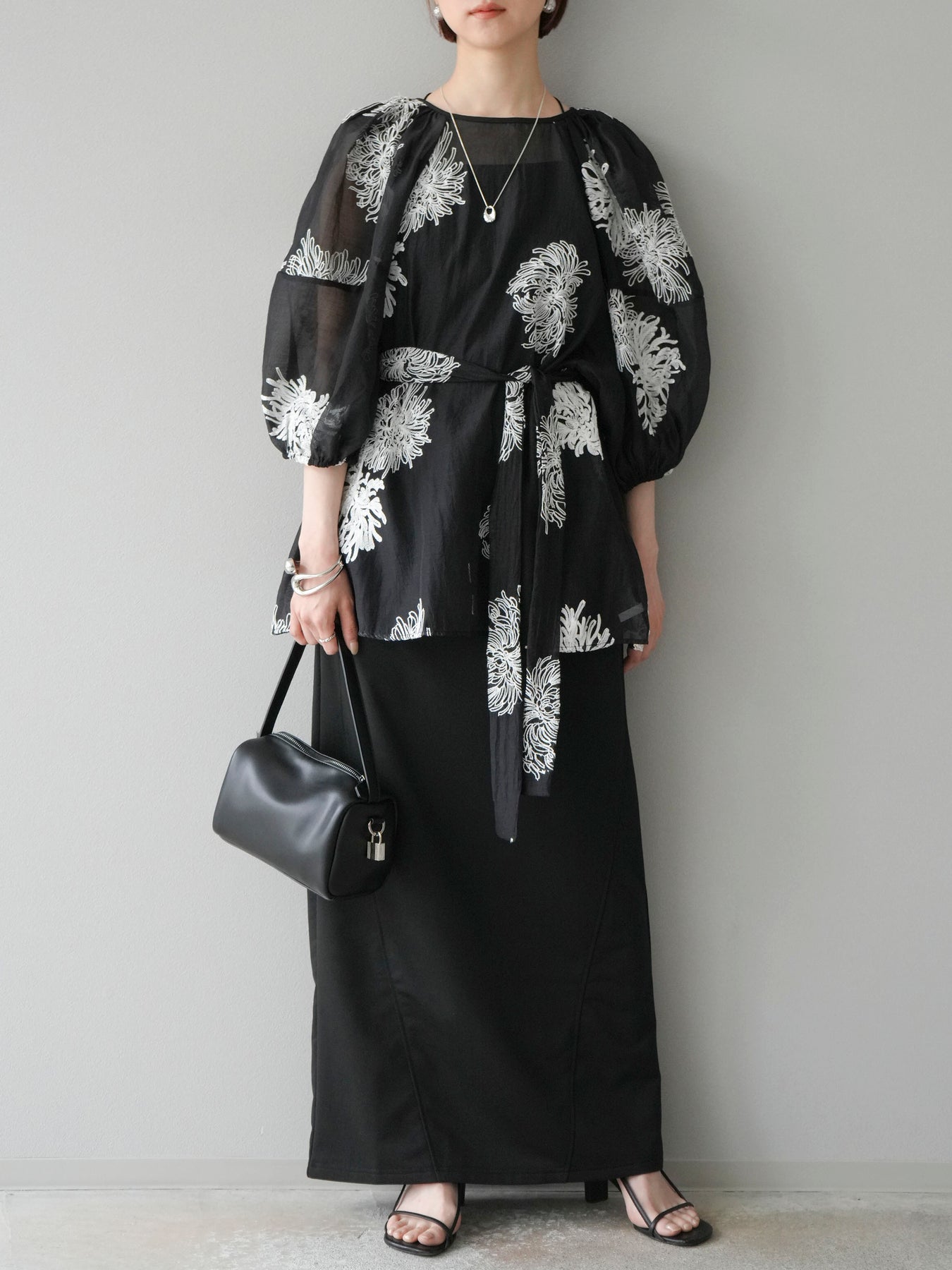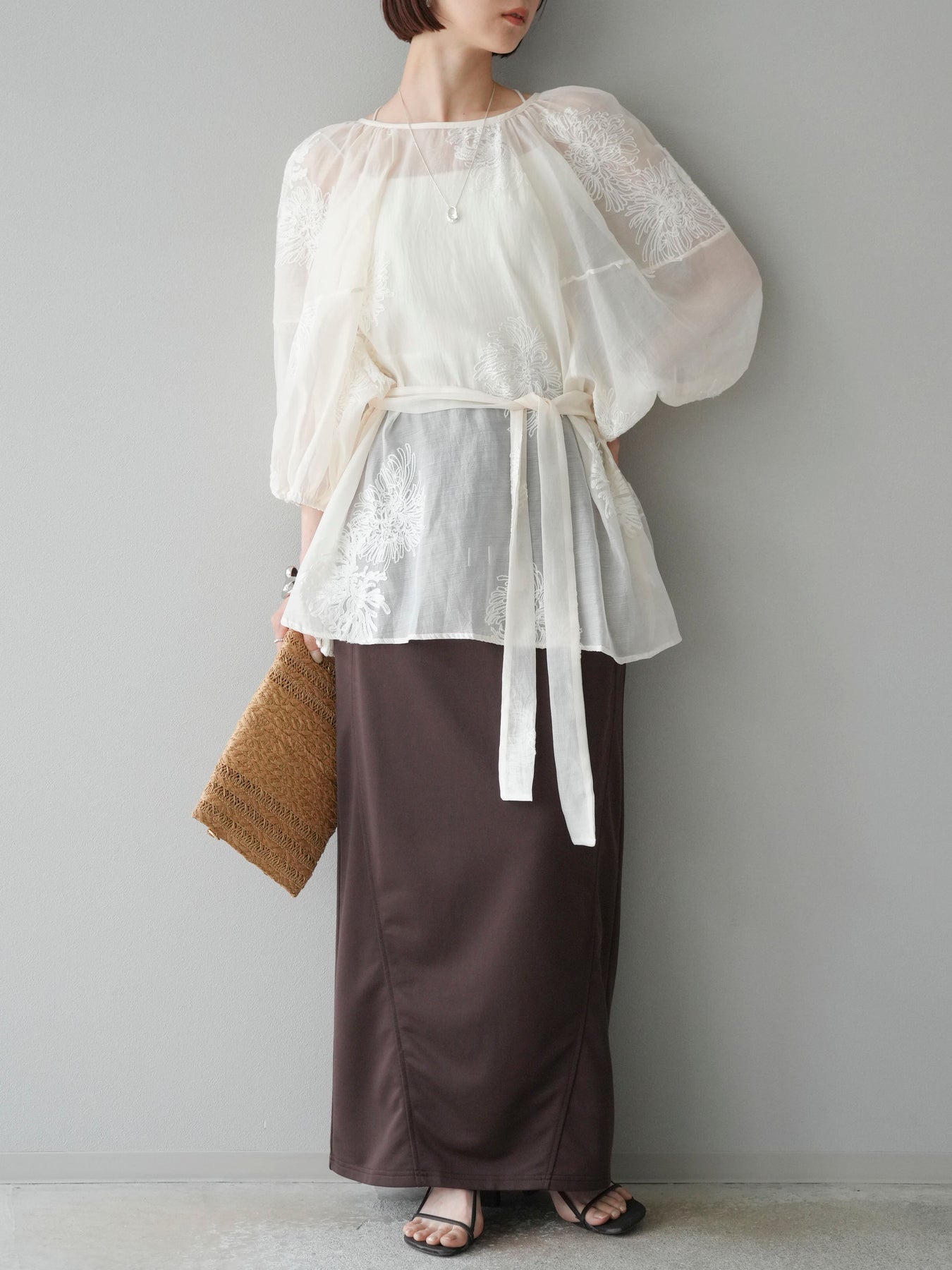 [SET]刺繍シアーバルーンスリーブブラウス+スウェットロングスカート(2set)