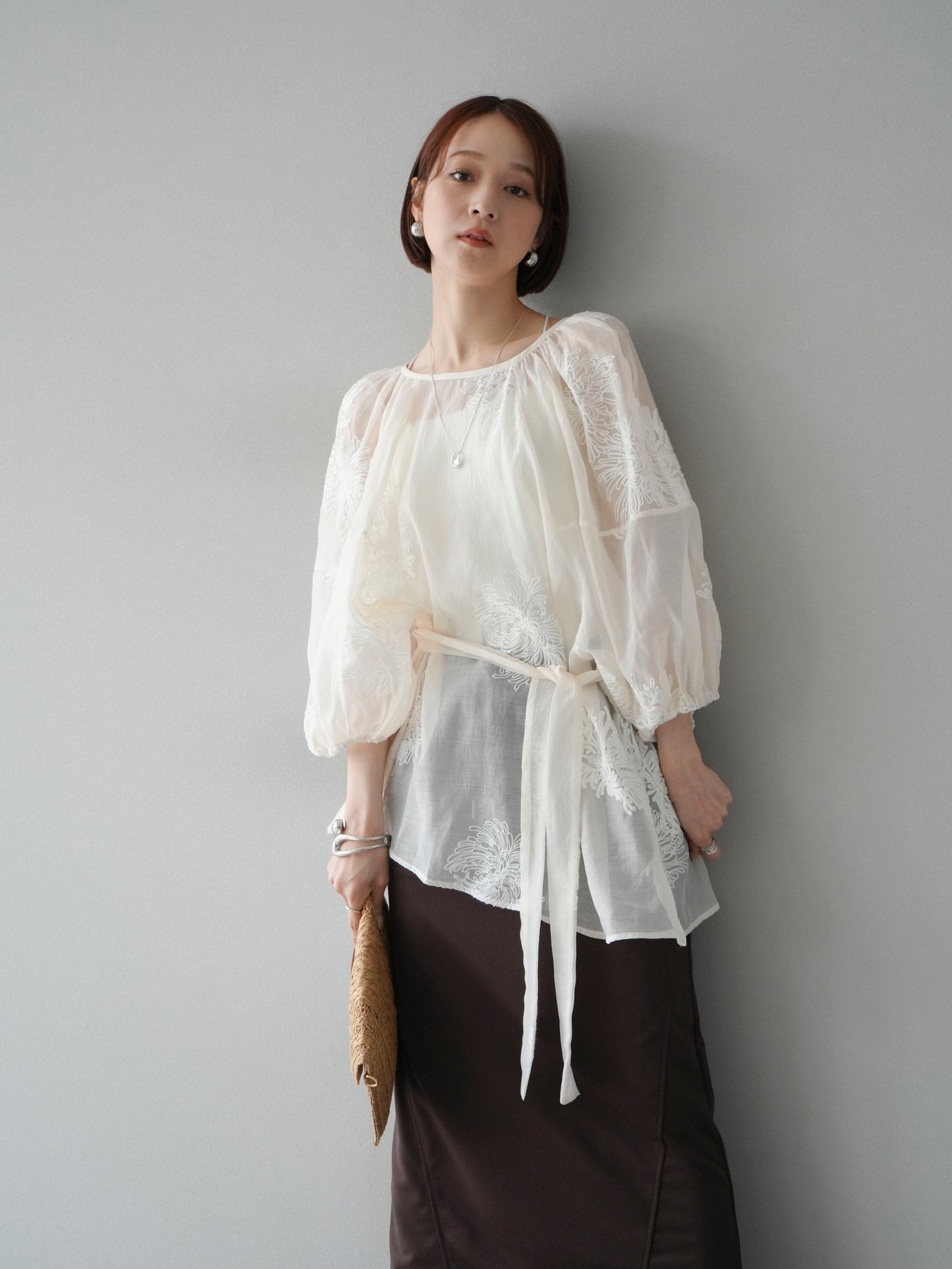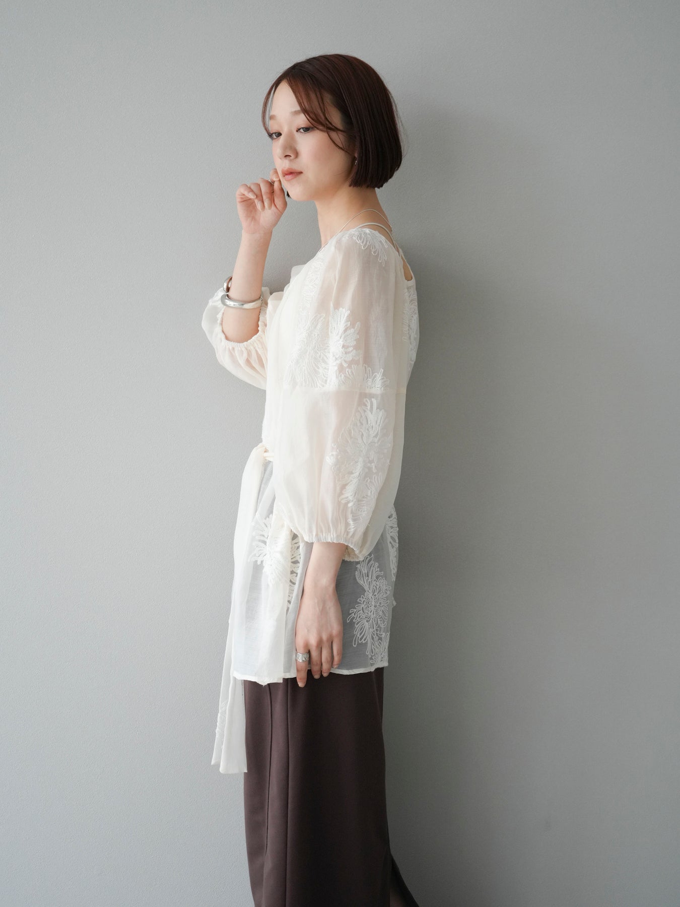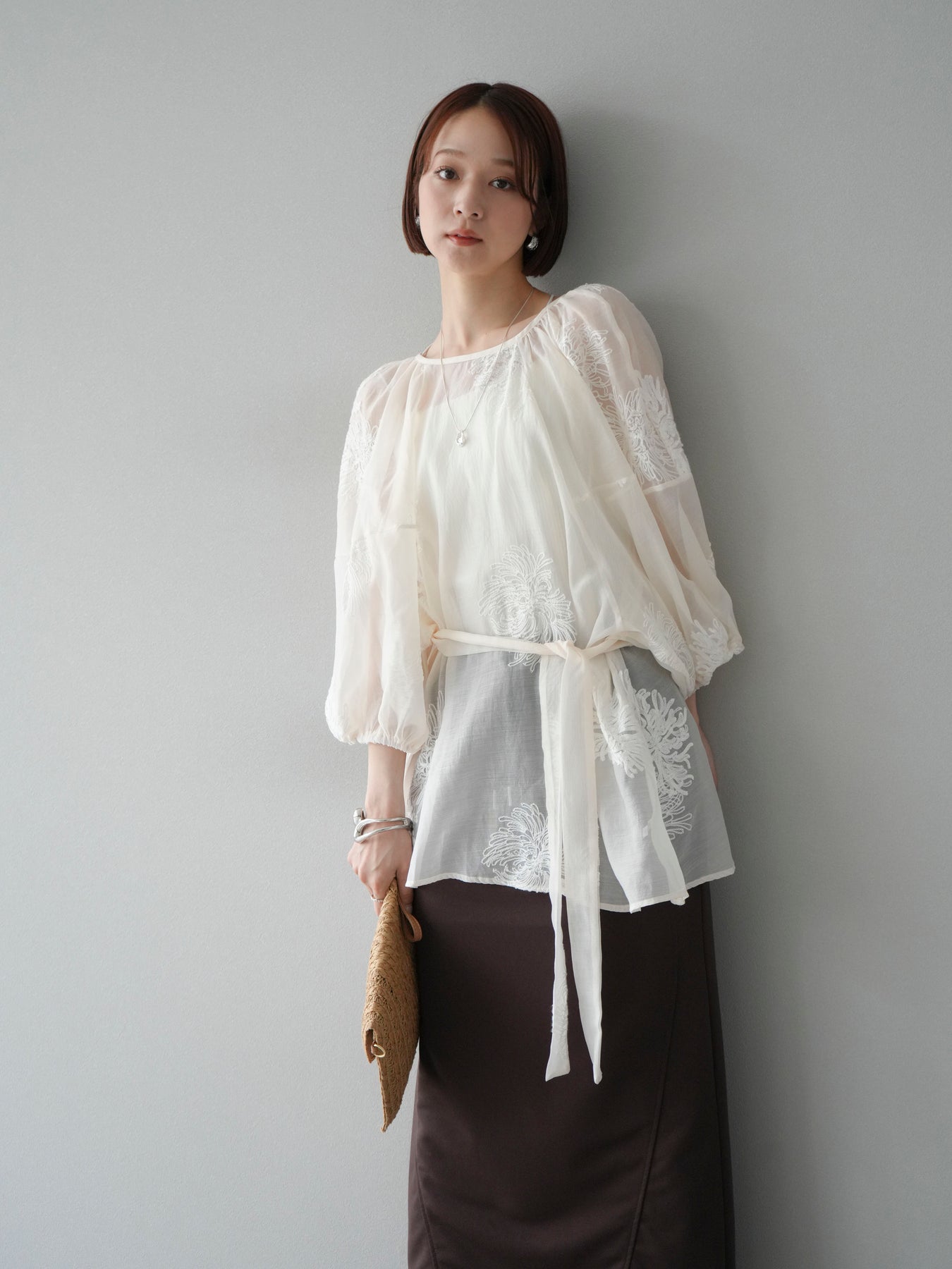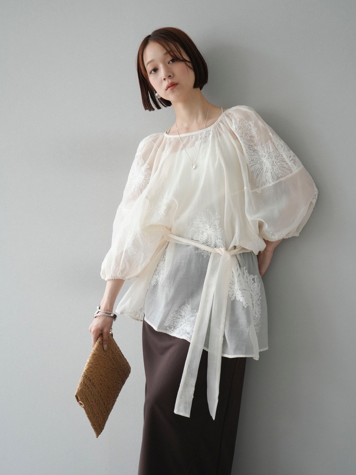 ◆ [予約]刺繍シアーバルーンスリーブブラウス