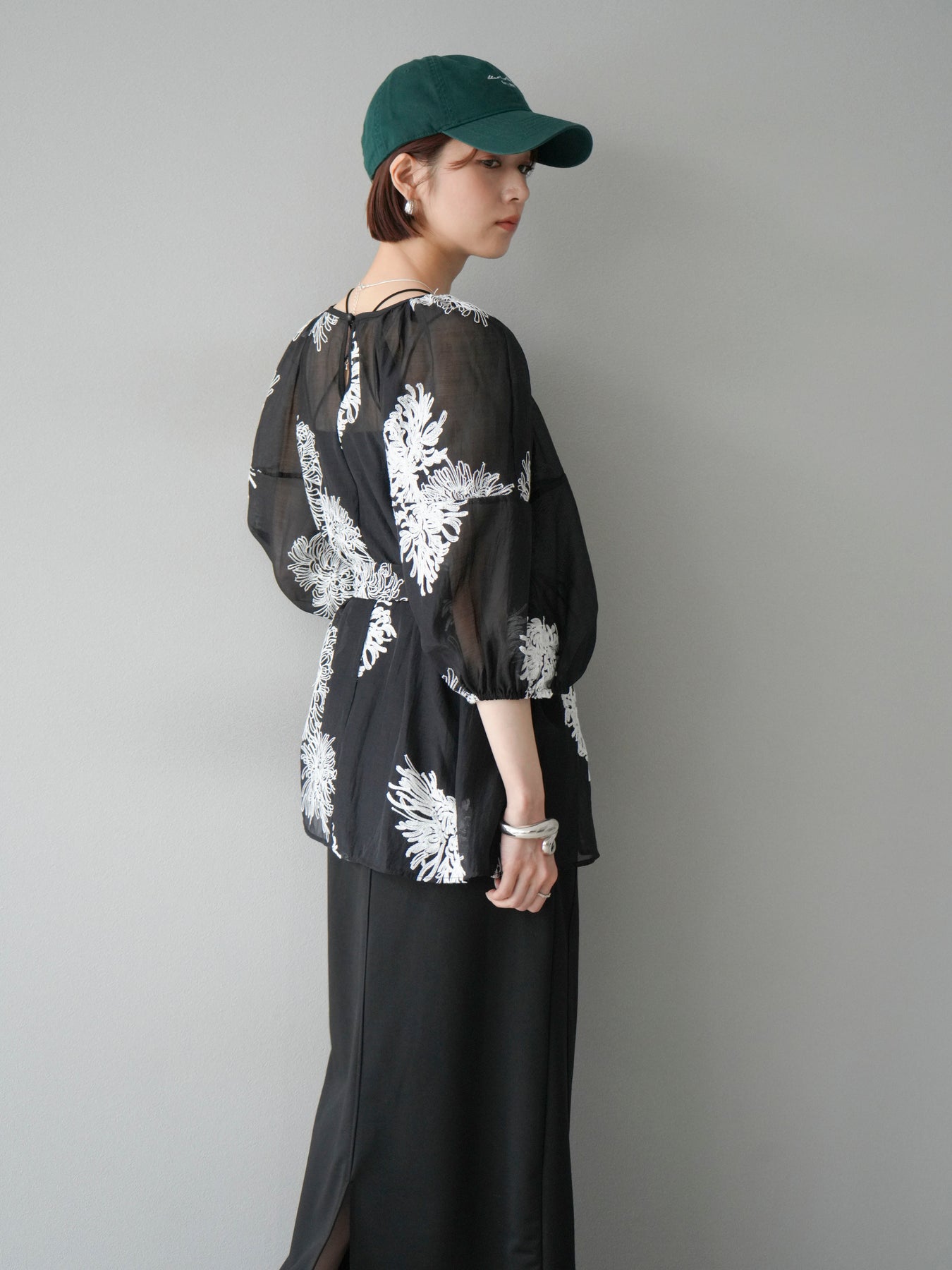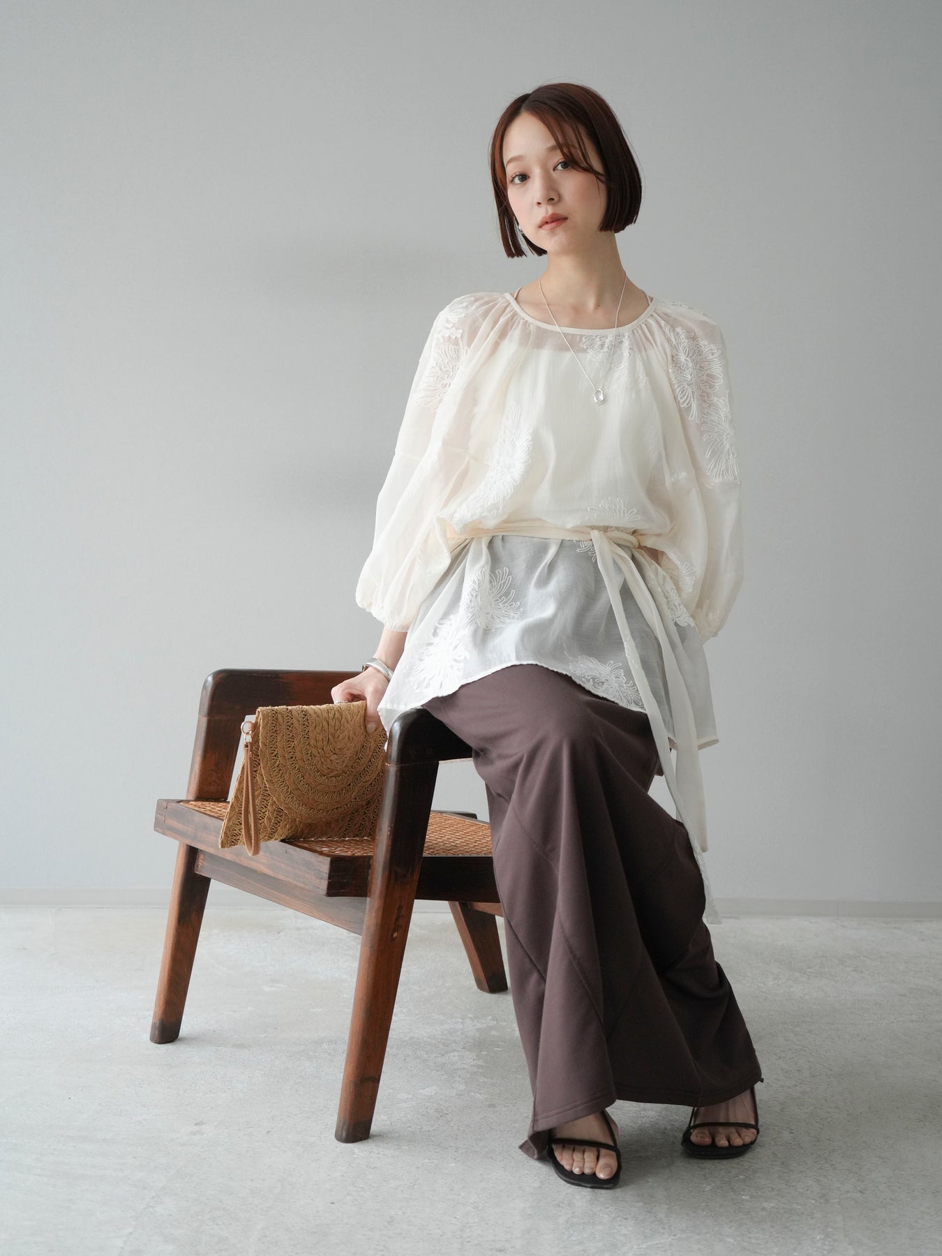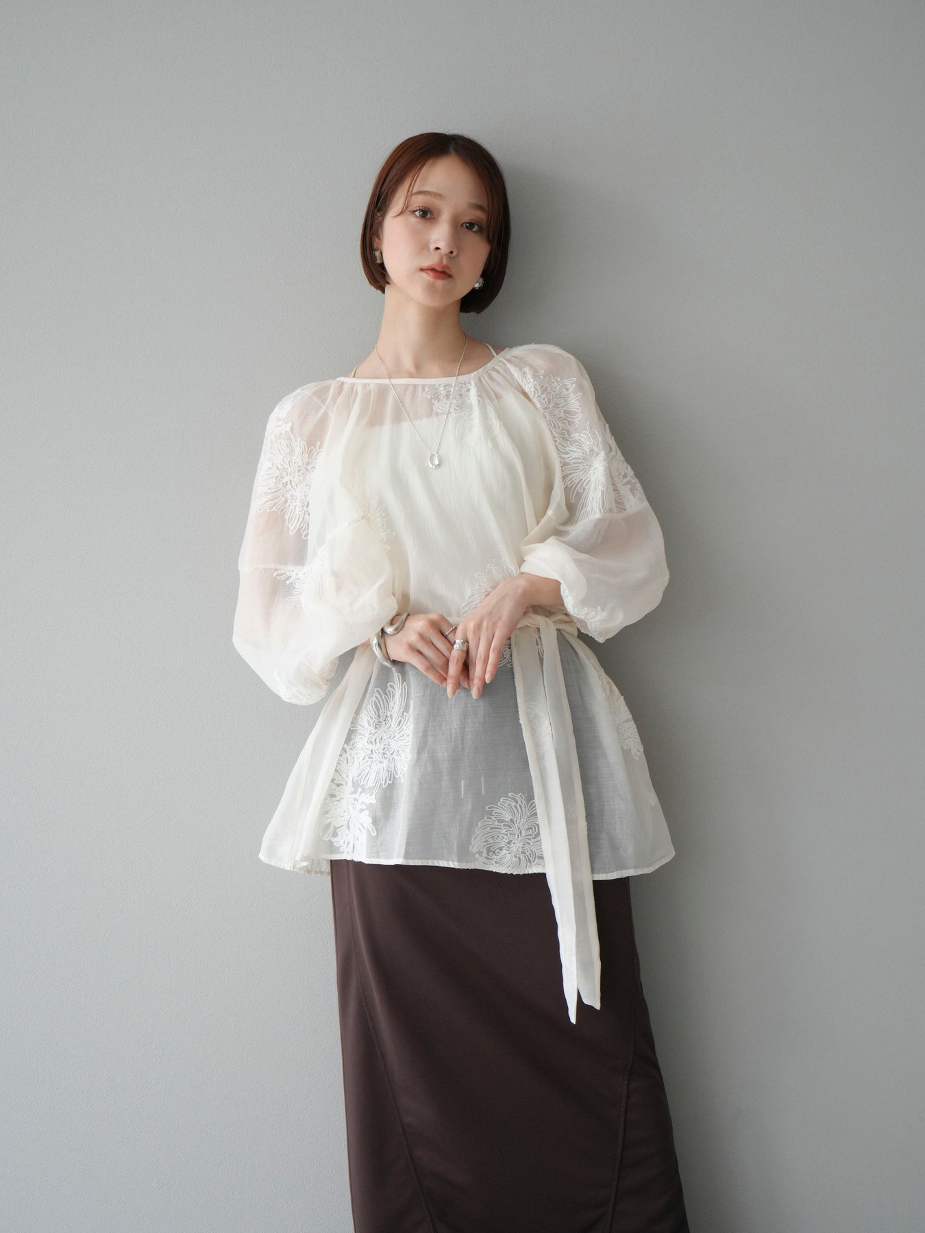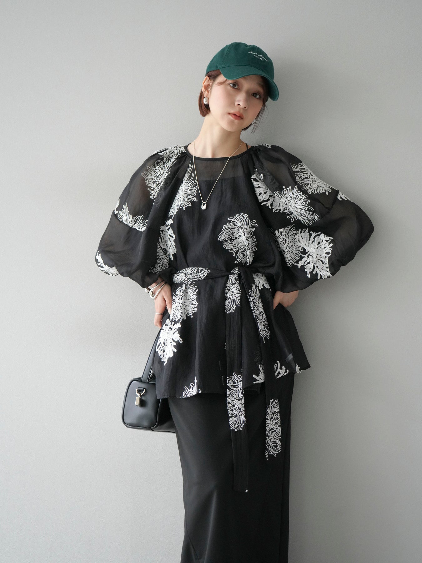 ◆ [予約]刺繍シアーバルーンスリーブブラウス