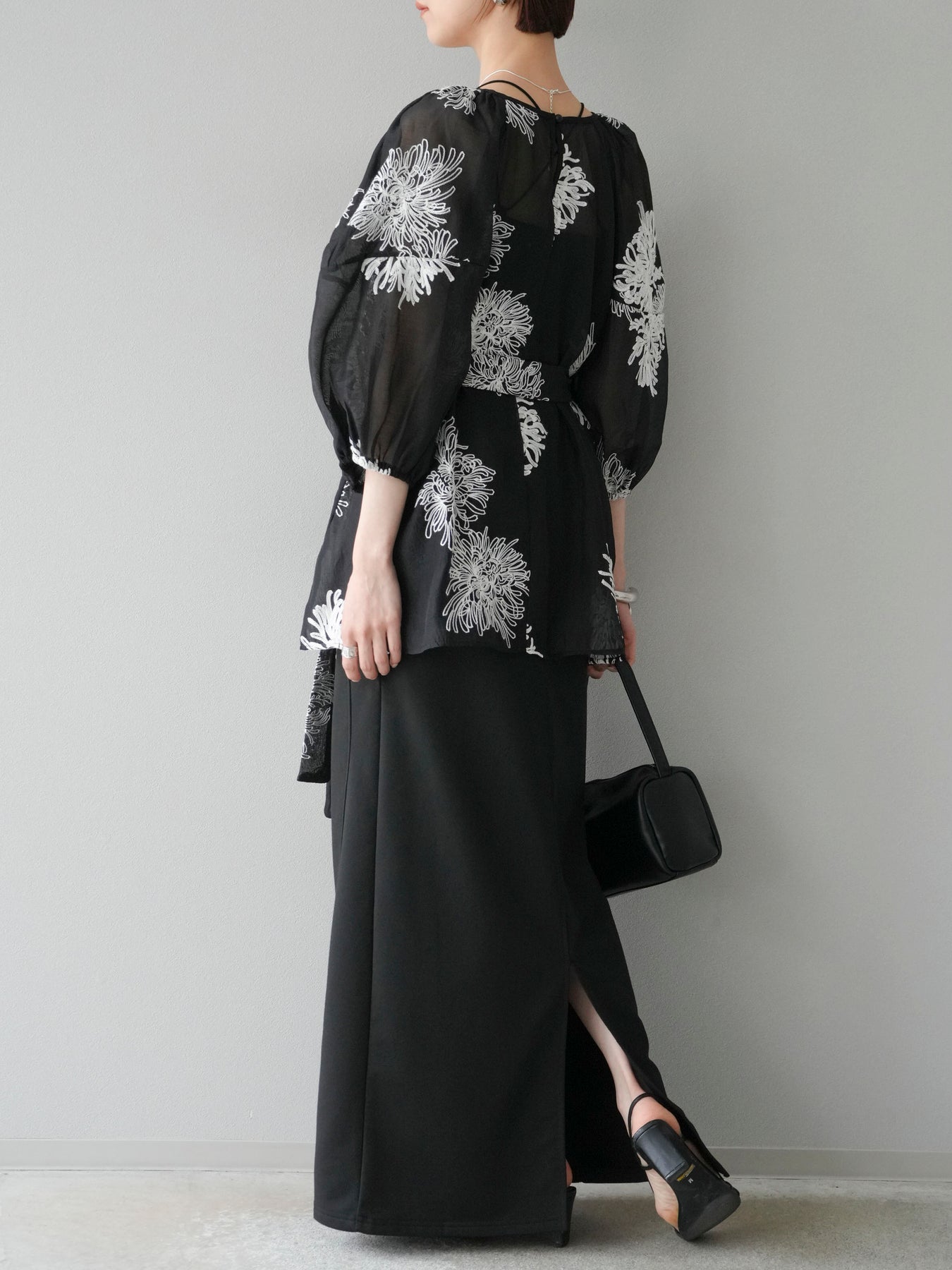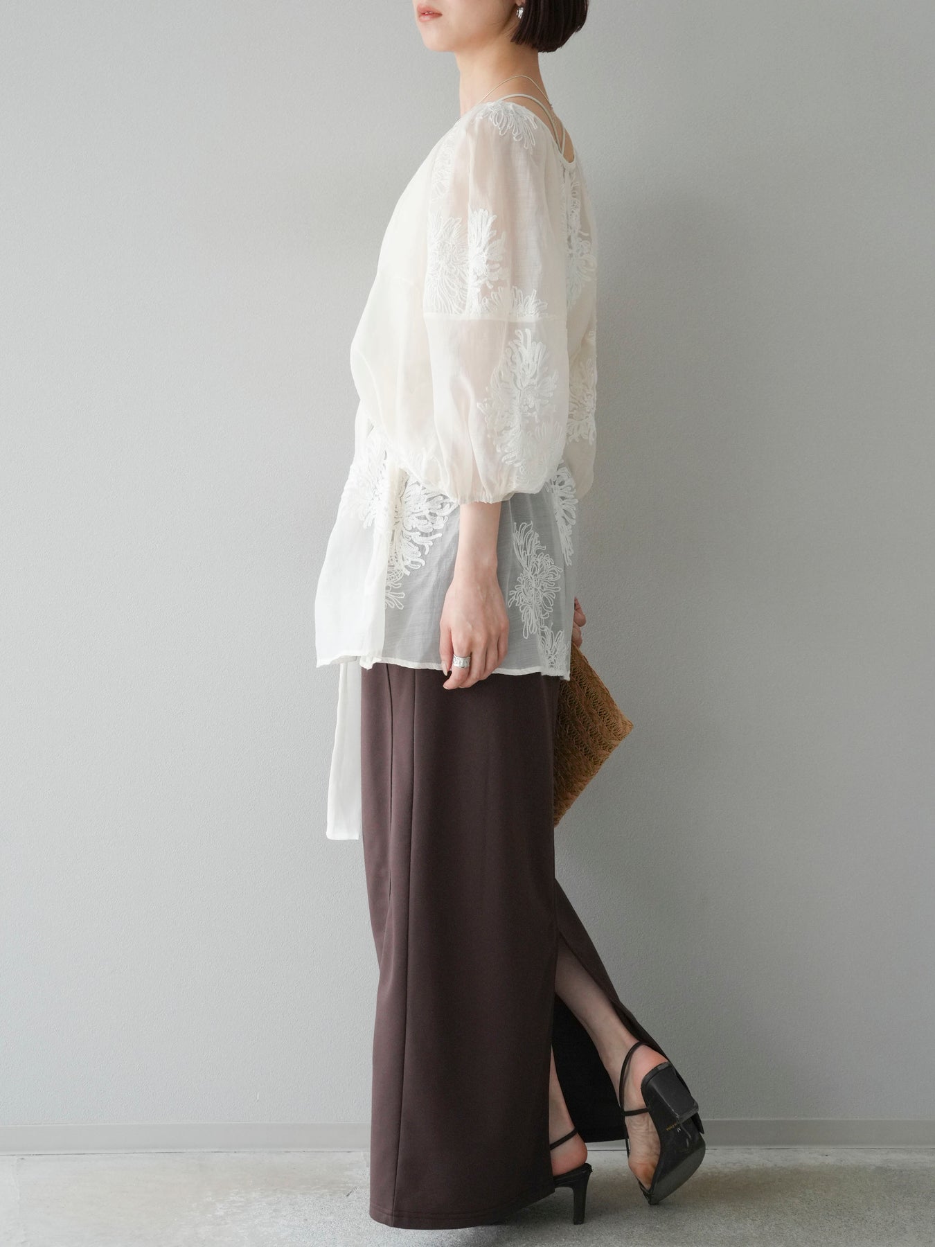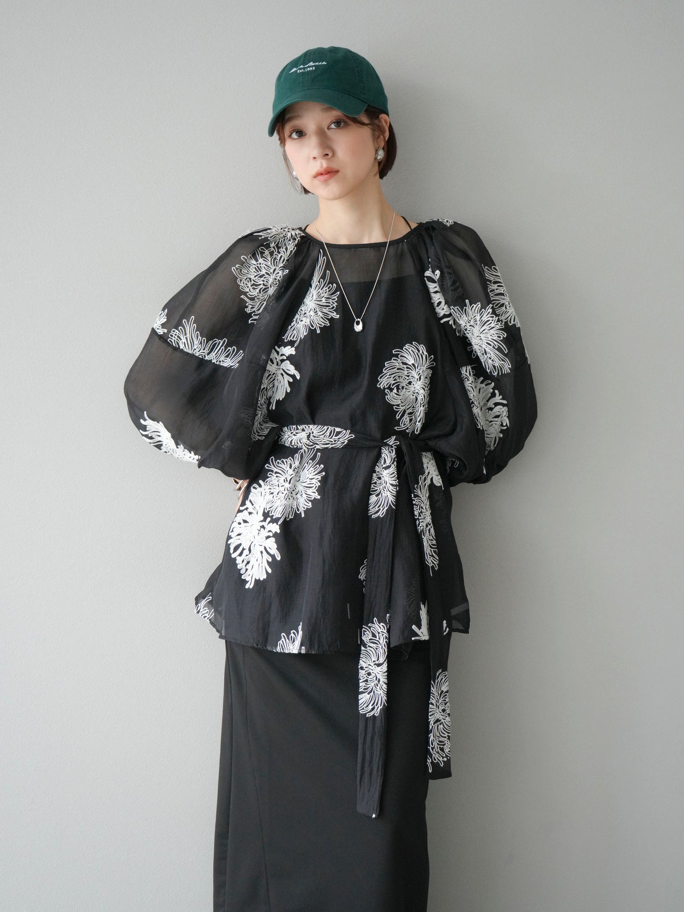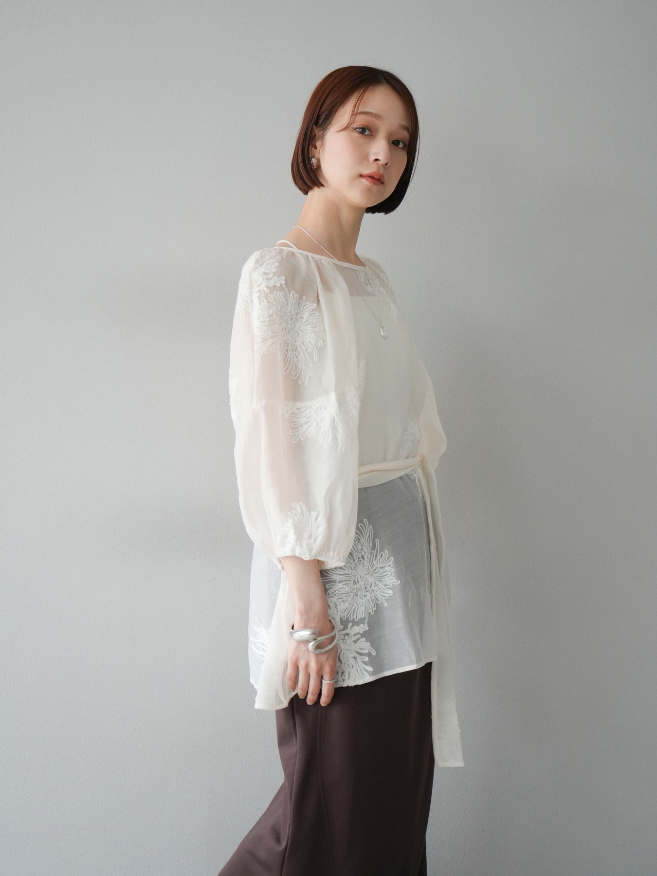 ◆ [予約]刺繍シアーバルーンスリーブブラウス