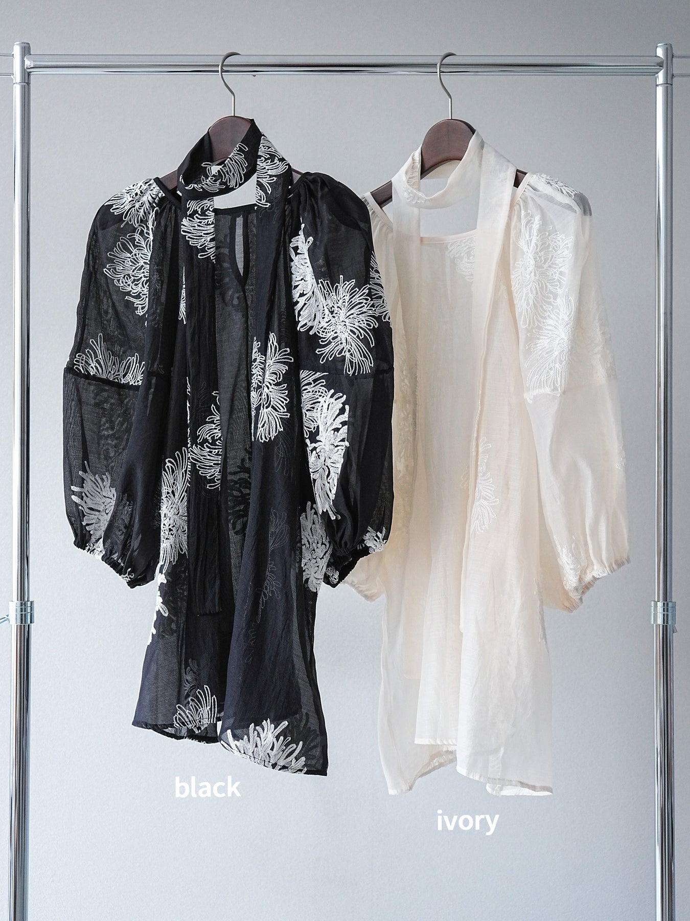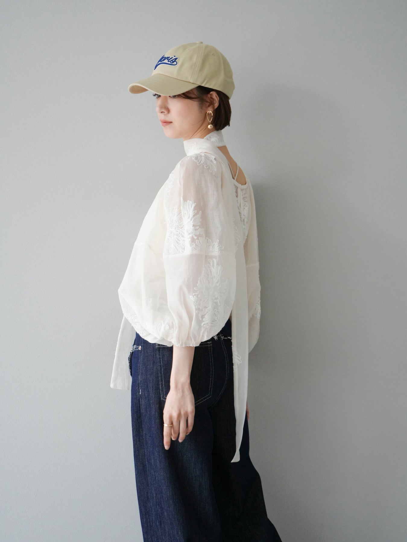 [予約]刺繍シアーバルーンスリーブブラウス