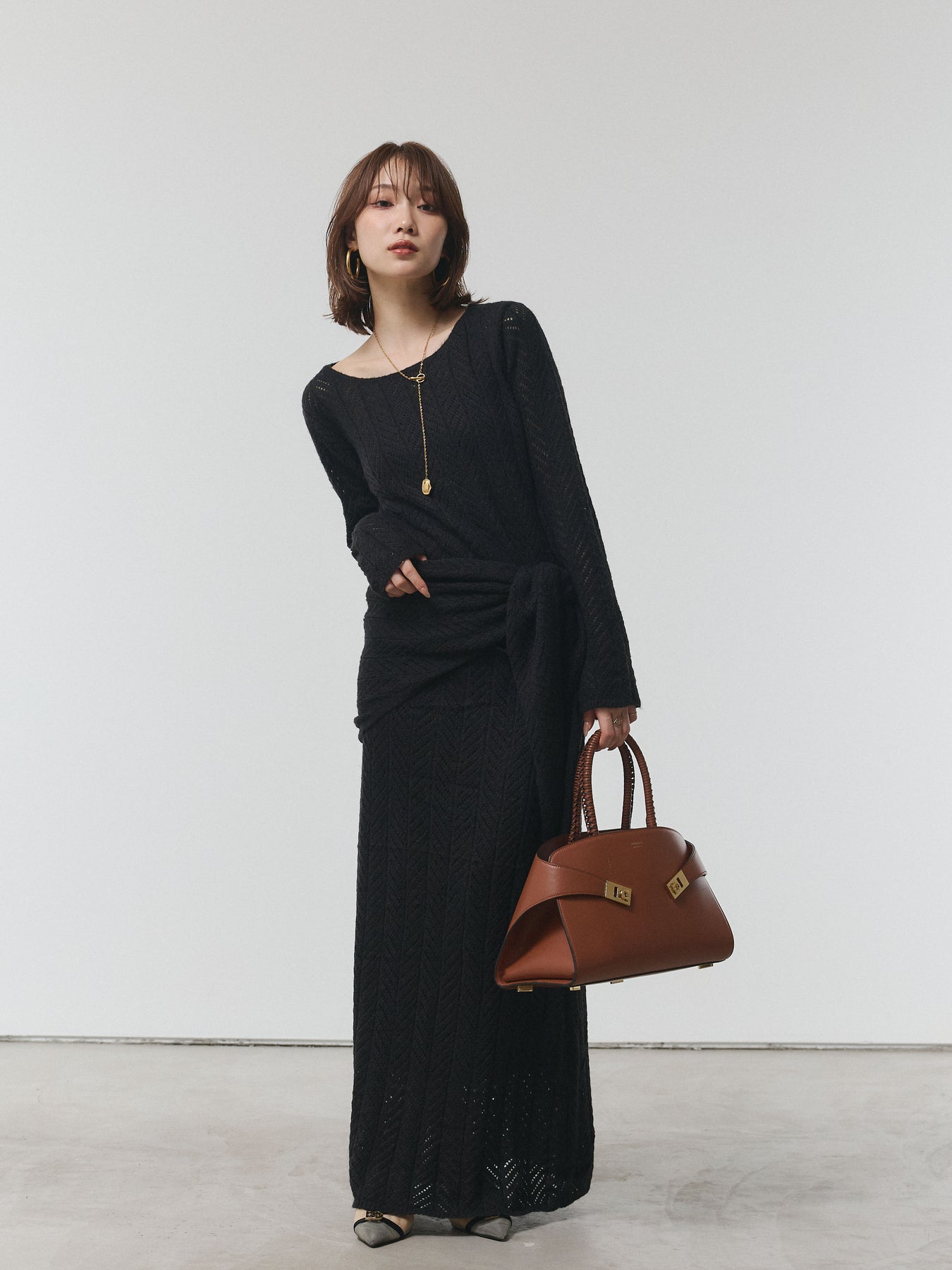 【Allure】[SET]透かし編みニットトップス&スカート3SET+透かし編みニットトップス&スカート3SET(2set)