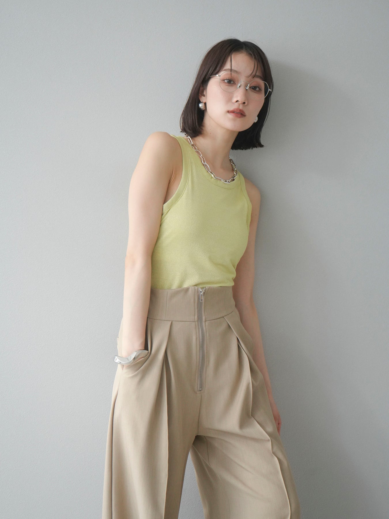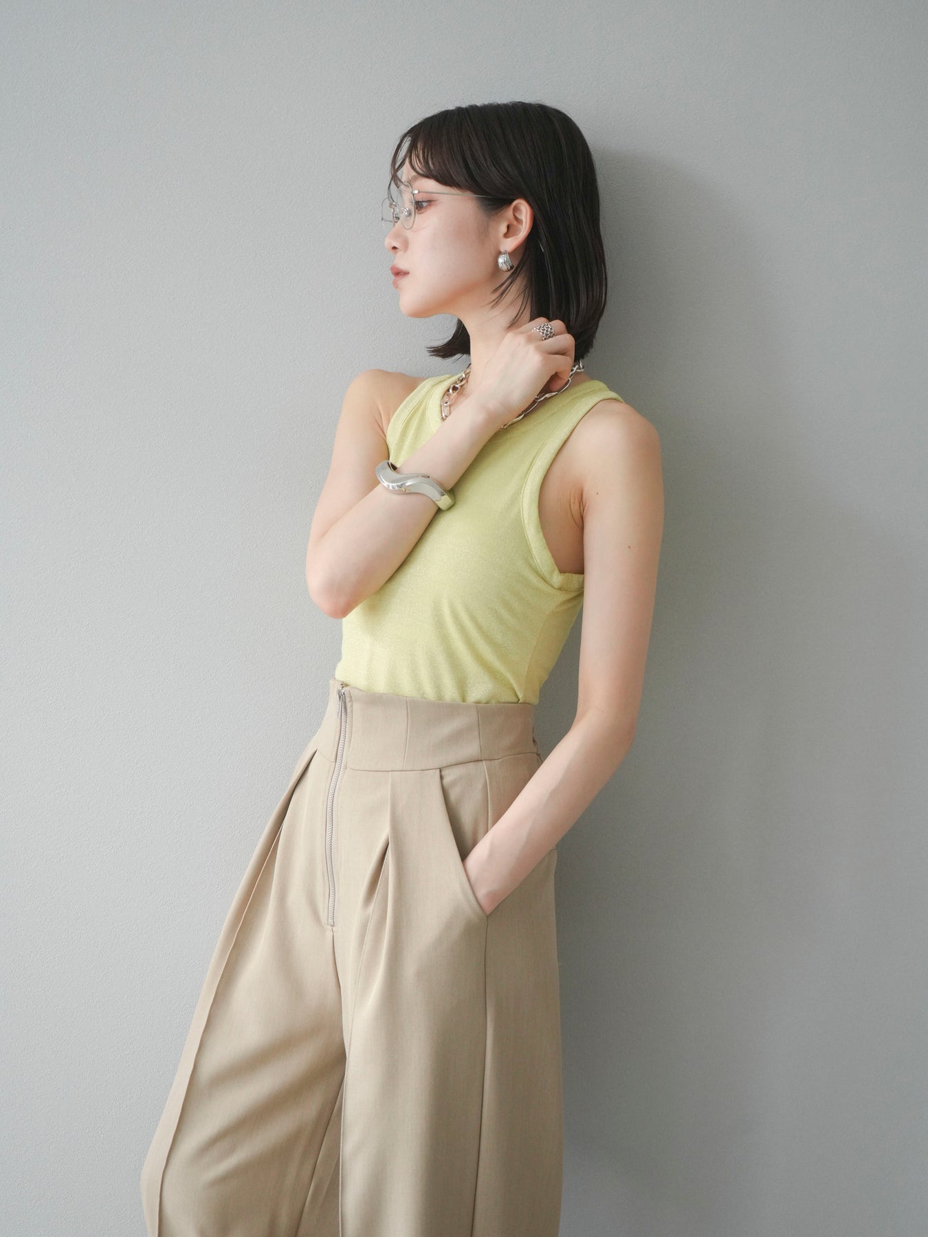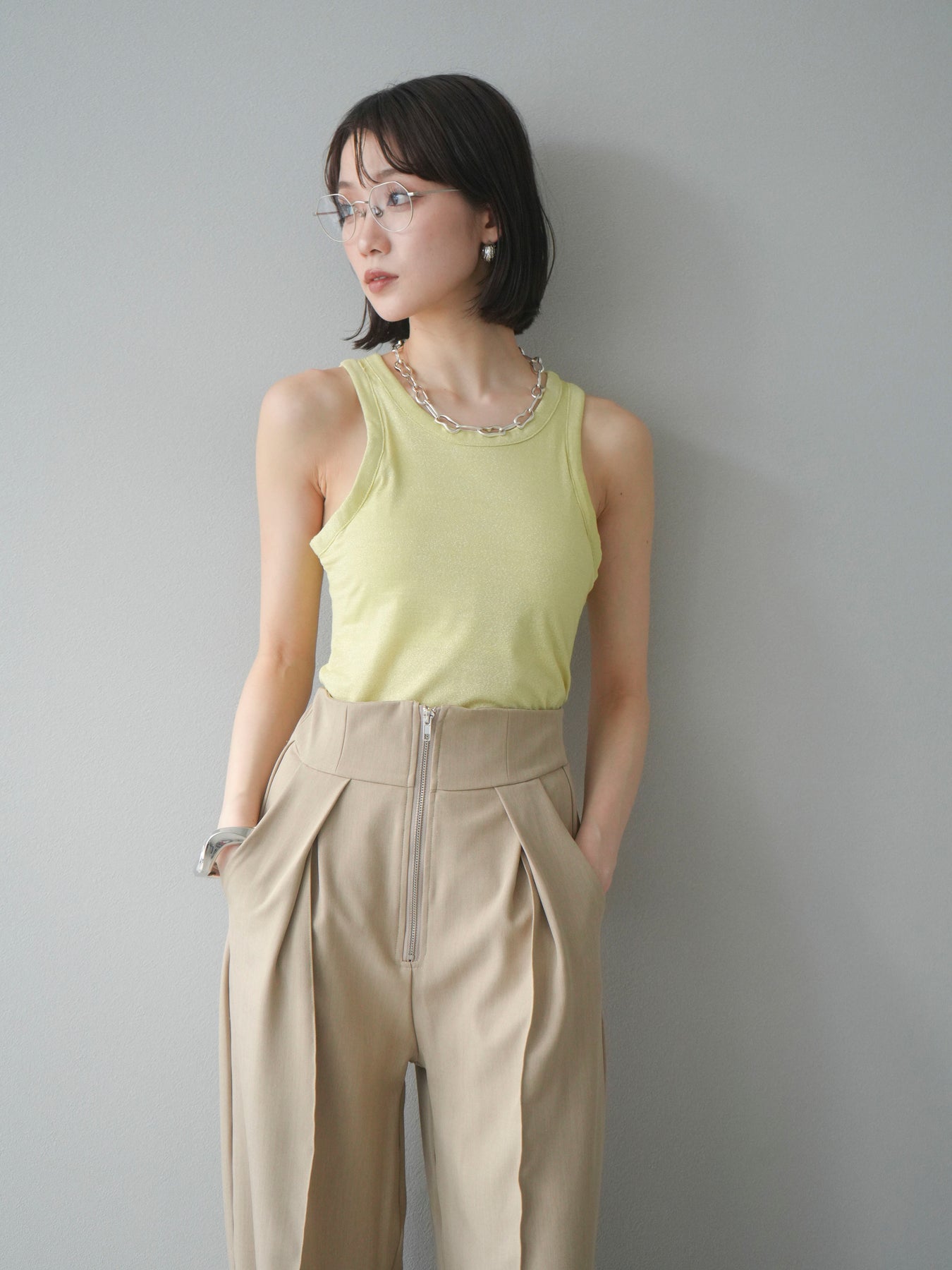 [予約]カップ付きラメアメスリブラトップ/イエロー