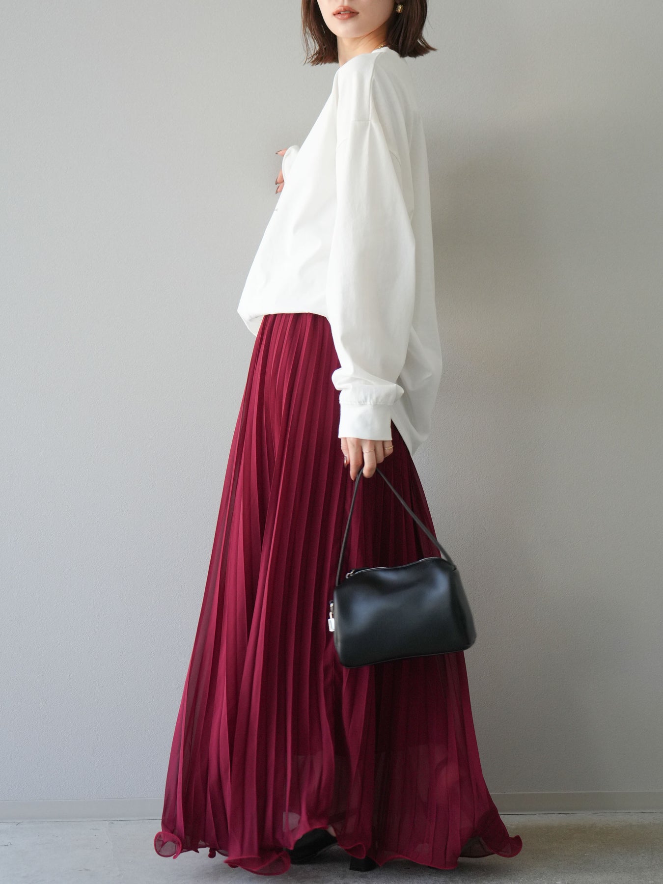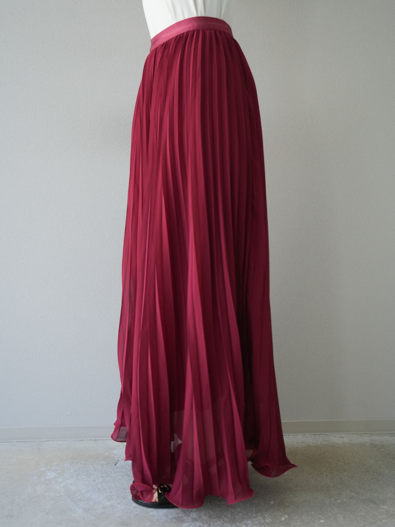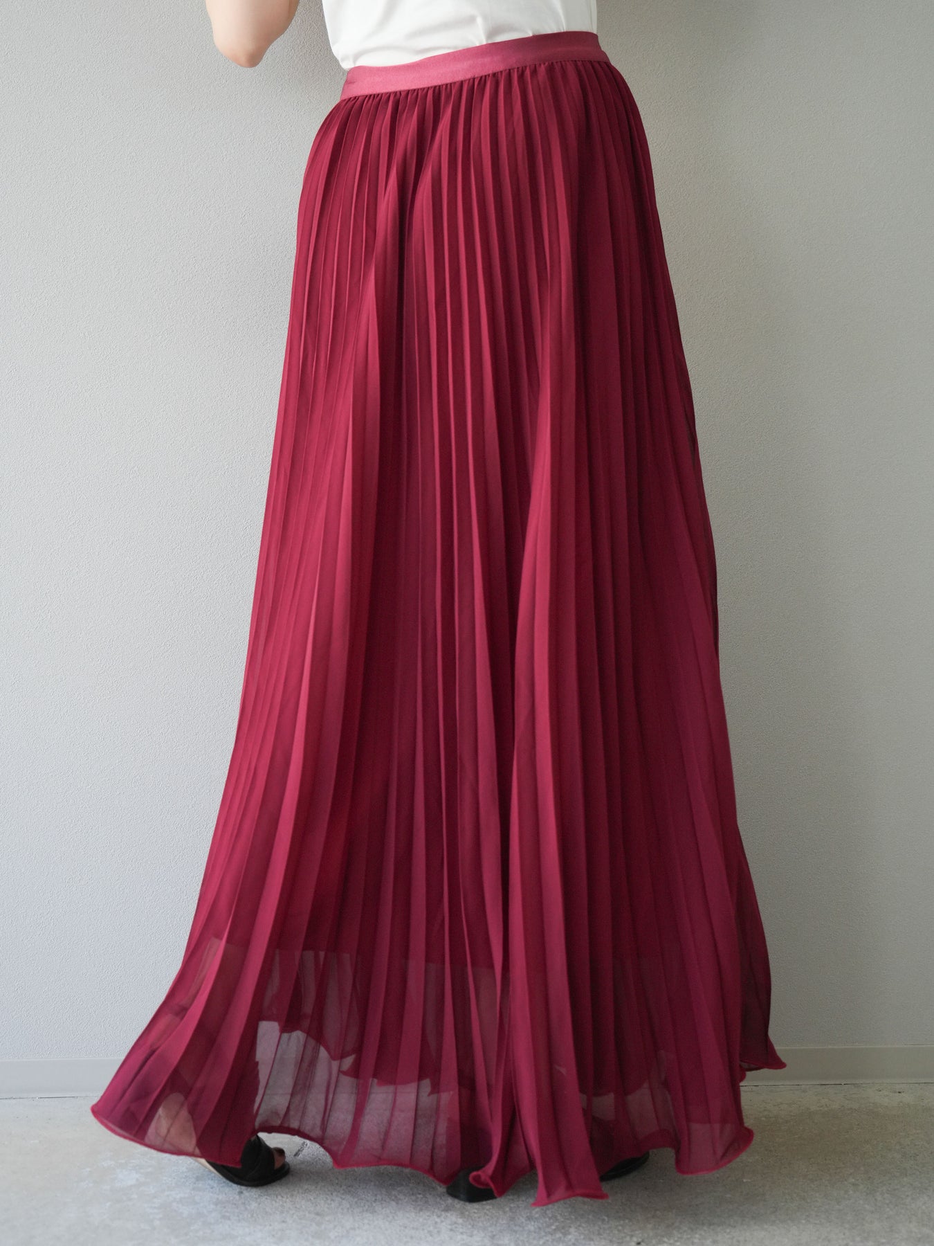 [予約]シフォンプリーツパイピングスカート/バーガンディ