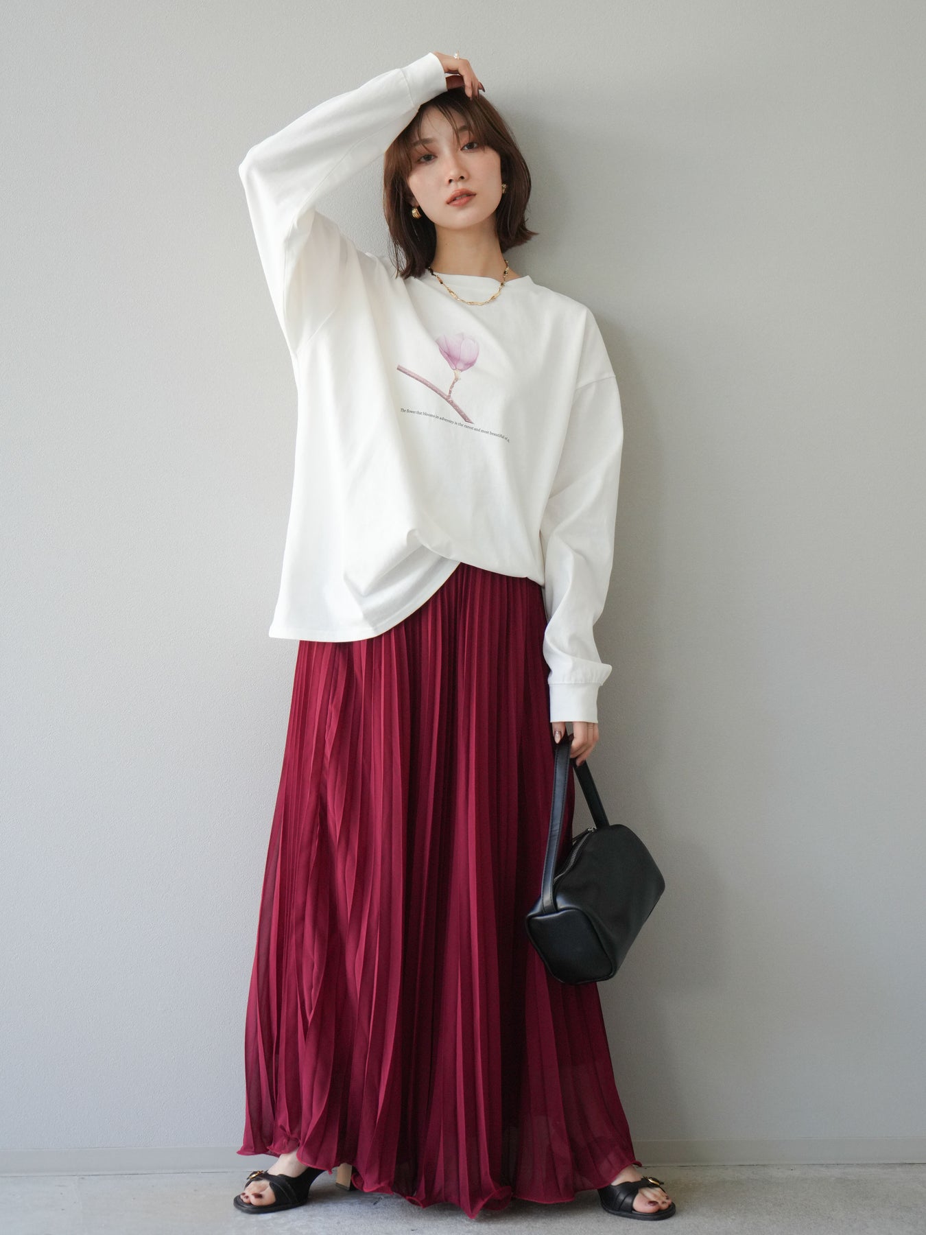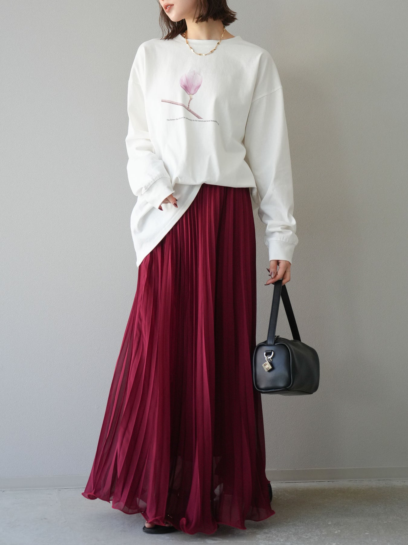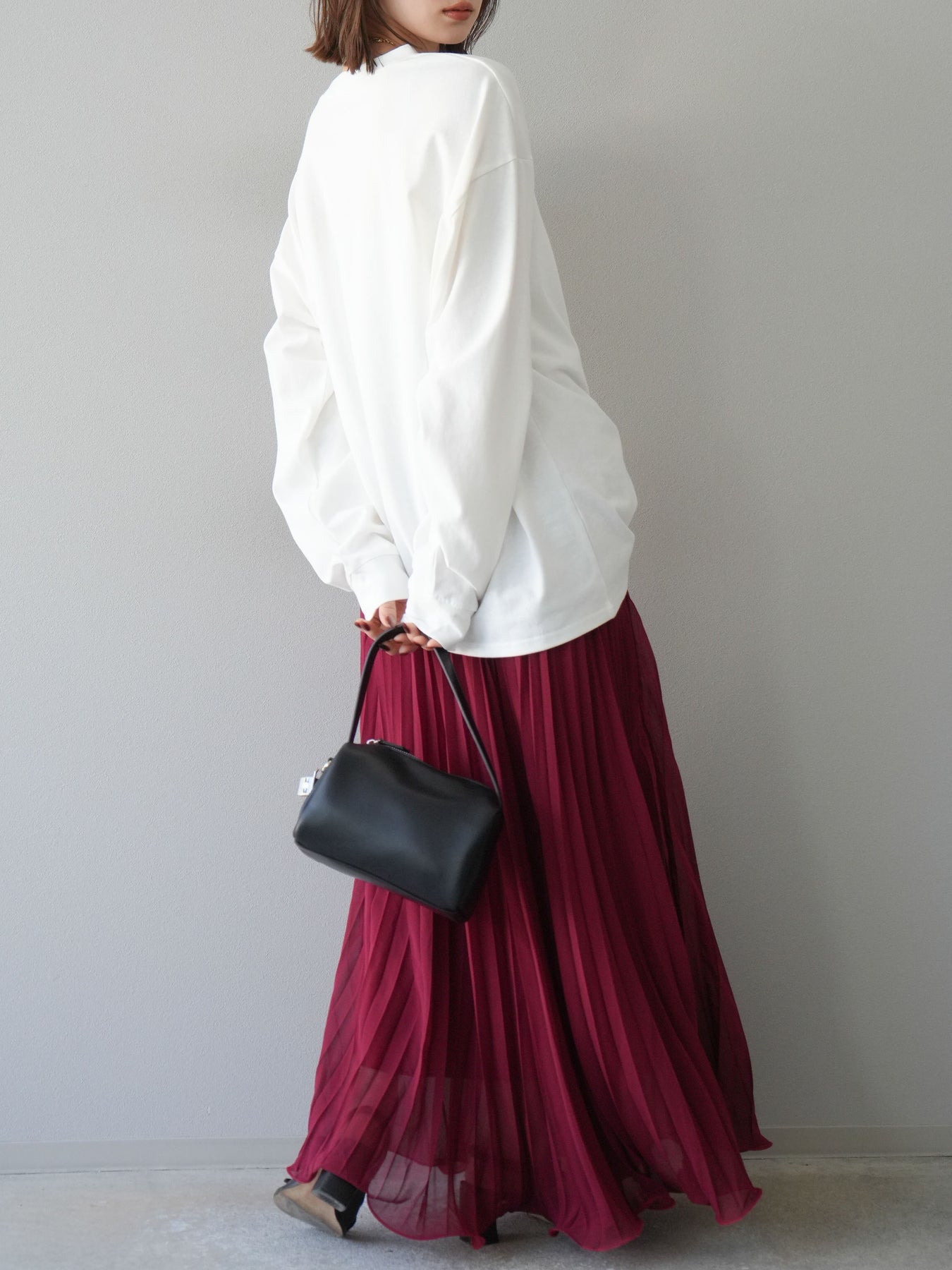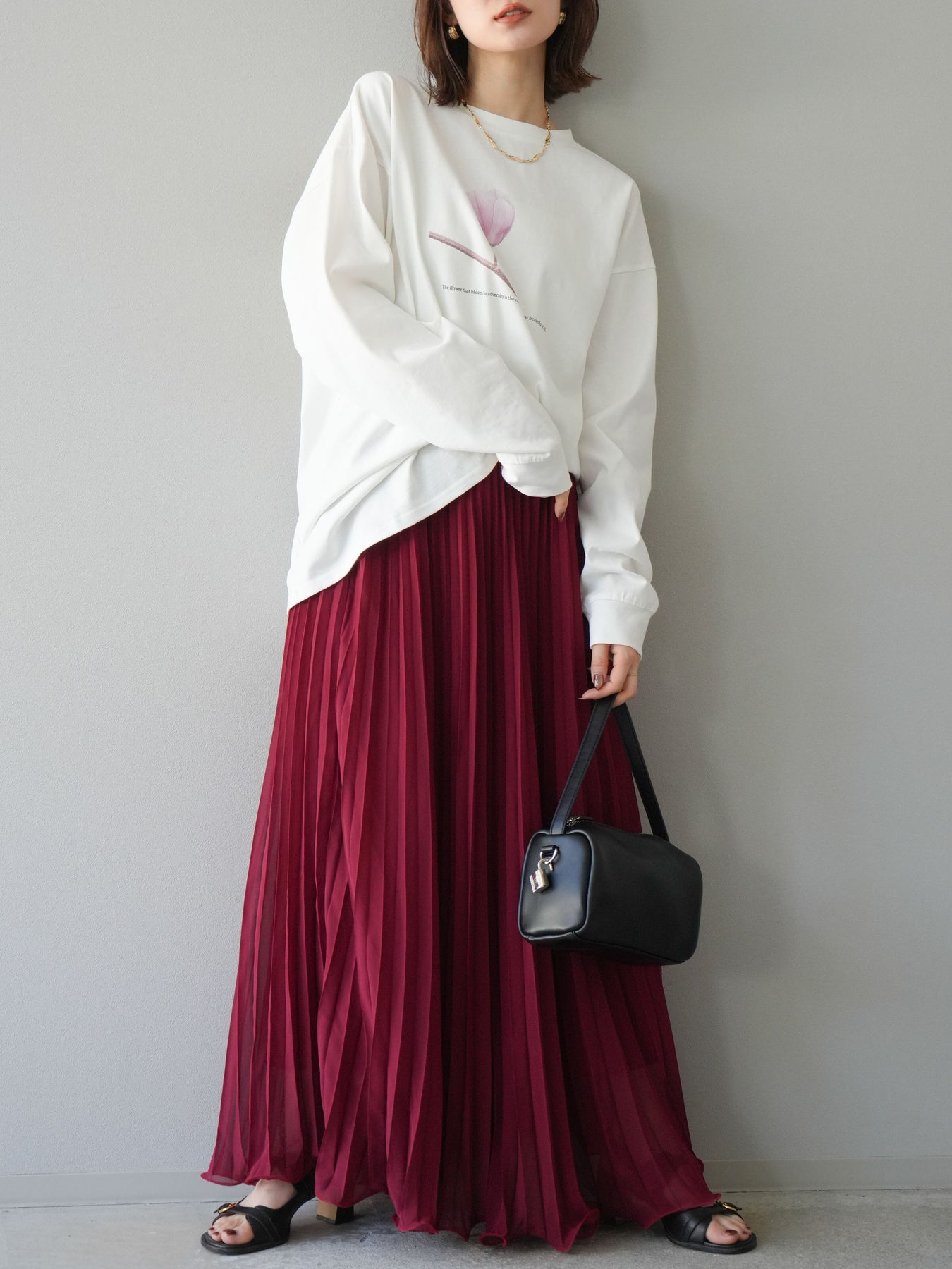 [予約]シフォンプリーツパイピングスカート/バーガンディ