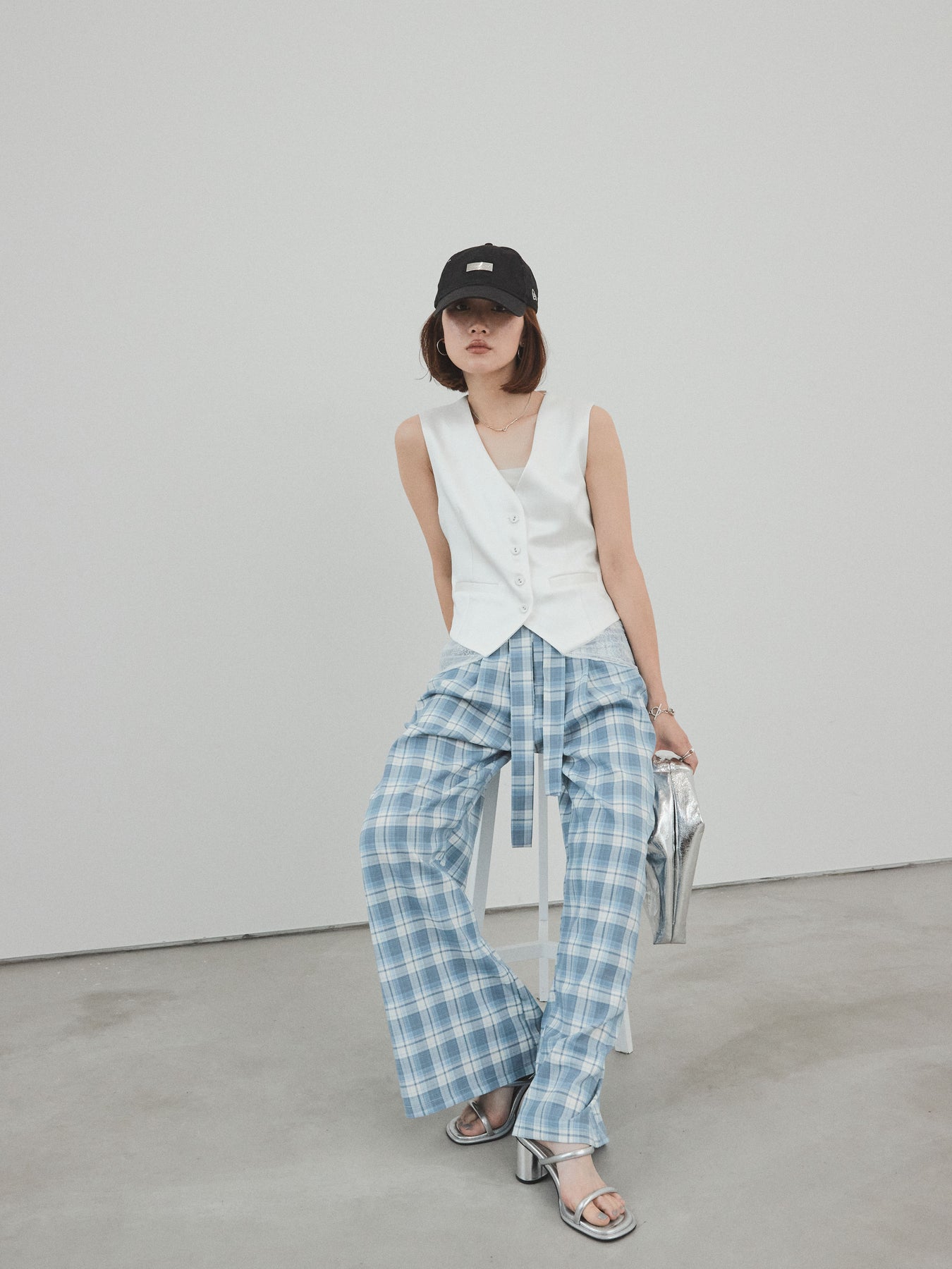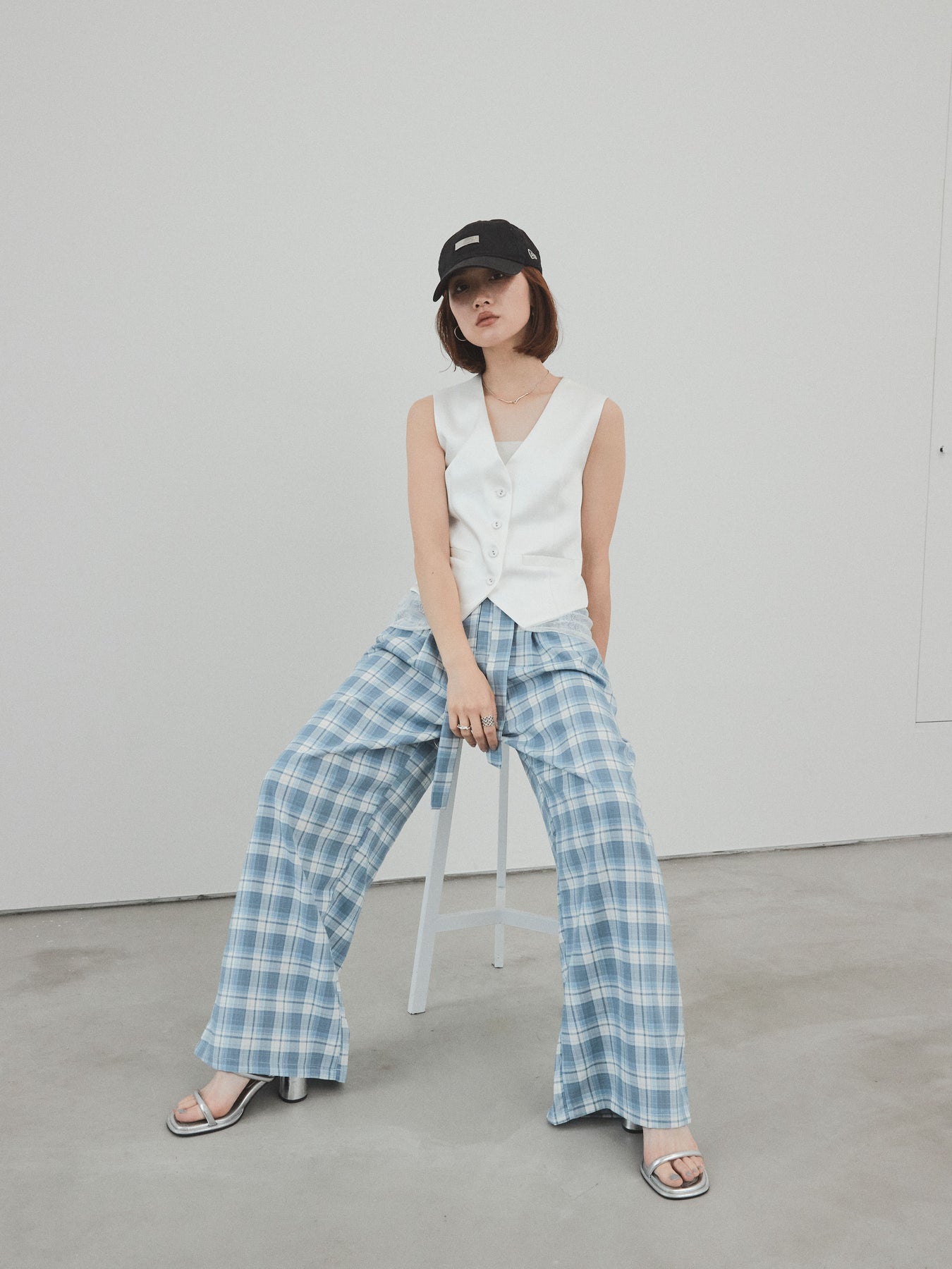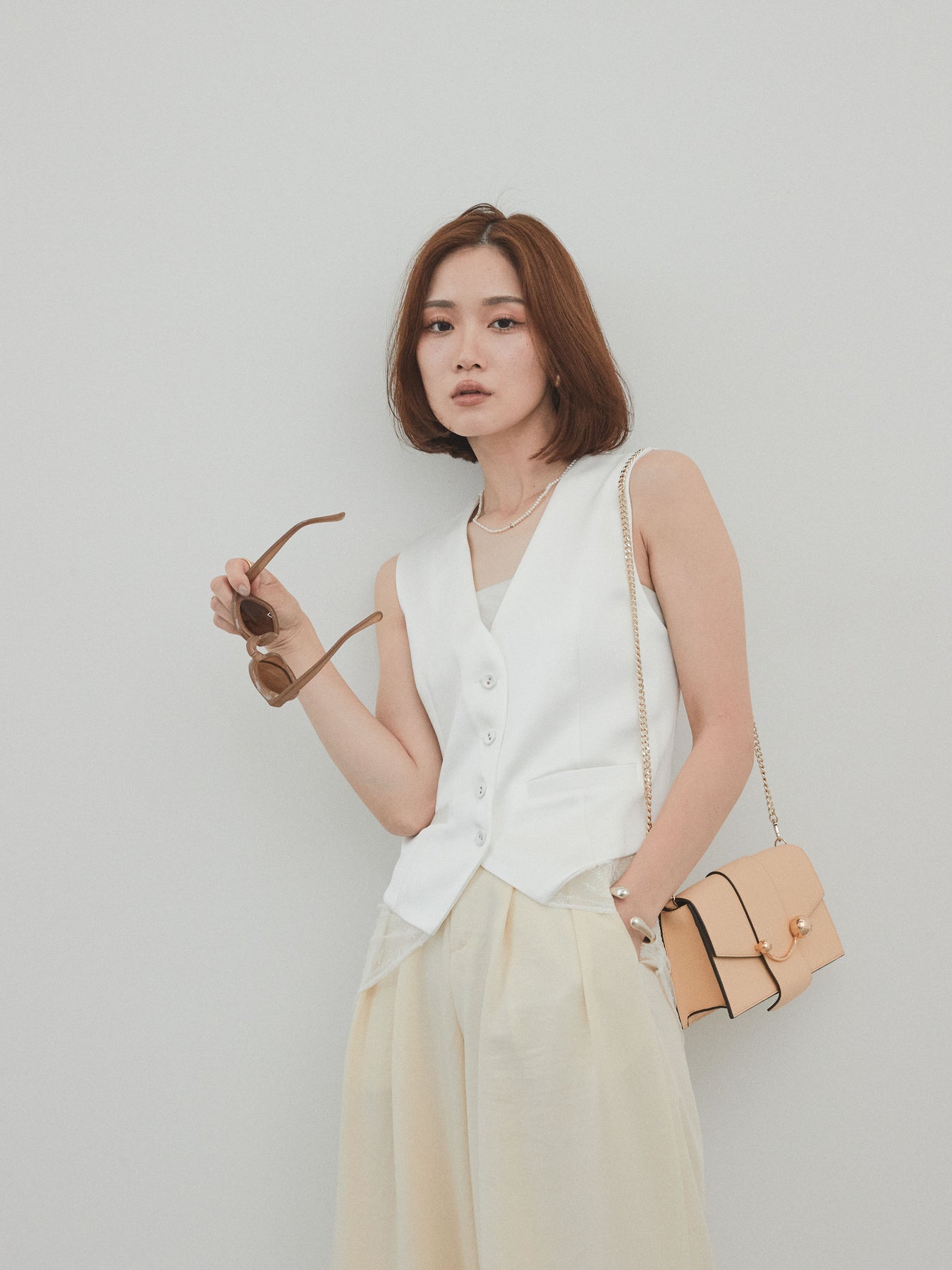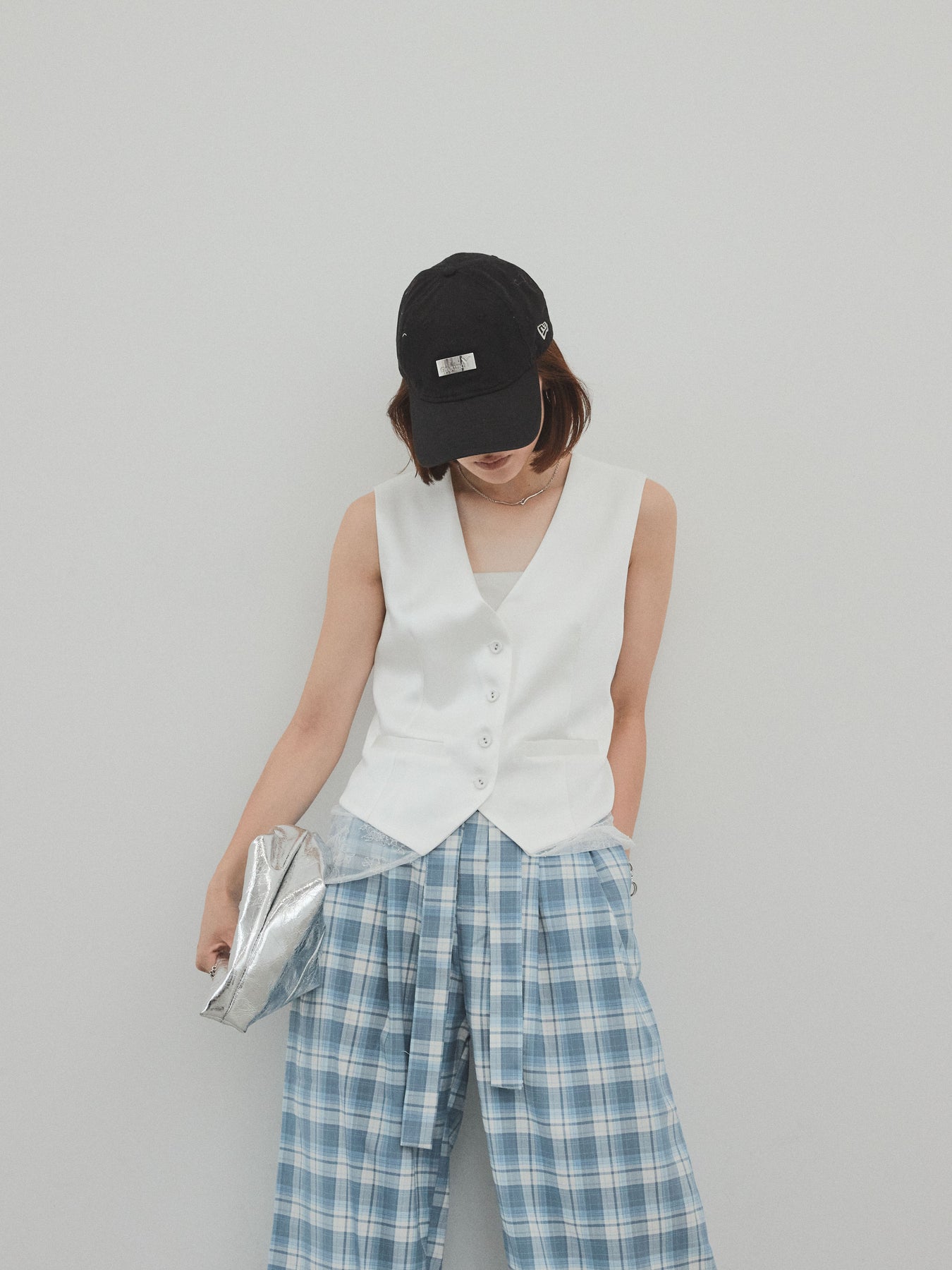 上品な光沢感が魅力のサテン素材に、繊細なレースを切り替えたデザインベスト。モード感漂うVネックシルエットと、裾からのぞくレースがスタイリングに女性らしさをプラスしてくれます。前を留めて1枚着風に着こなすのはもちろん、Tシャツやシアートップスとのレイヤードスタイルもおすすめ。きれいめにもカジュアルにも合わせやすく、コーディネートの主役として活躍してくれる一着です。 ※ボトムス、キャミソール(インナー)以外の商品は一律でインナーは付属していません。