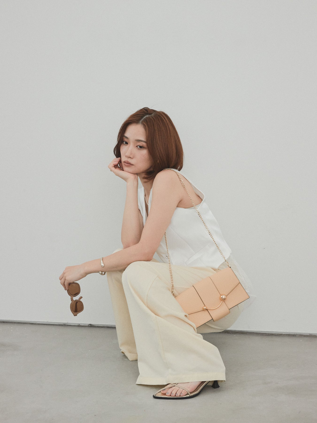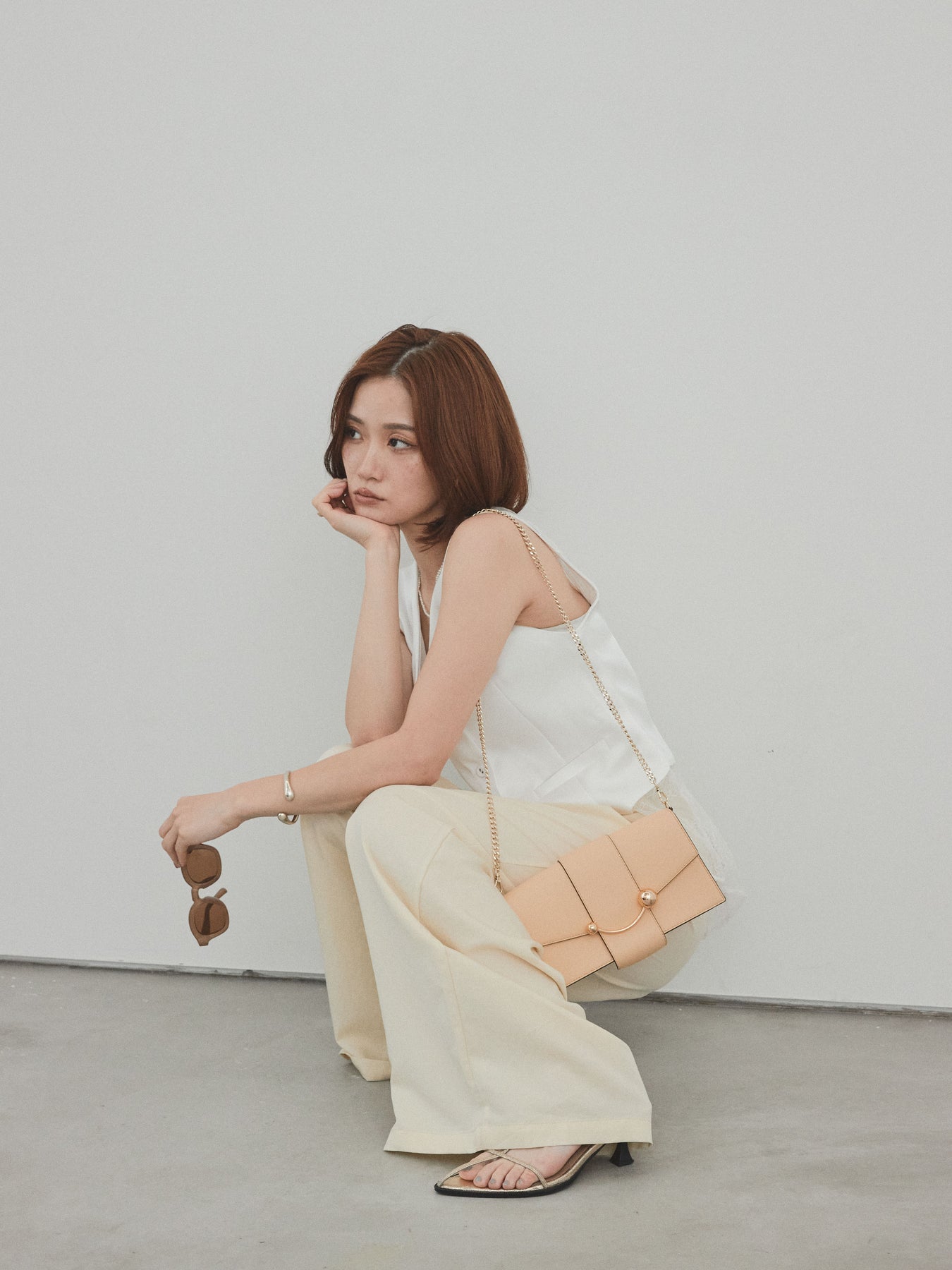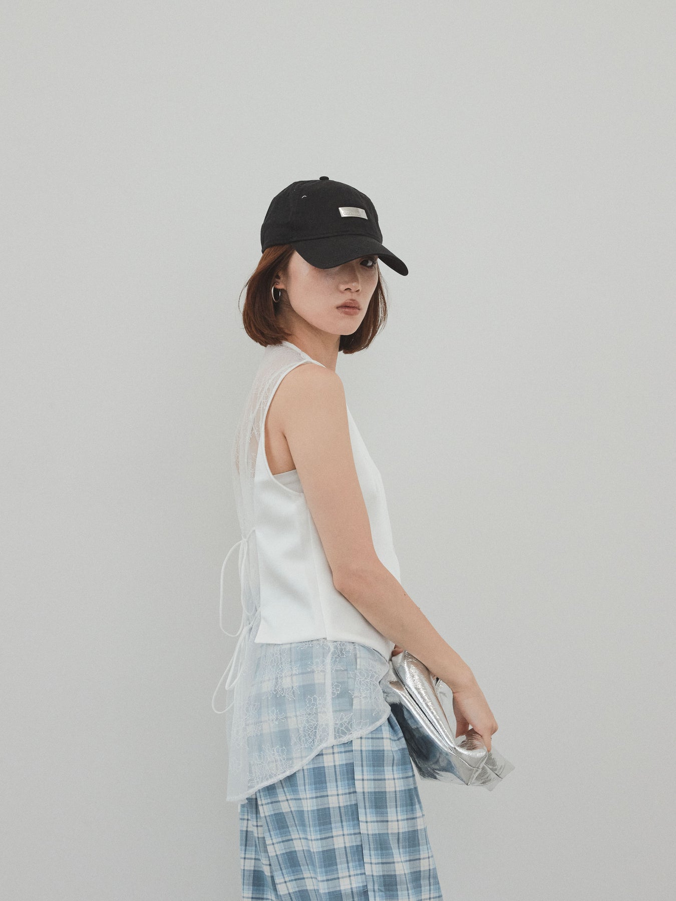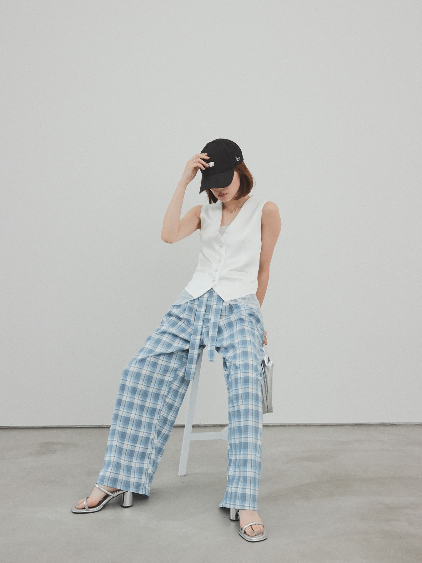 上品な光沢感が魅力のサテン素材に、繊細なレースを切り替えたデザインベスト。モード感漂うVネックシルエットと、裾からのぞくレースがスタイリングに女性らしさをプラスしてくれます。前を留めて1枚着風に着こなすのはもちろん、Tシャツやシアートップスとのレイヤードスタイルもおすすめ。きれいめにもカジュアルにも合わせやすく、コーディネートの主役として活躍してくれる一着です。 ※ボトムス、キャミソール(インナー)以外の商品は一律でインナーは付属していません。