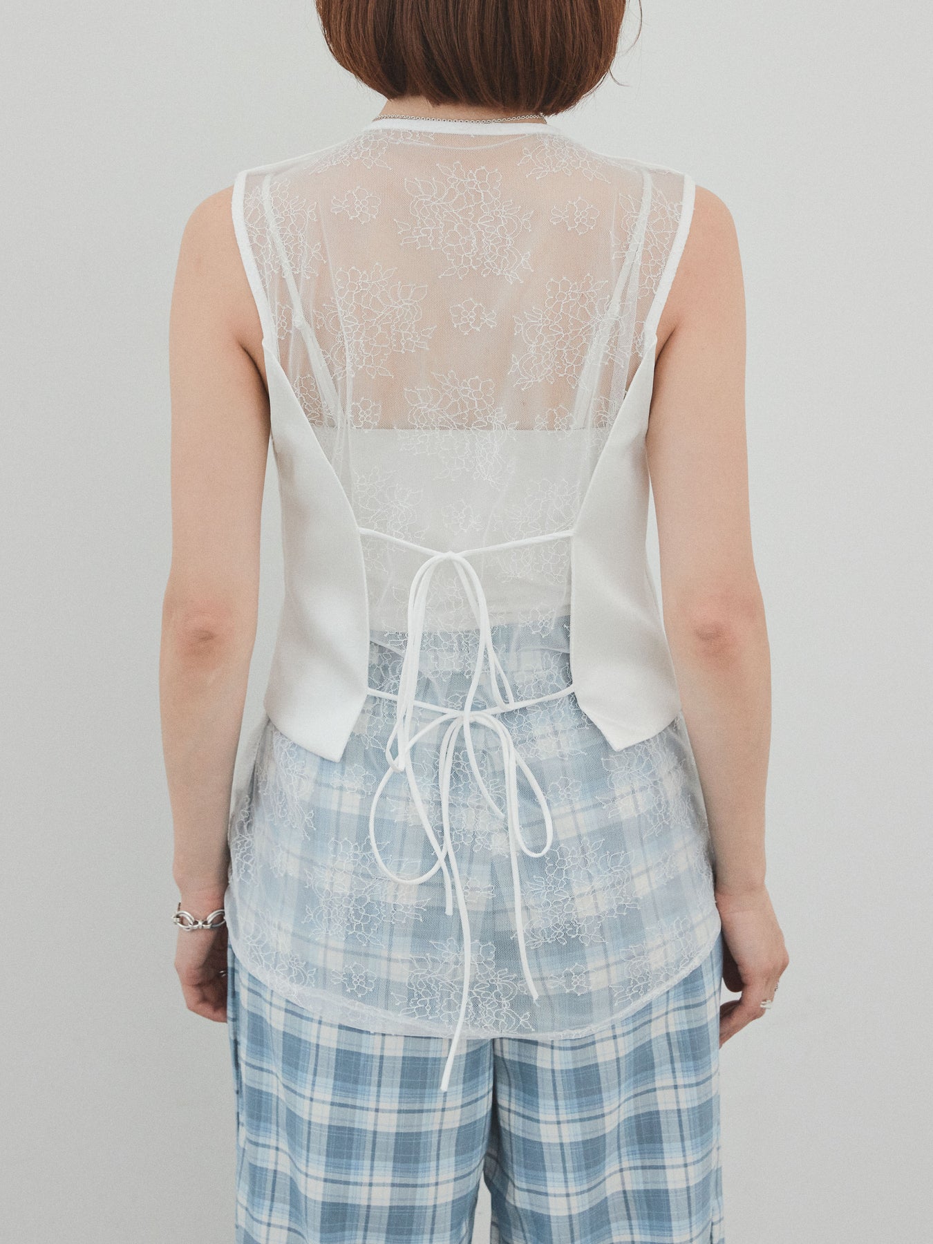 [予約]サテン×レース切替ベスト/ホワイト