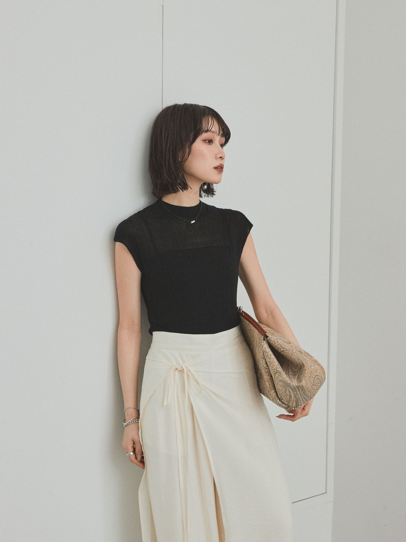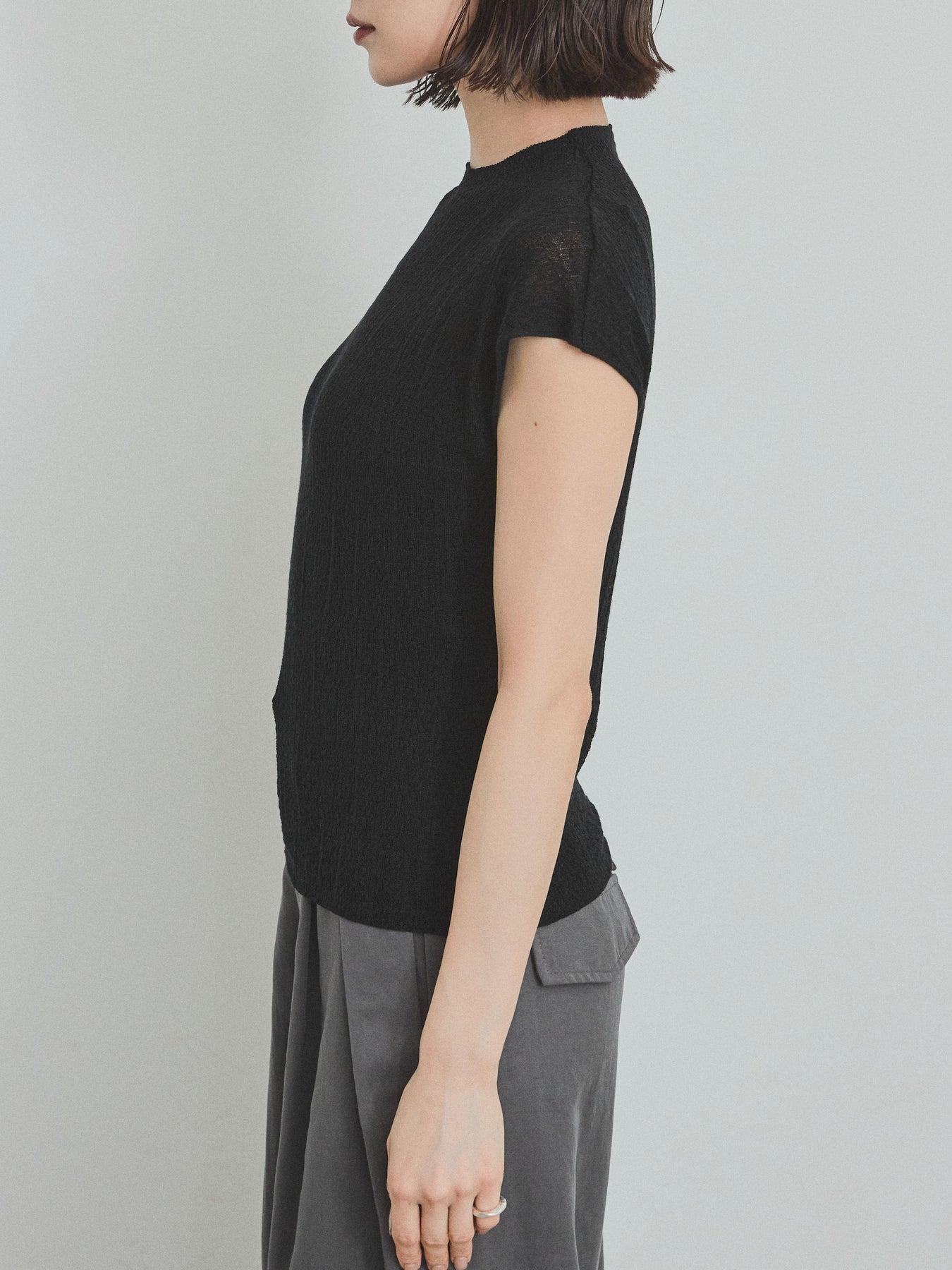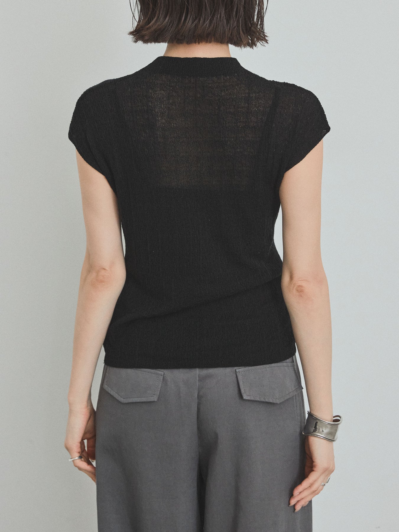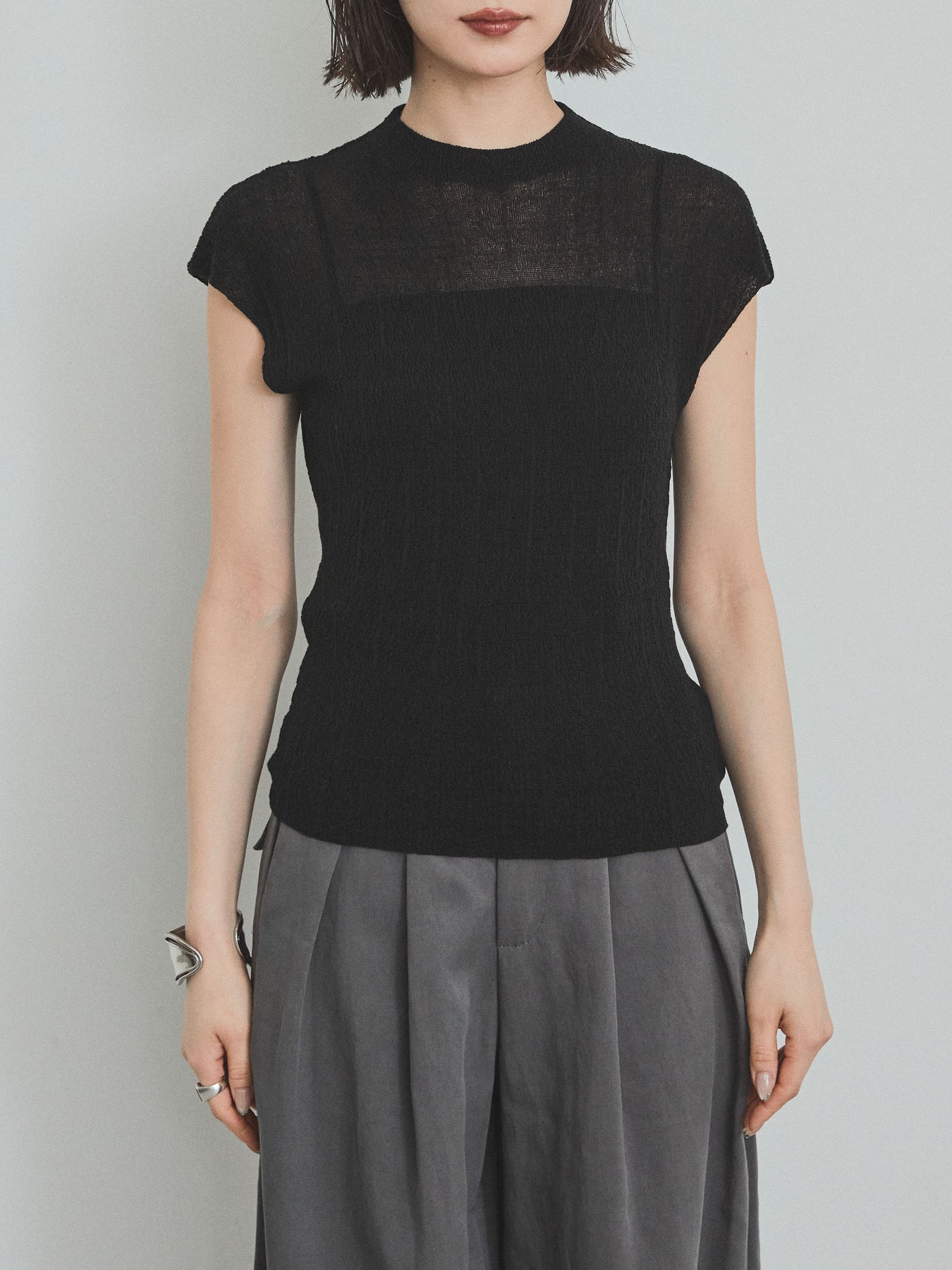 [予約]フレンチスリーブシアーニットトップス/ブラック