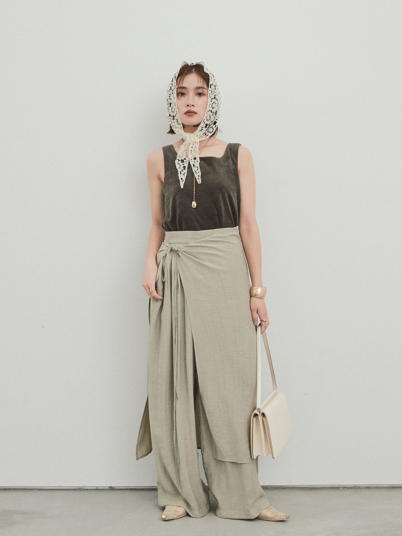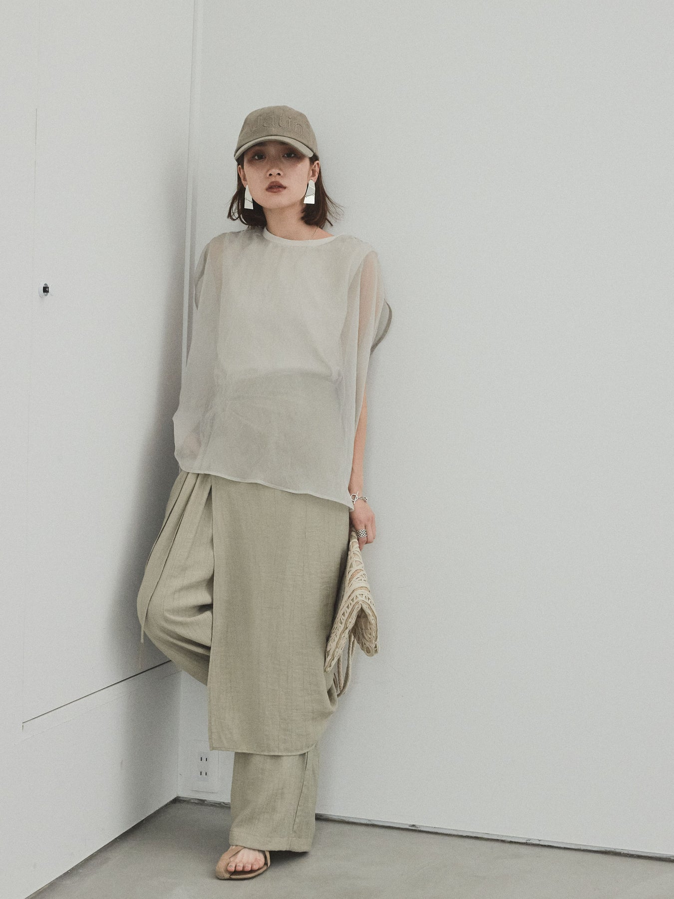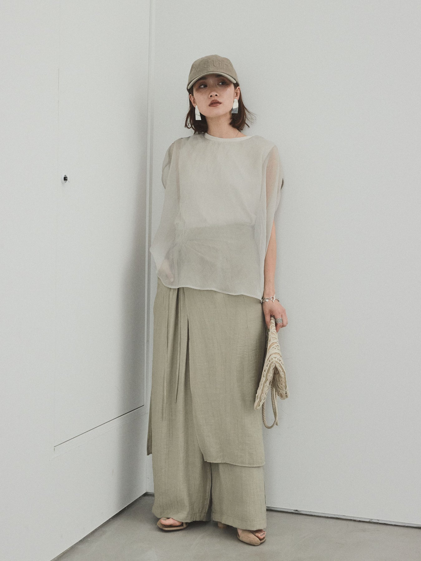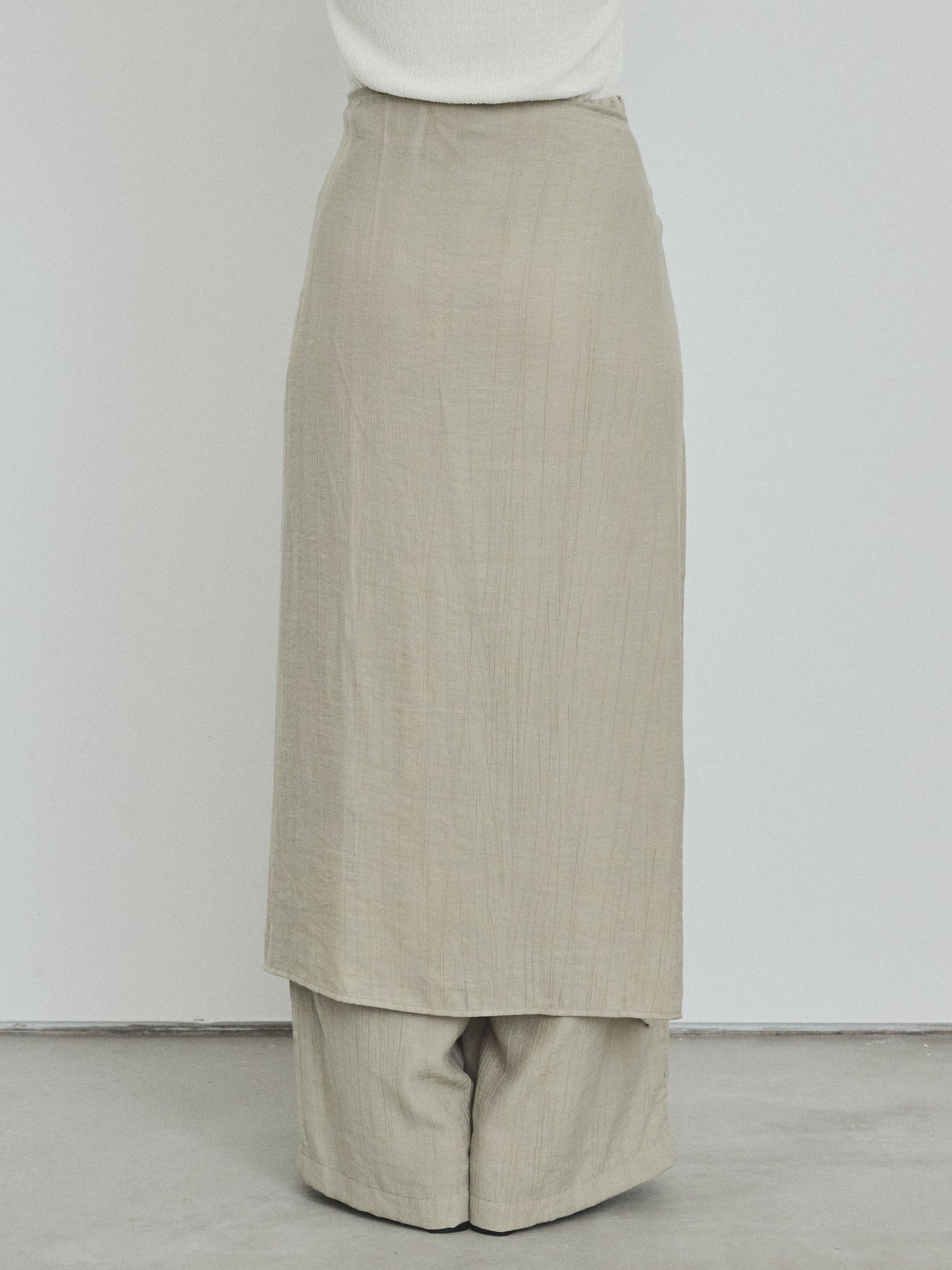 [予約]ワッシャーサテンレイヤードスカートパンツ/カーキベージュ