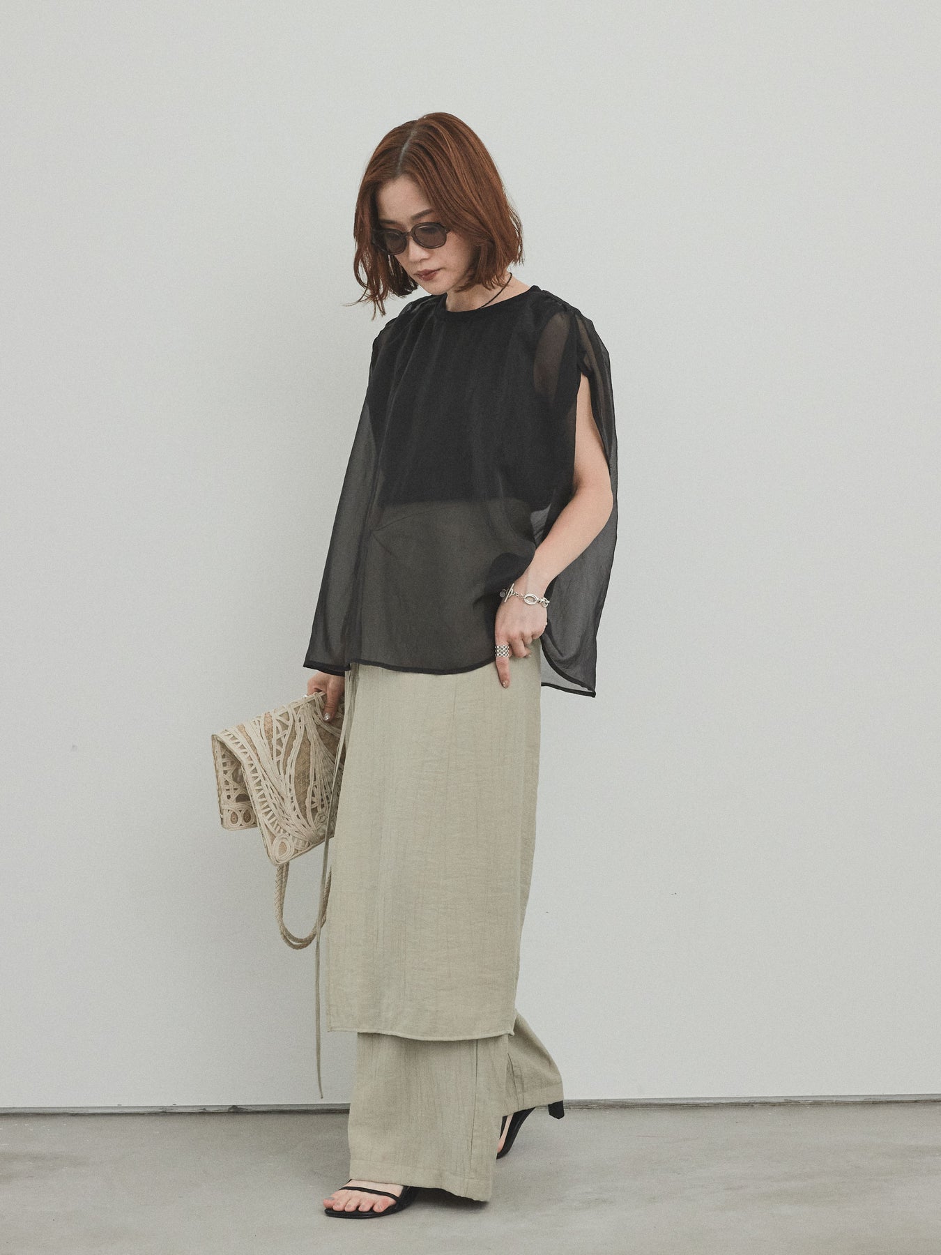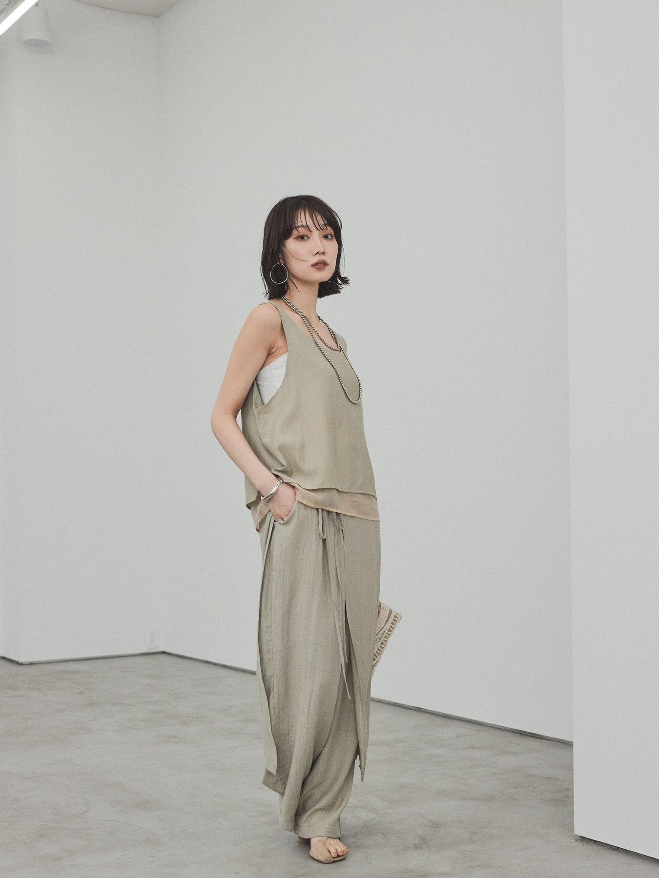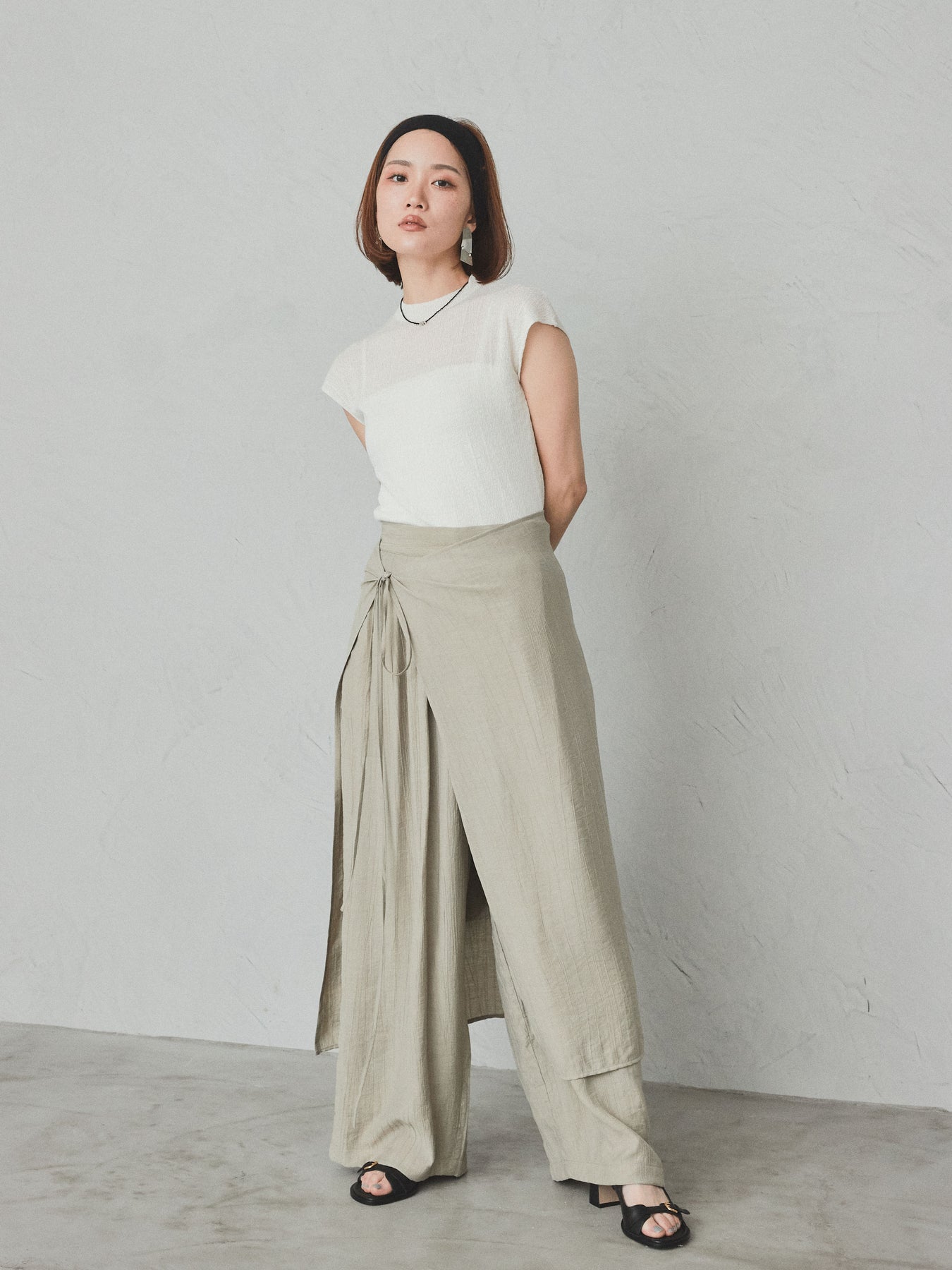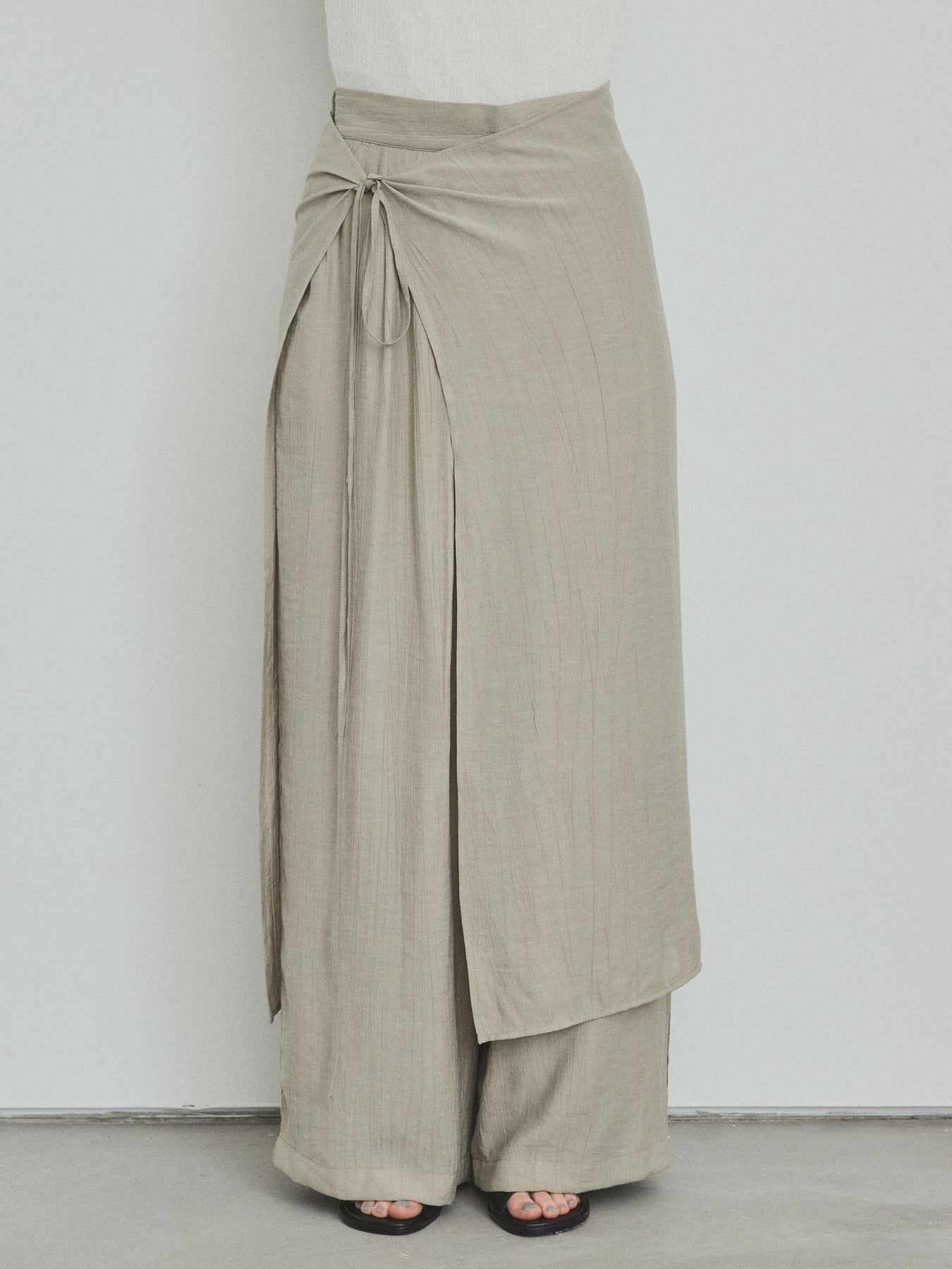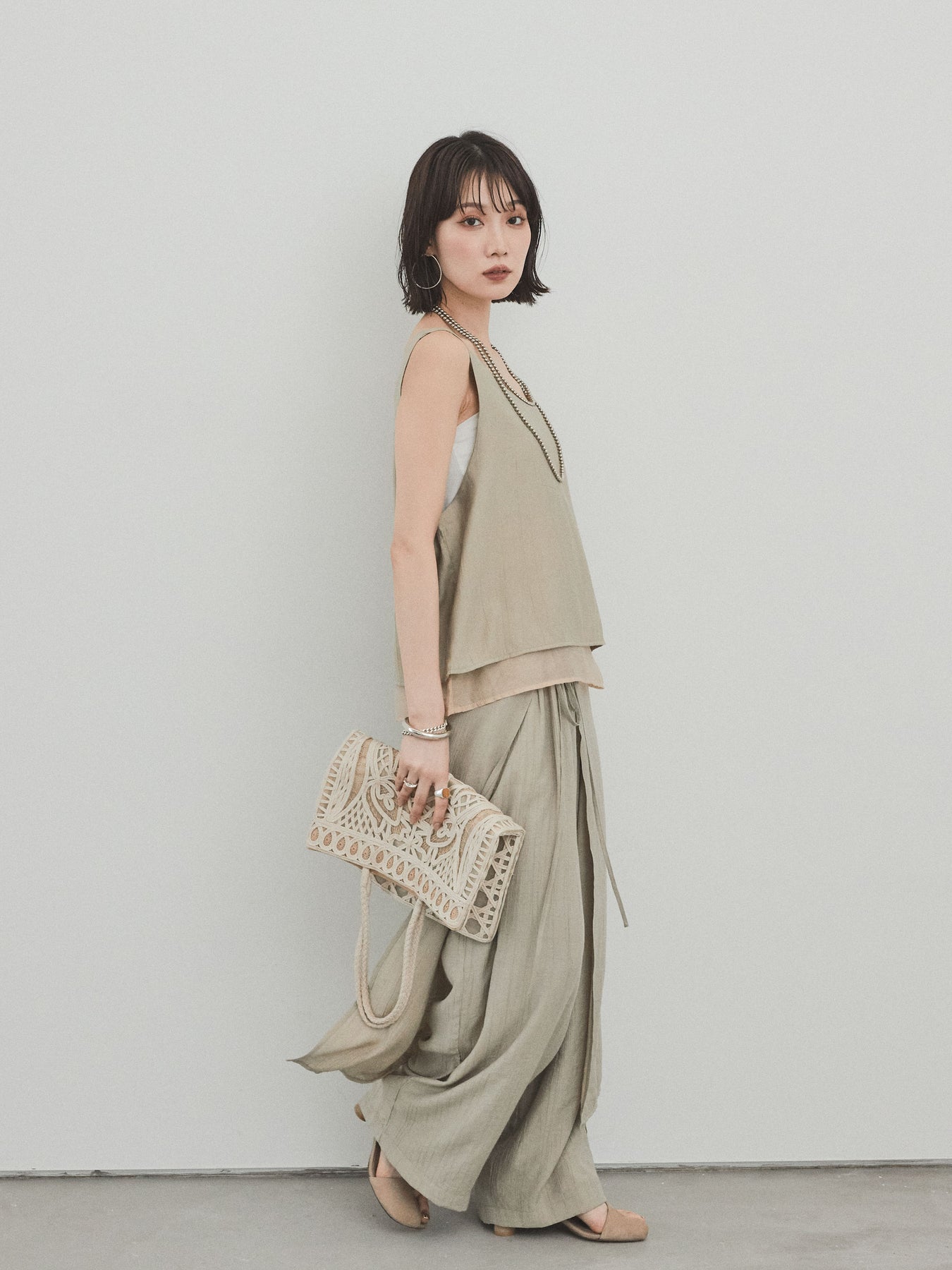 [予約]ワッシャーサテンレイヤードスカートパンツ/カーキベージュ