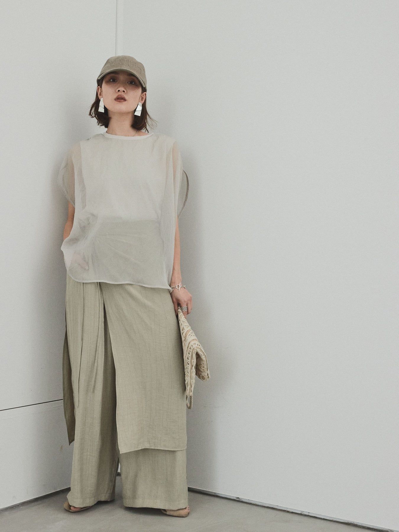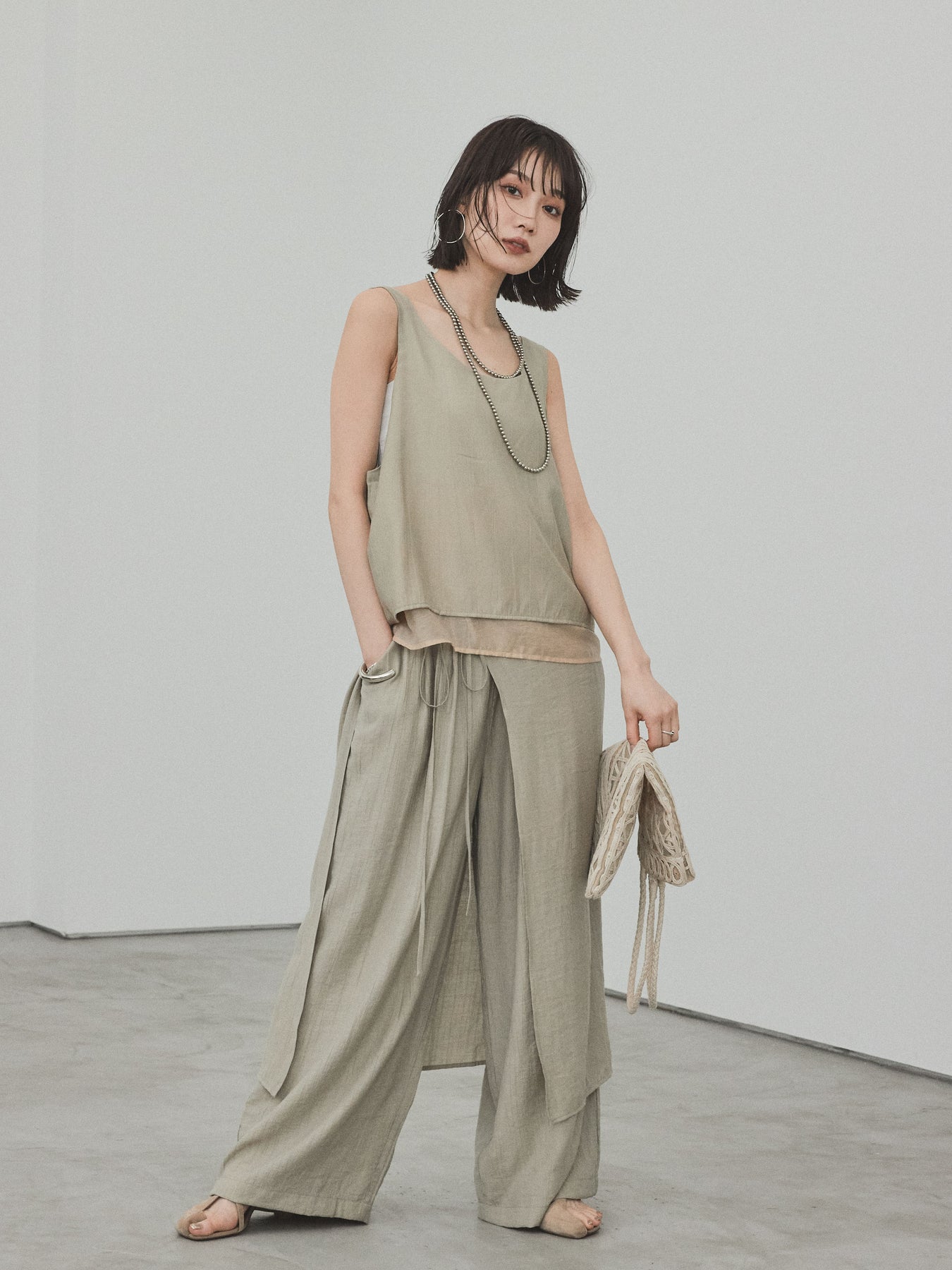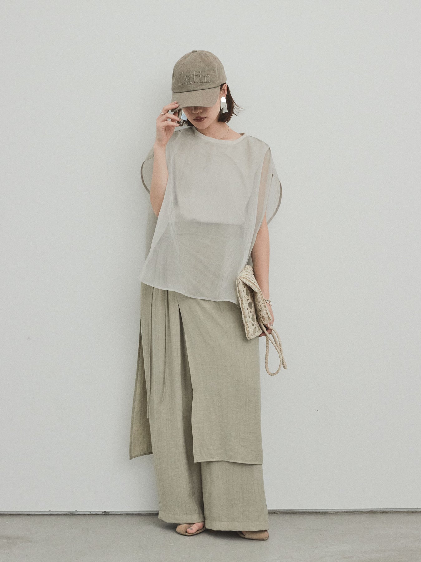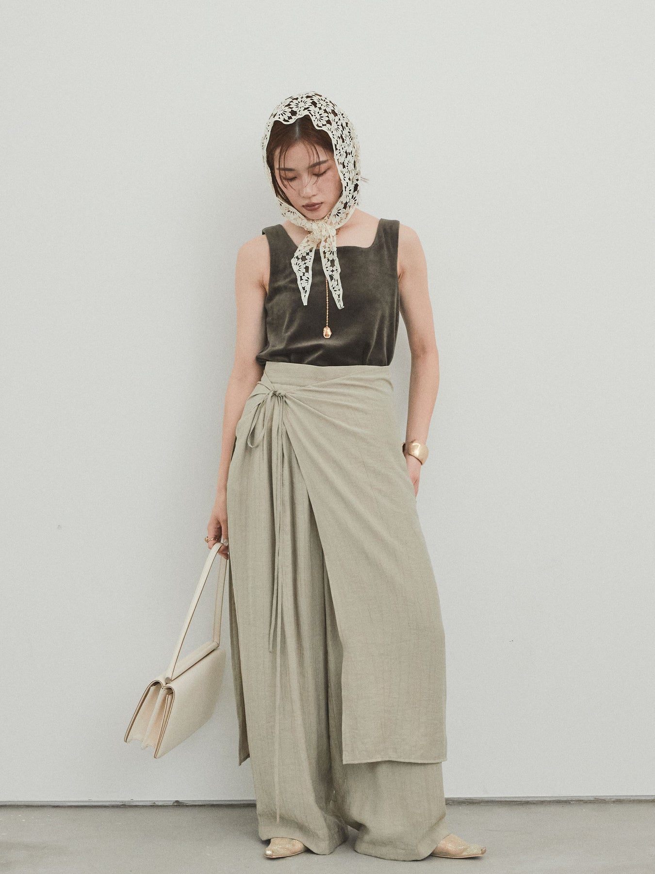 [予約]ワッシャーサテンレイヤードスカートパンツ/カーキベージュ
