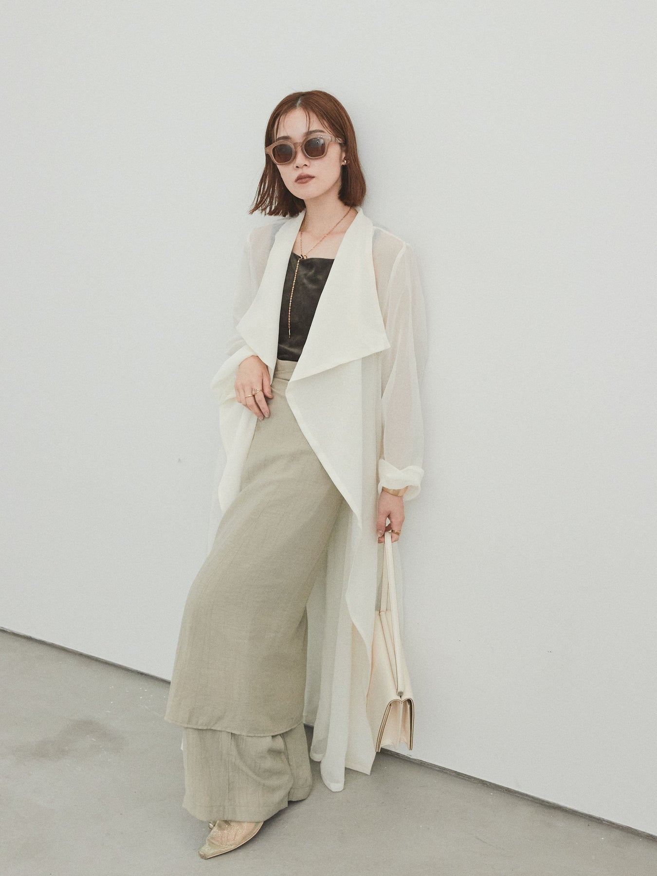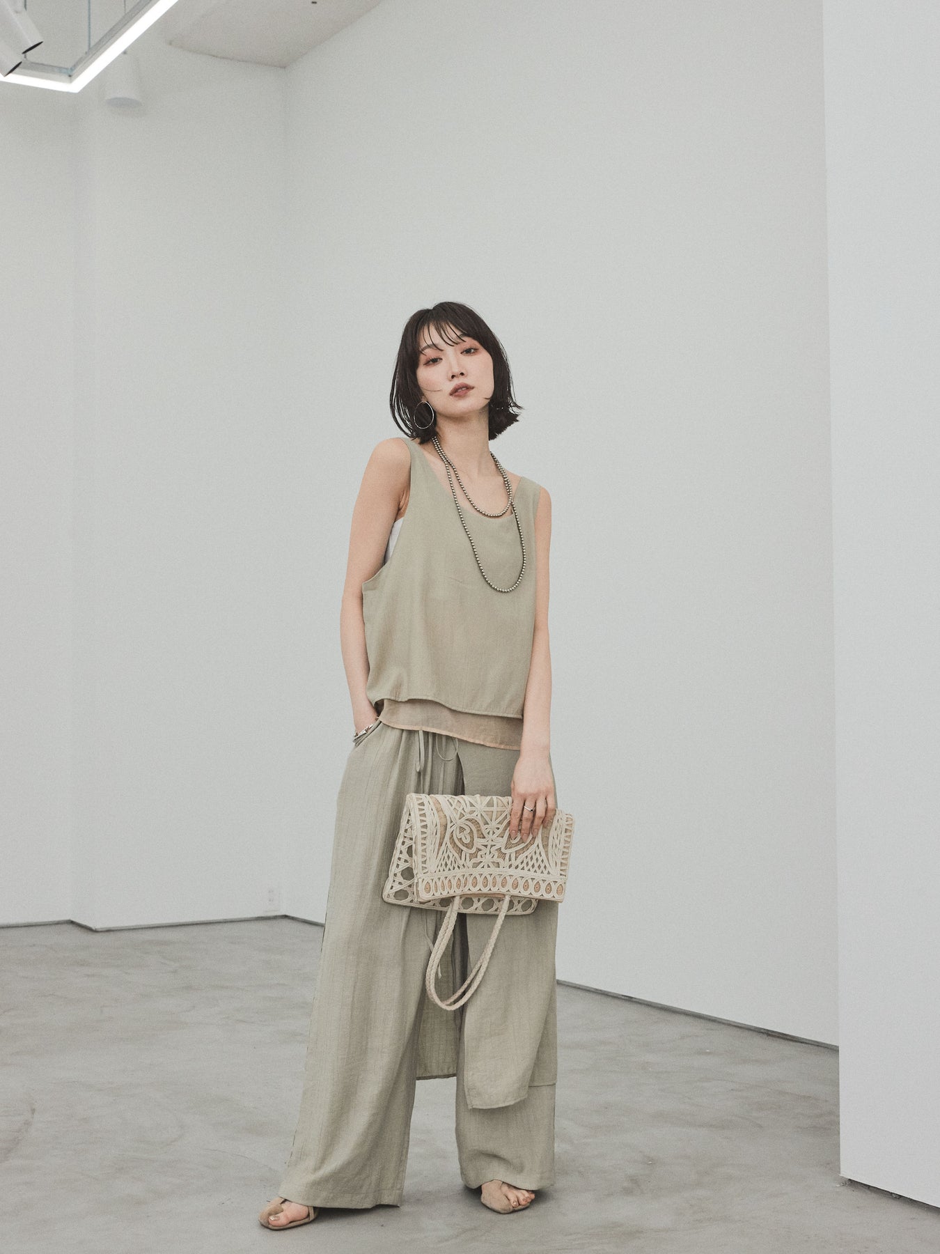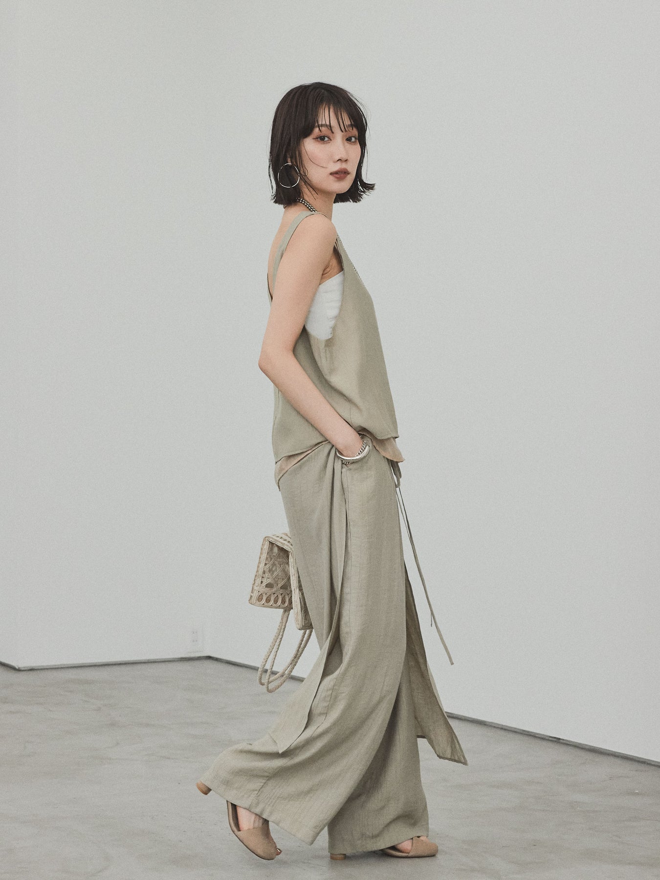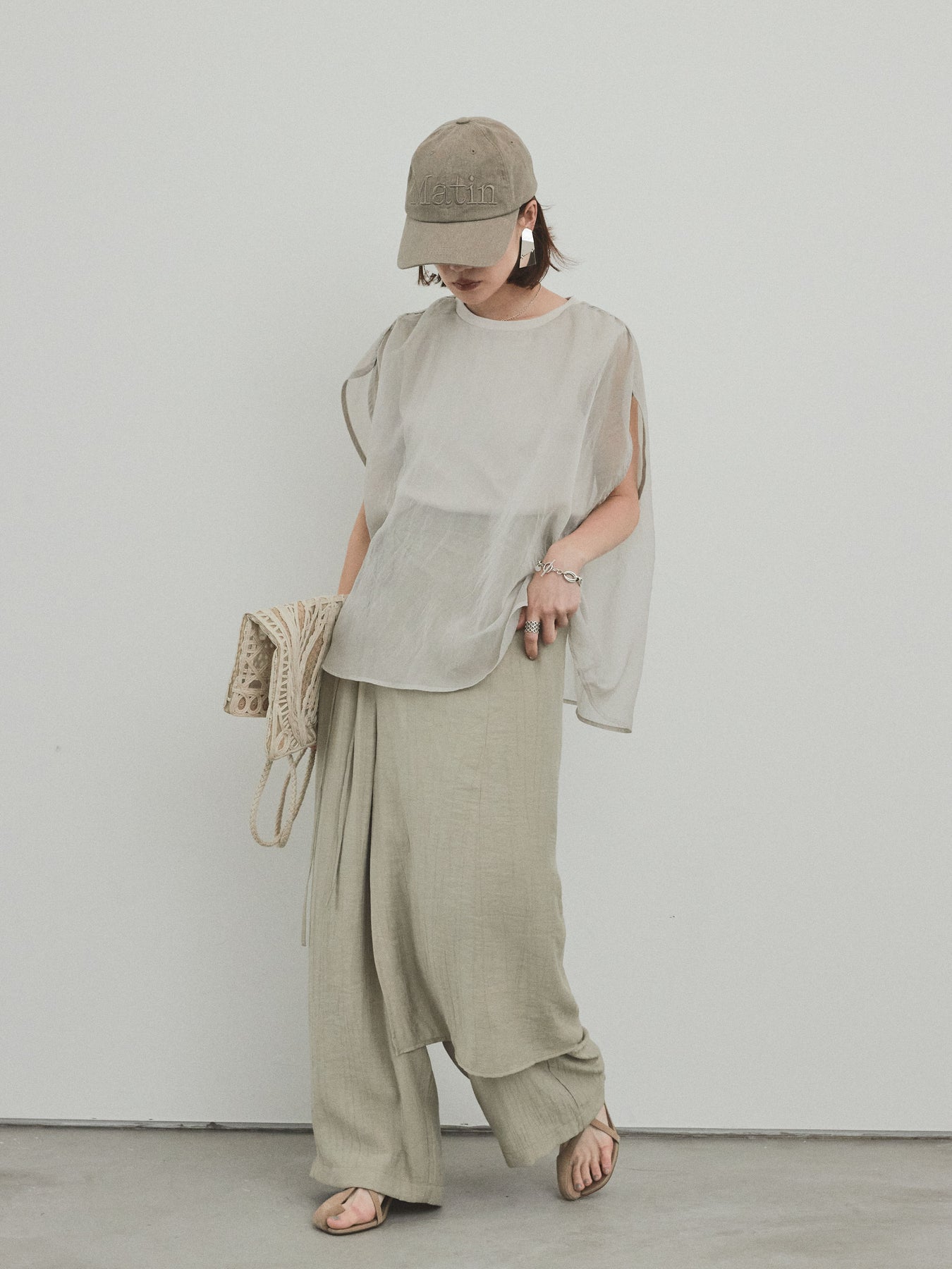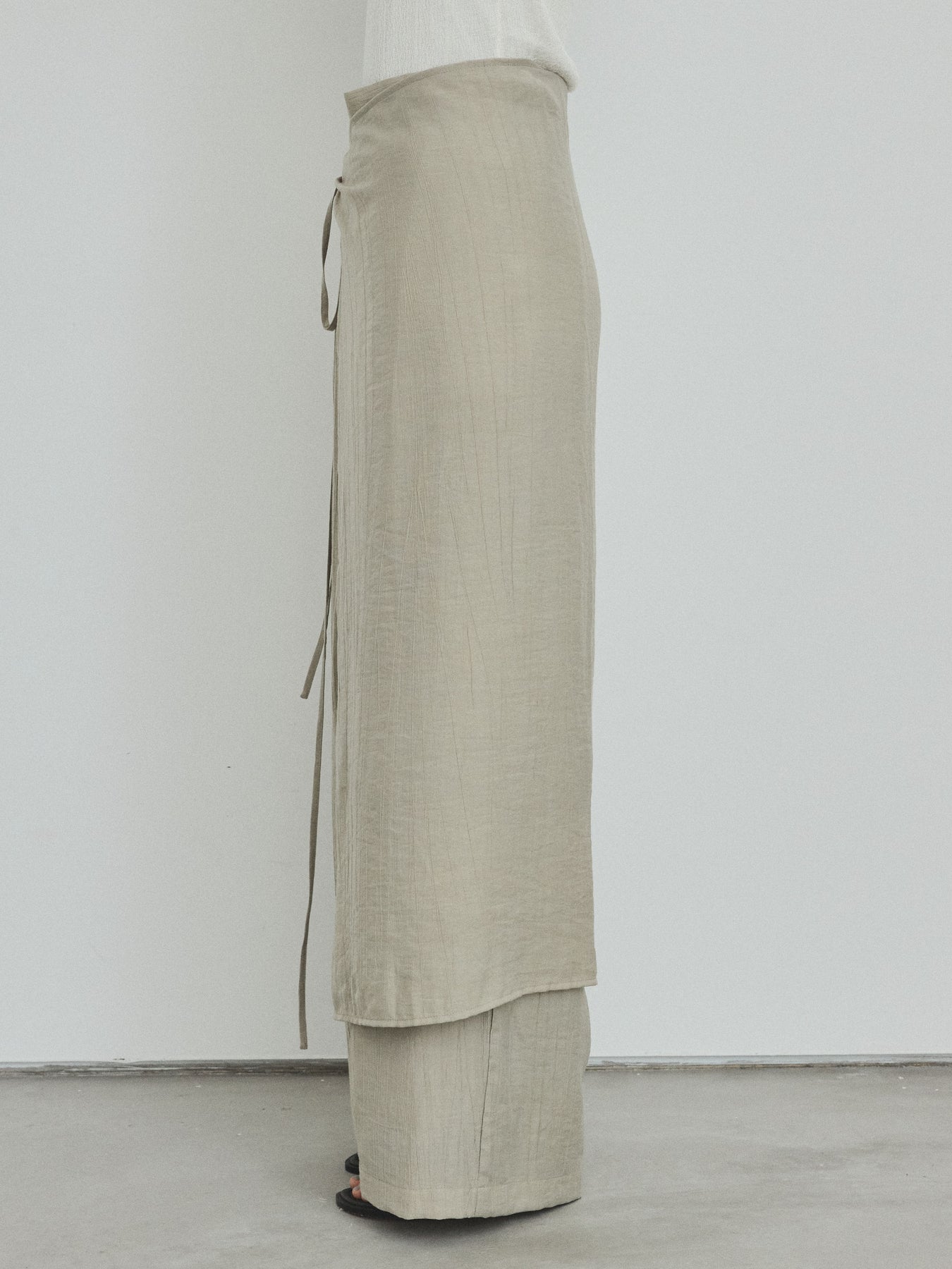 [予約]ワッシャーサテンレイヤードスカートパンツ/カーキベージュ