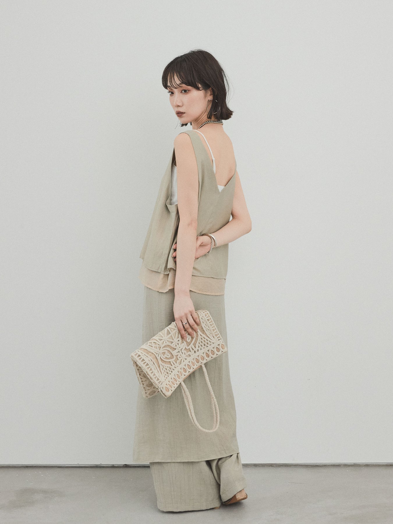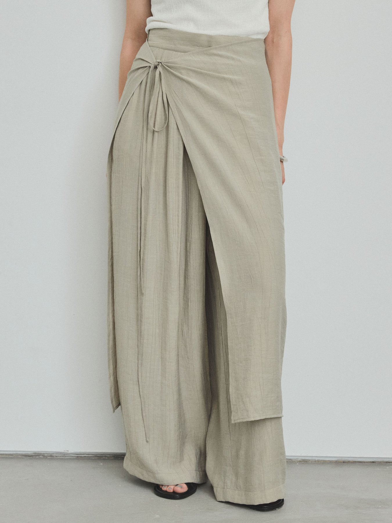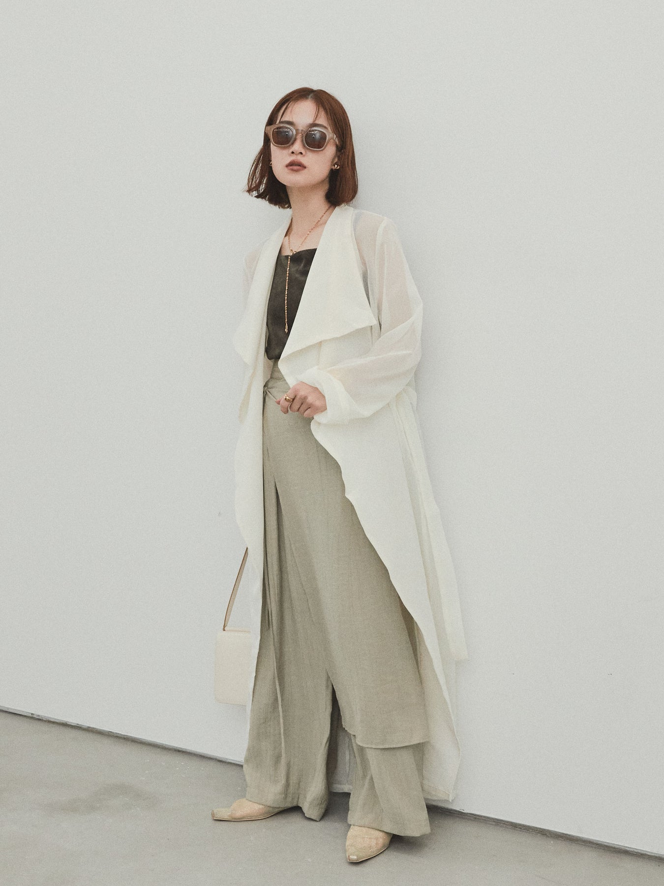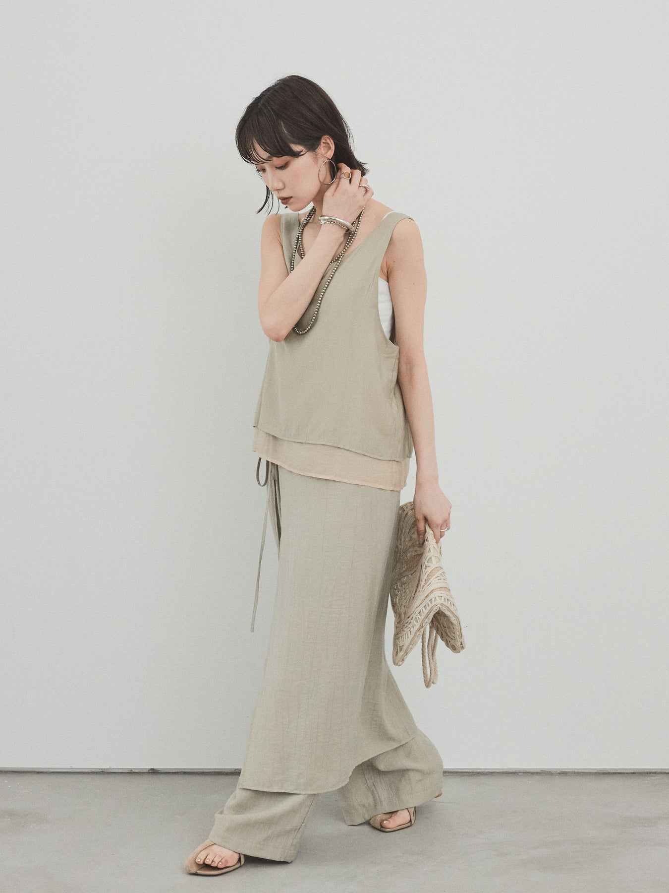 [予約]ワッシャーサテンレイヤードスカートパンツ/カーキベージュ