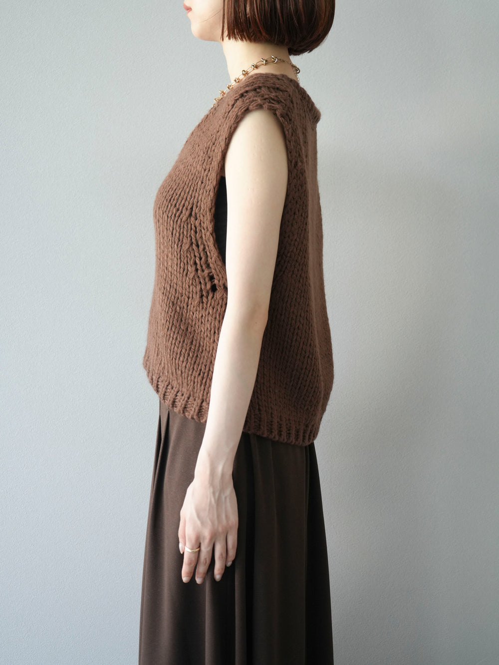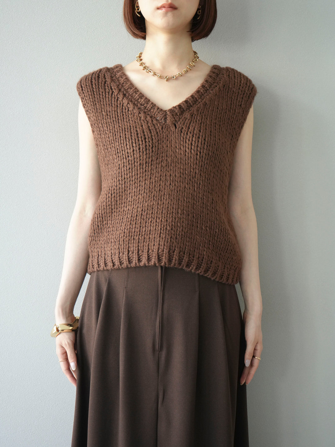 [予約]ロービングVネックショートニットベスト/ブラウン
