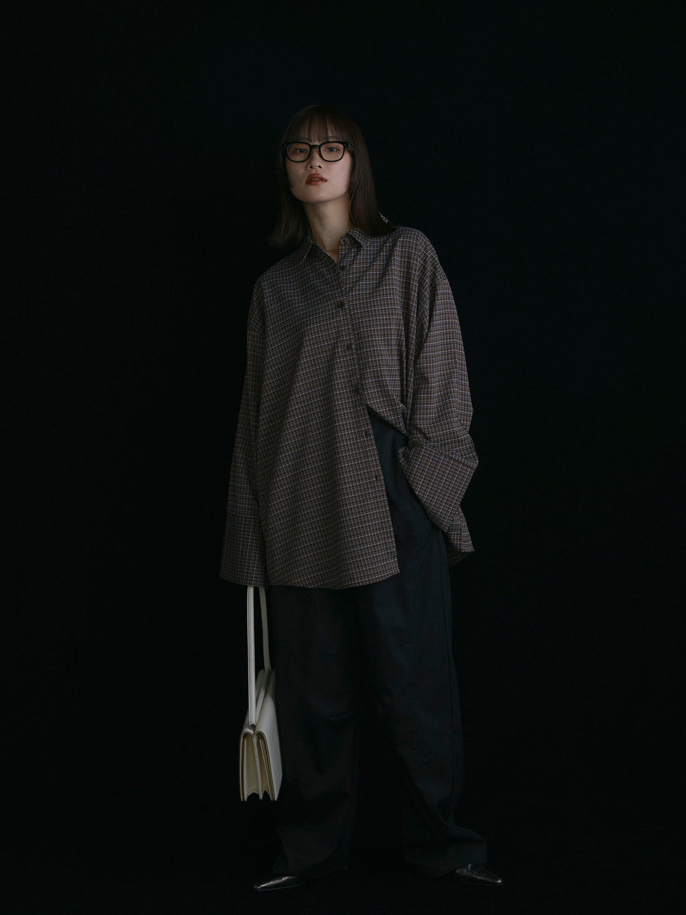 【Allure】[SET]チェックBIGカフスオーバーシャツ+タフタワイドカーブパンツ(2set)