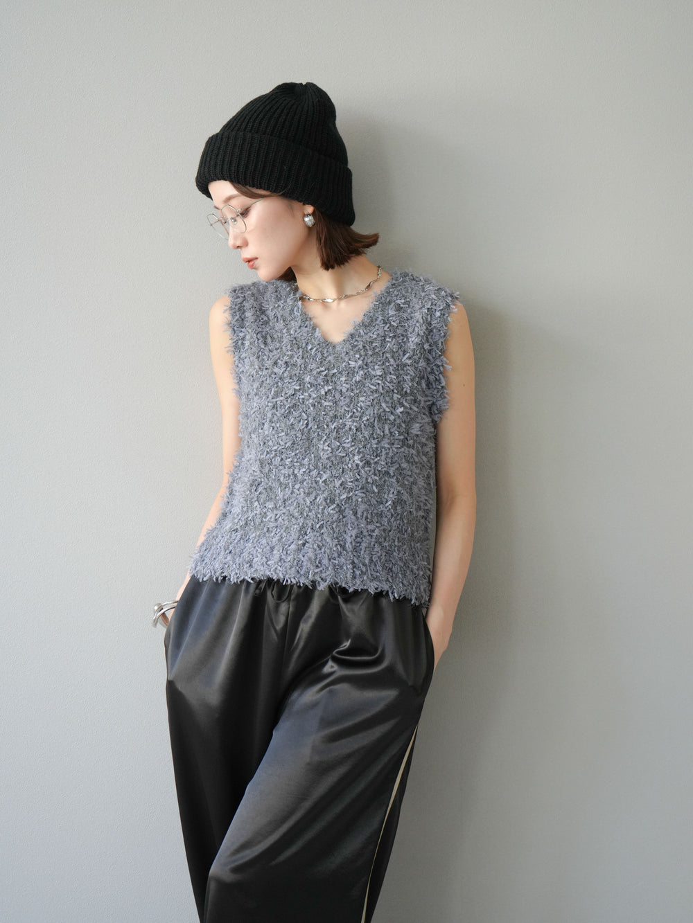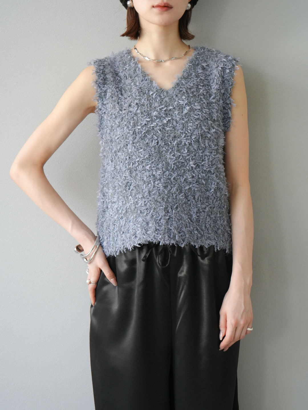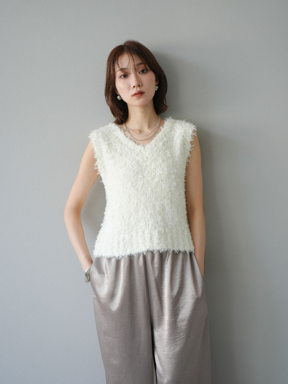 [予約]テープヤーンフリンジニットベスト/アイボリー
