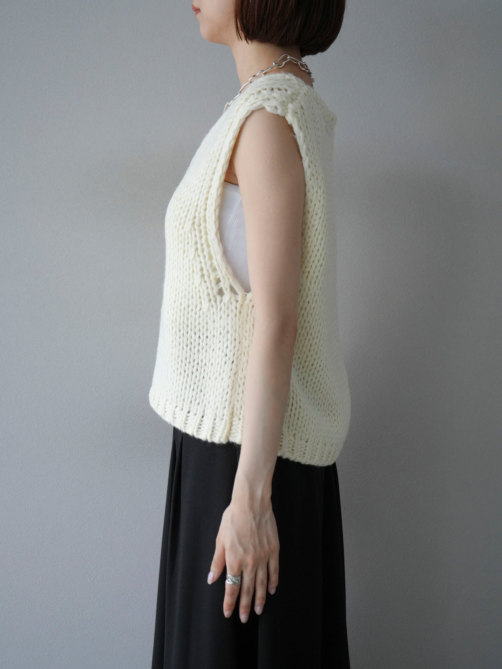 [予約]ロービングVネックショートニットベスト/アイボリー