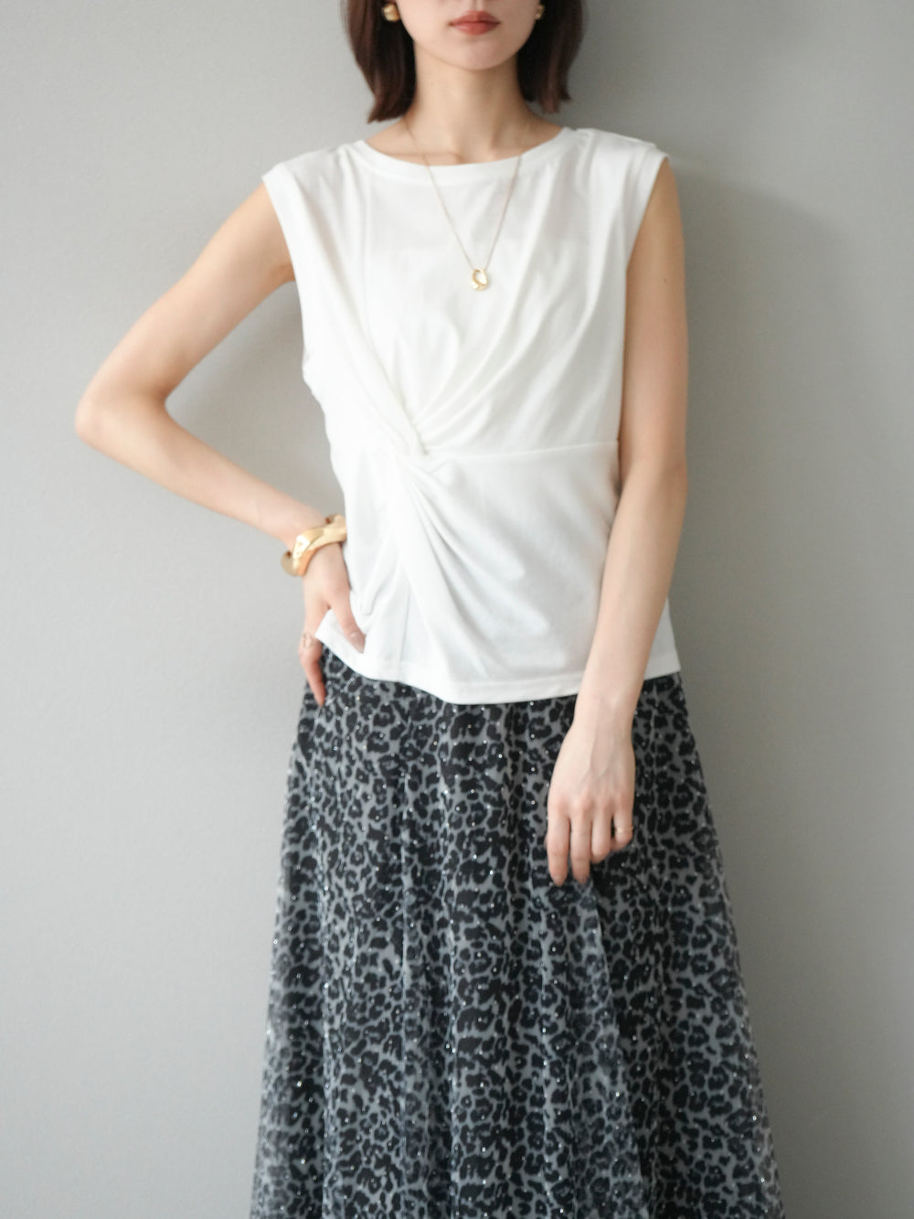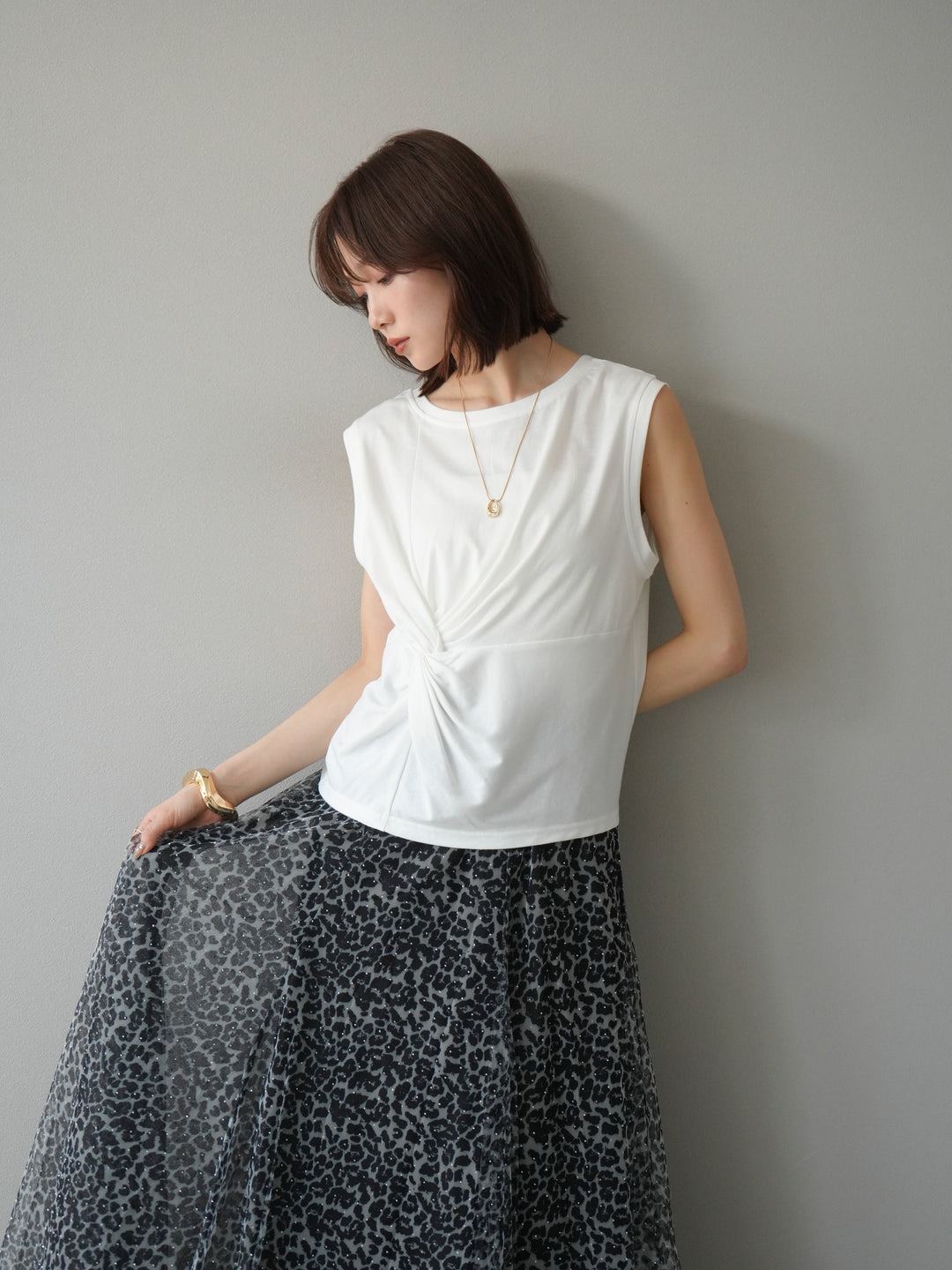 【Allure】[SET]シアーフリルメロートップス+ラップデザインタックワイドパンツ(2set)