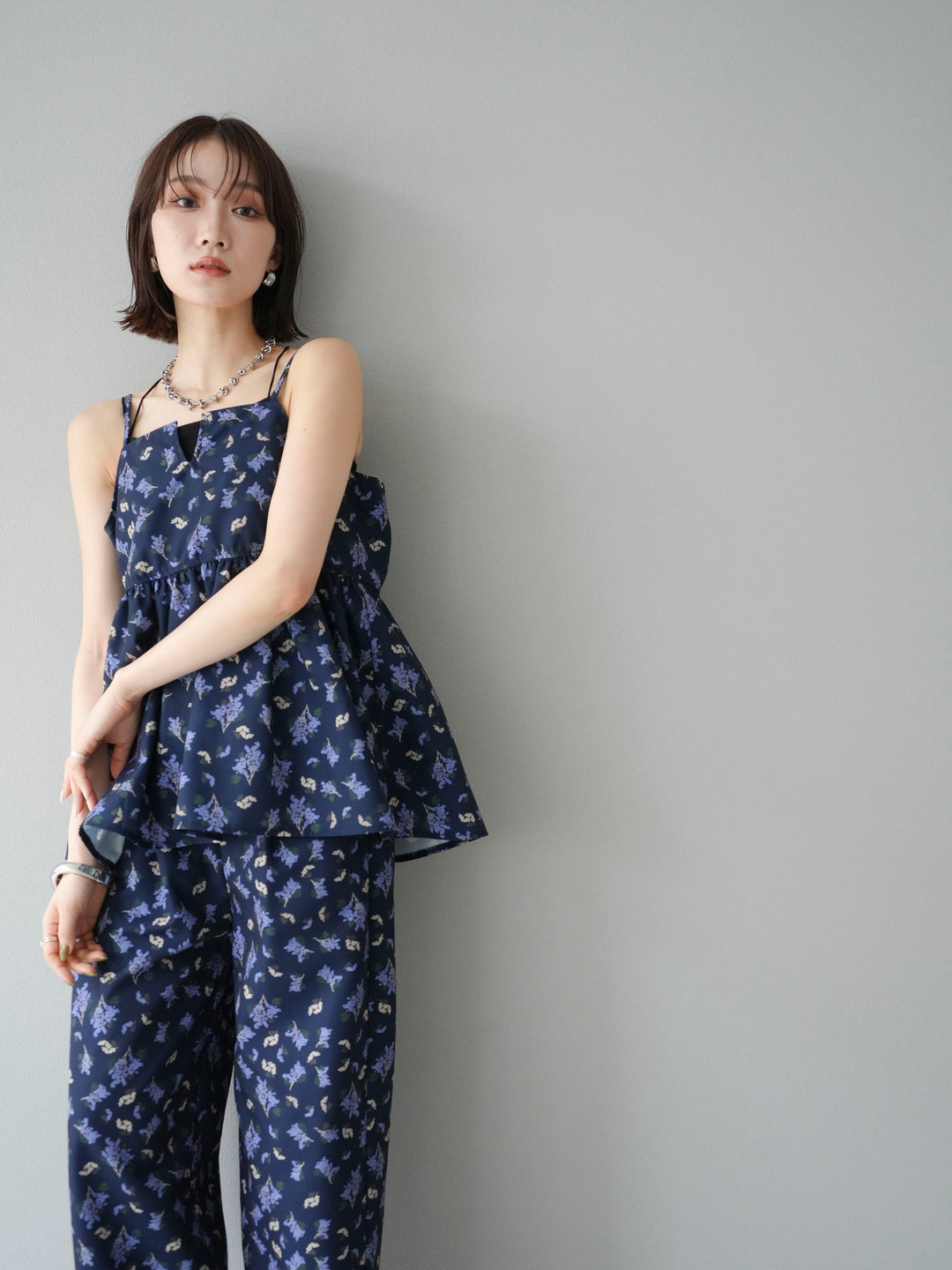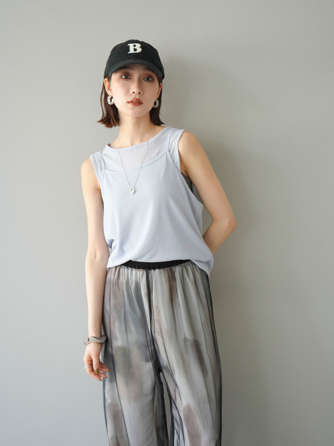 [SET]ボリュームスリーブシアータックブラウス+コード刺繍チュールレイヤードパンツ(2set)