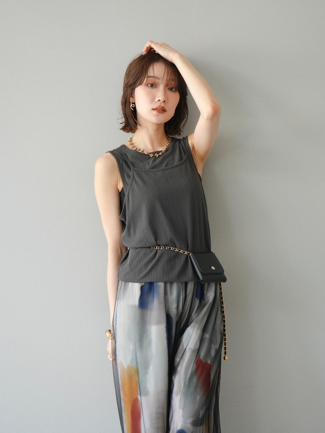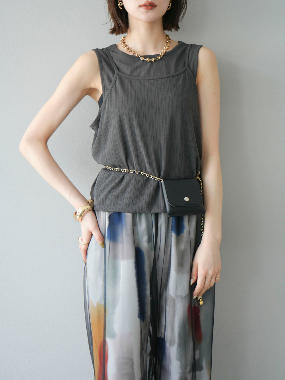 [予約]ウエストベルトシアーニットタンクトップ/ブラック