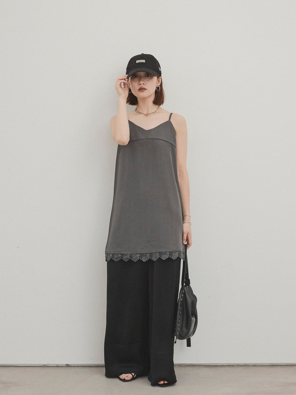 [予約]裾レース切替キャミミニワンピース/グレー
