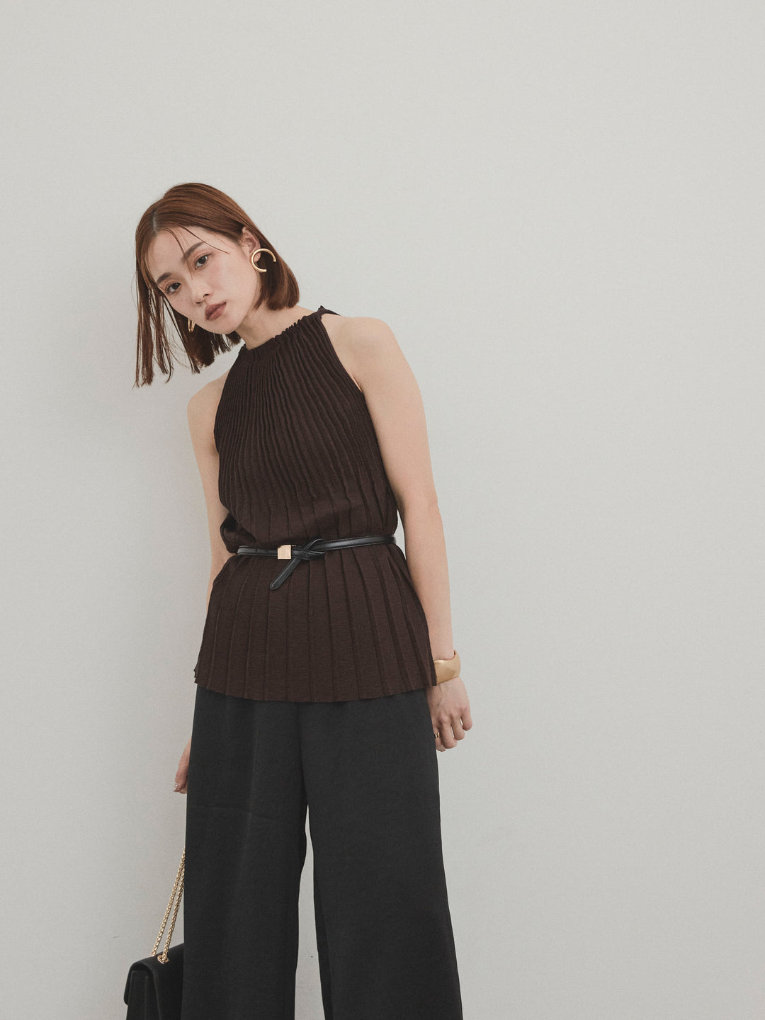 [予約]プリーツニットキャミソール/ブラウン
