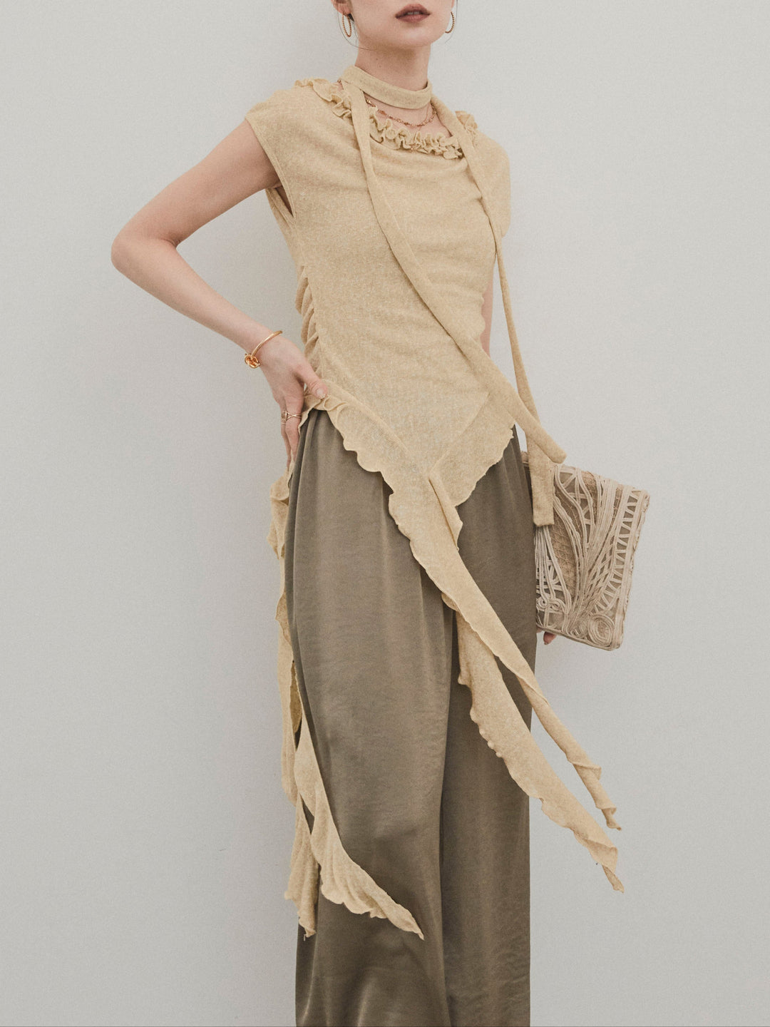 [SET]ラッフルシアーニットタンクトップ+ラッフルシアーニットタンクトップ(2set)