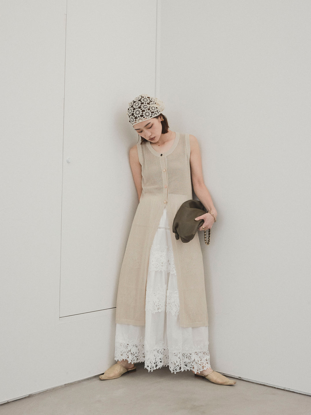 [SET]アソートボタンニットロングジレ+スカラップレースロングスカート(2set)