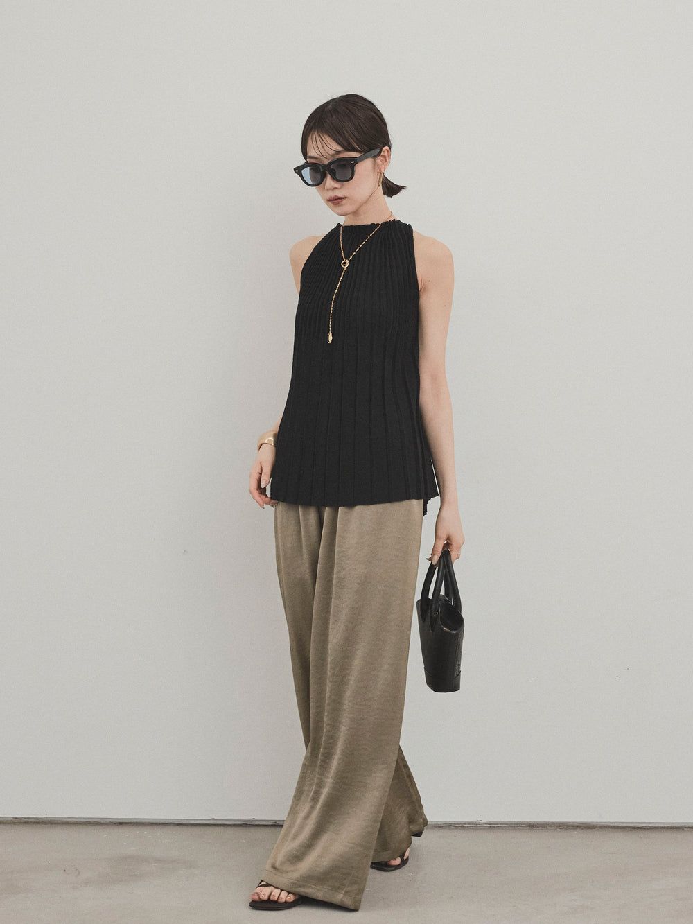 [予約]プリーツニットキャミソール/ブラック