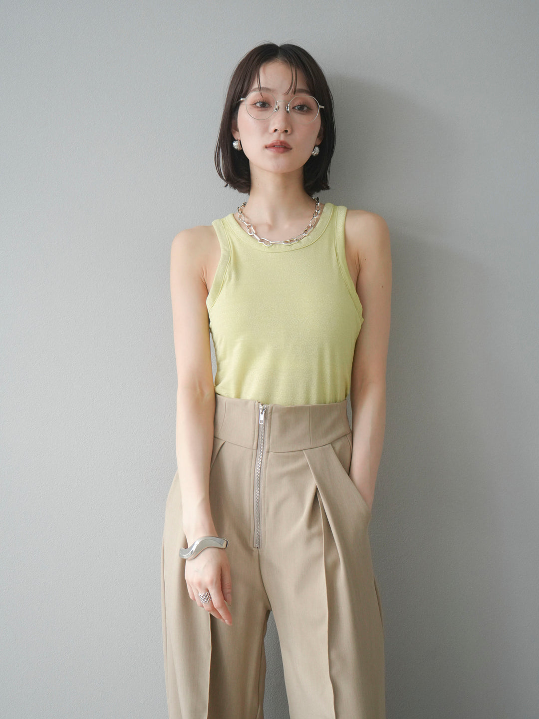 [予約]カップ付きラメアメスリブラトップ/イエロー