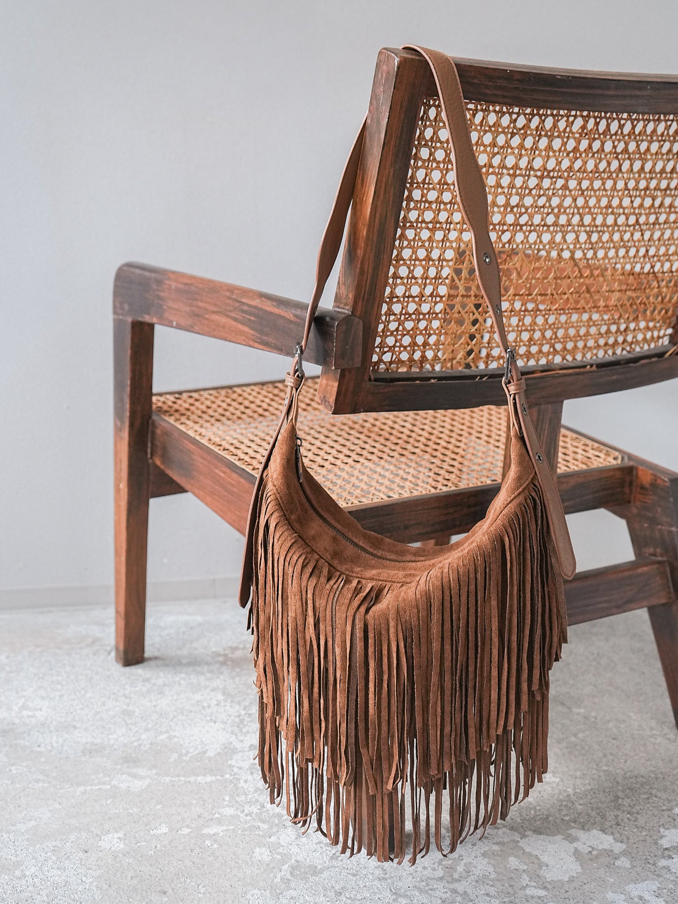 [予約]ワンハンドルフリンジスエードBAG /キャメル