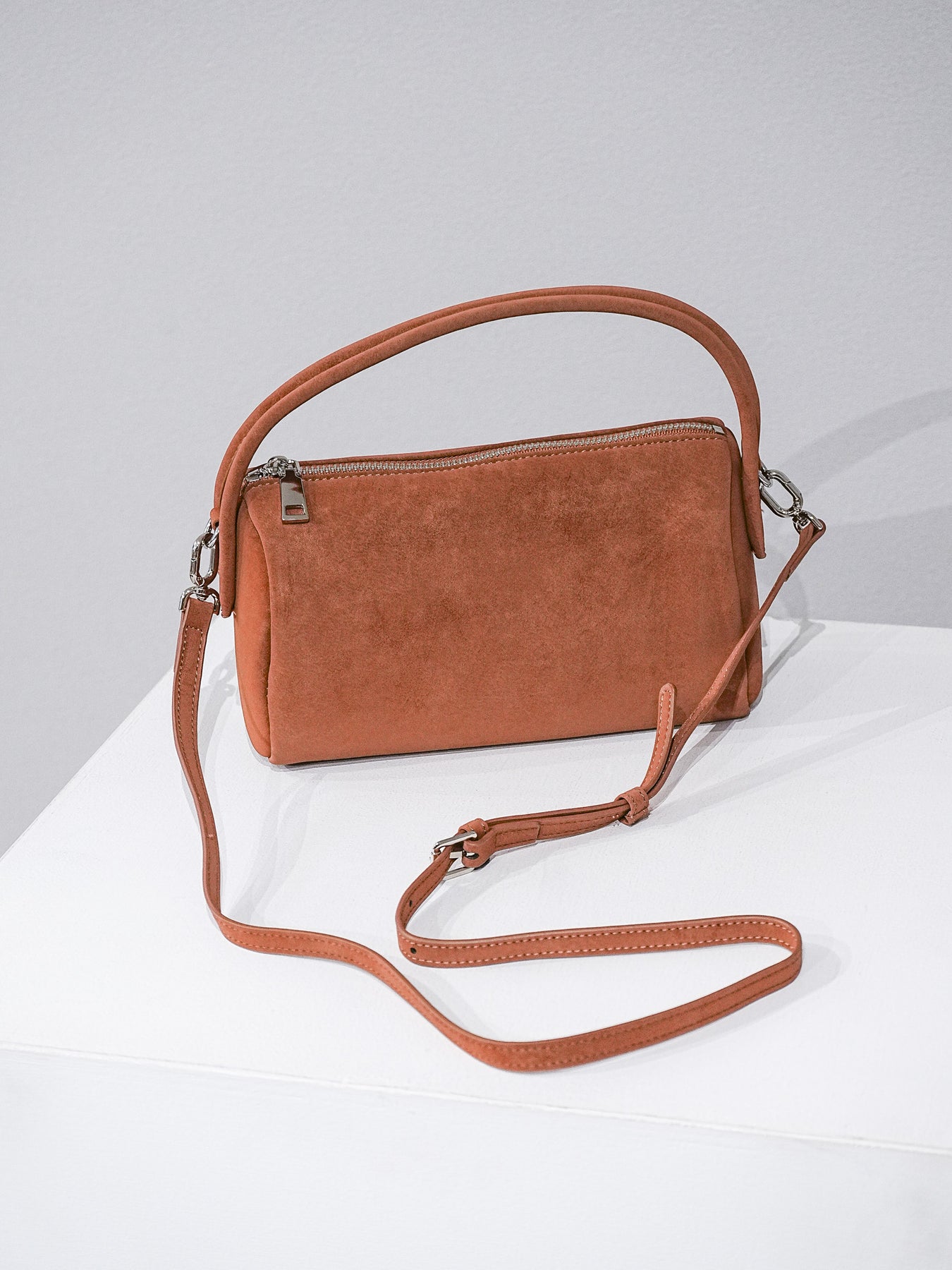 柔らかなレザー調素材で仕上げた、上品かつコンパクトなワンハンドルミニバッグ。丸みのあるフォルムが女性らしさを引き立て、シンプルながらも洗練された印象を与えます。ショルダーストラップ付きで、ハンドバッグとしてもショルダーとしても使える2WAY仕様。デイリーからオケージョンまで幅広いシーンで活躍し、コーディネートにさりげないアクセントを添えるアイテムです。