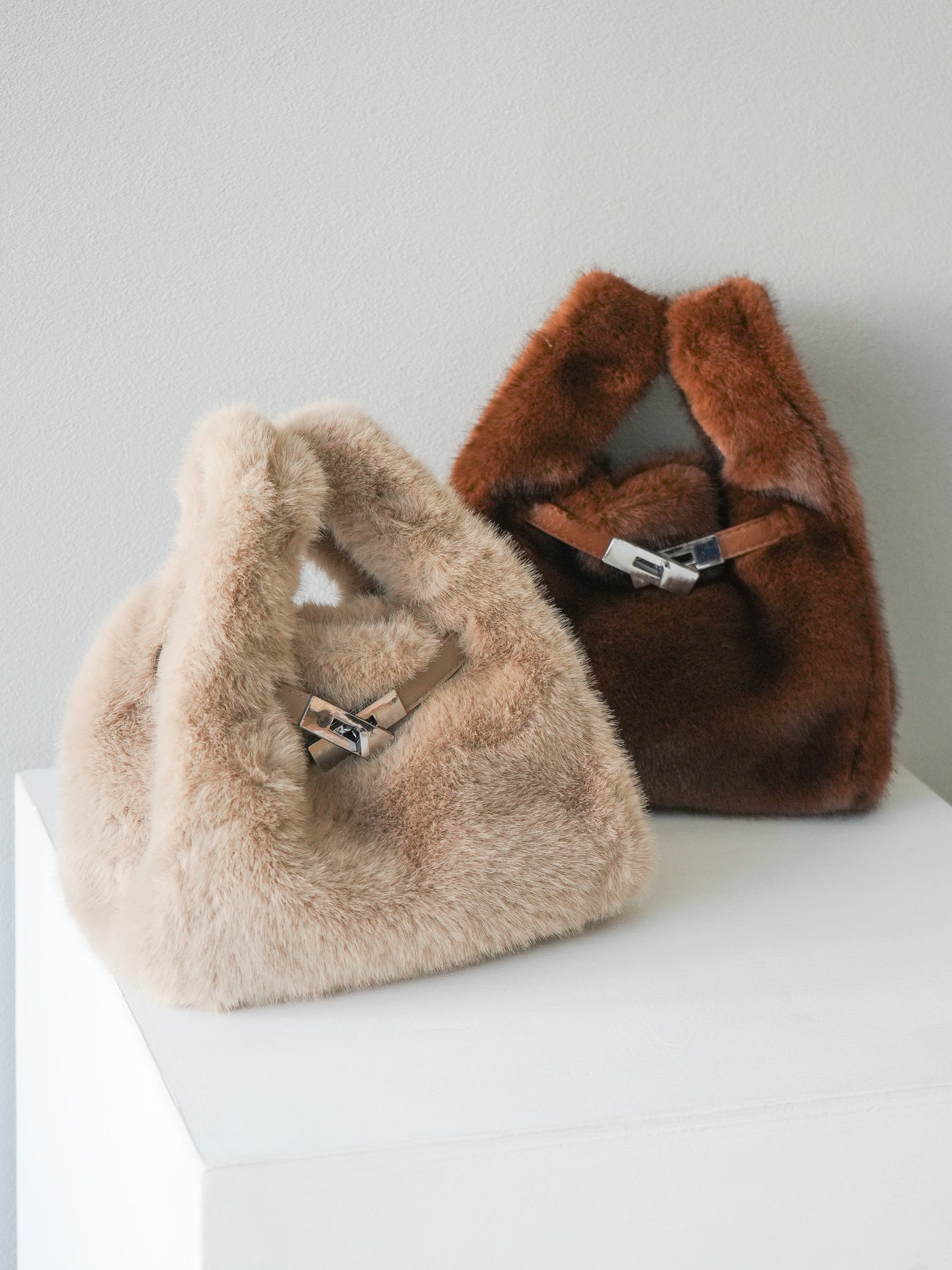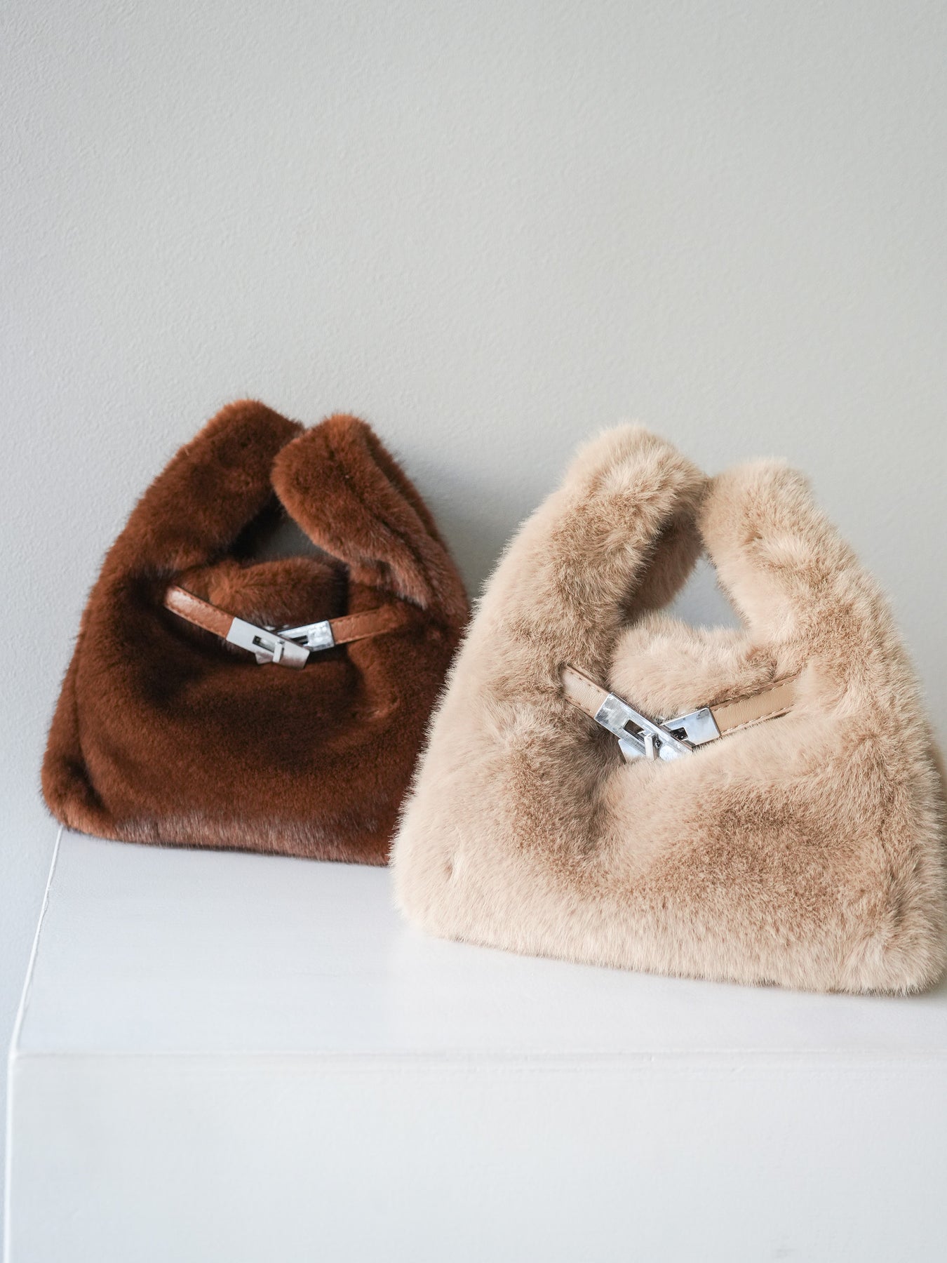 ふんわりとしたフェイクファー素材が、季節感と存在感を一気に高めてくれるトートバッグ。 立体的なフォルムに、レザー調のベルトデザインをあしらい、大人っぽさと遊び心を絶妙にミックスしました。 しっかりとしたマチと収納力もあり、デイリー使いからちょっとしたお出かけにも活躍。 肩にかけても手持ちでもサマになる、バランスの良いサイズ感です。 コーディネートのアクセントとして取り入れるだけで、いつものスタイルをアップデートしてくれる一品です。