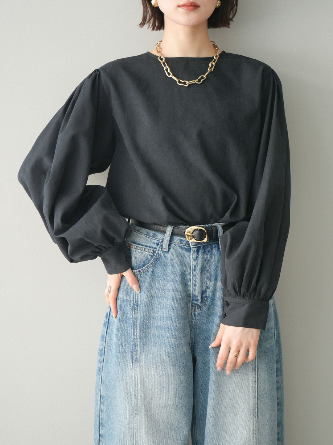 [予約]2WAYピーチスキンボリュームスリーブブラウス/black