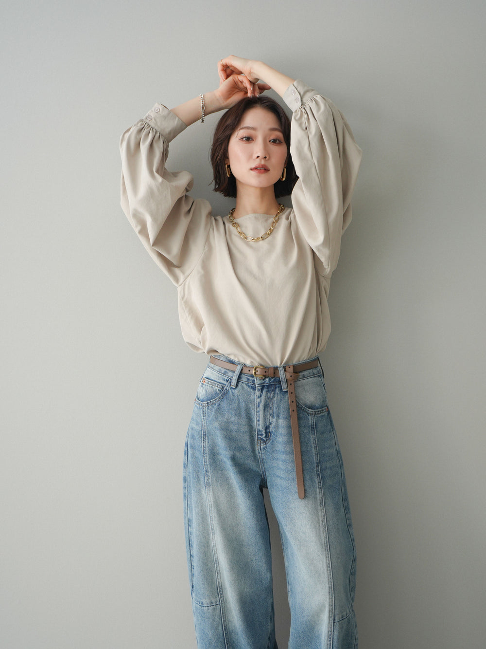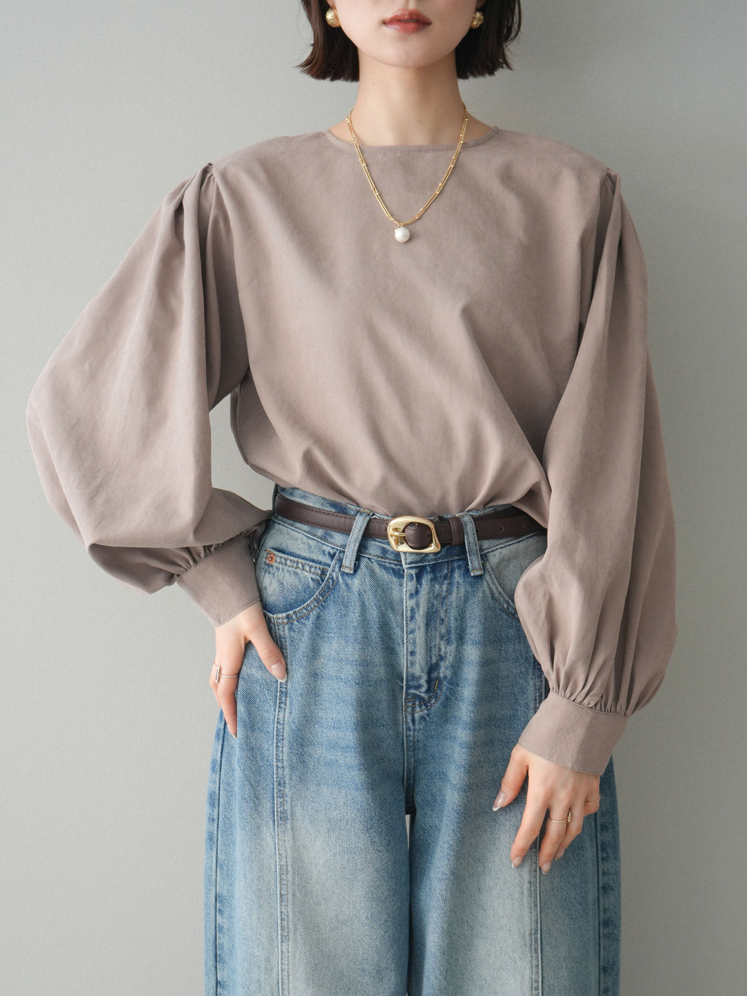 [予約]2WAYピーチスキンボリュームスリーブブラウス/greige