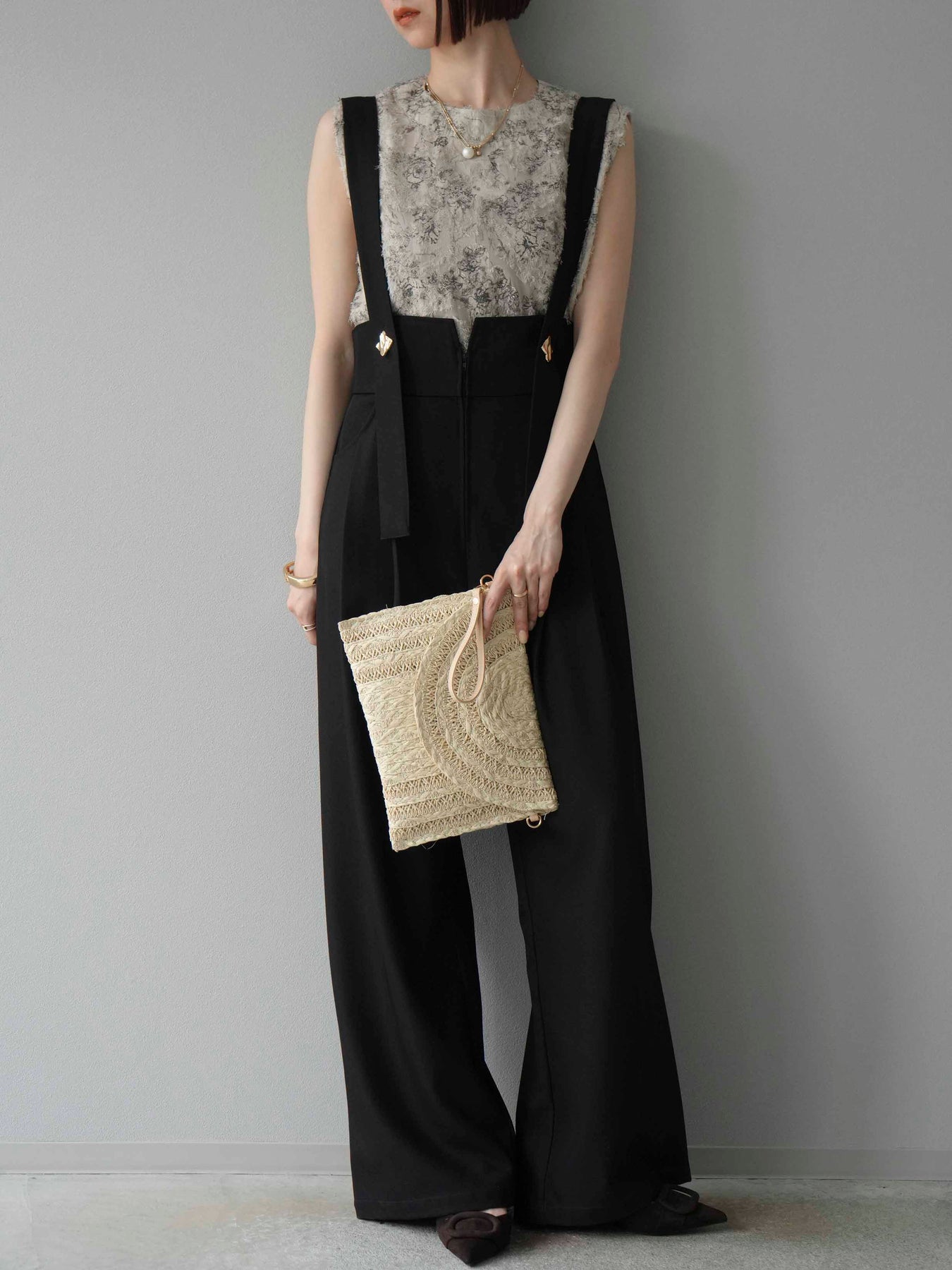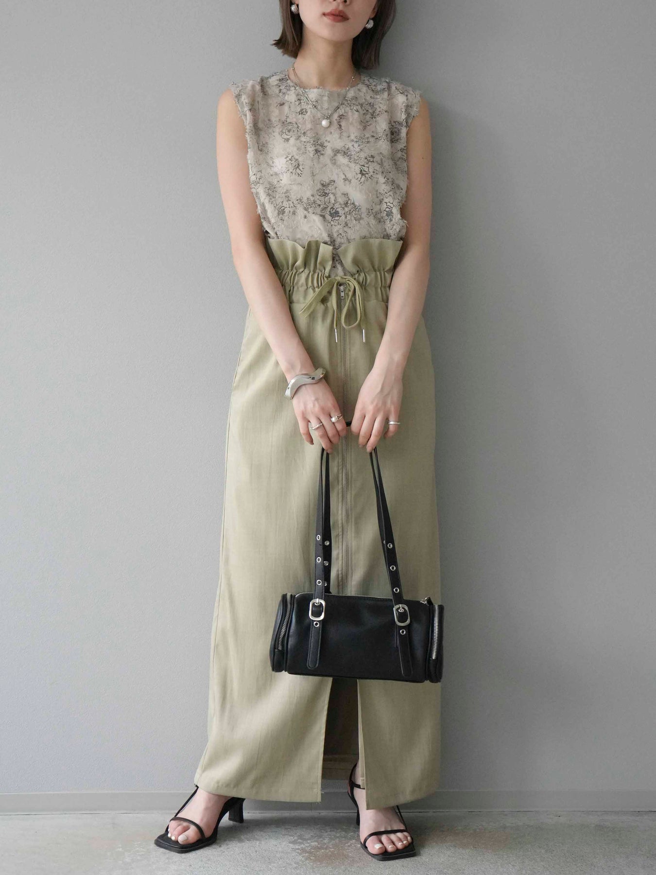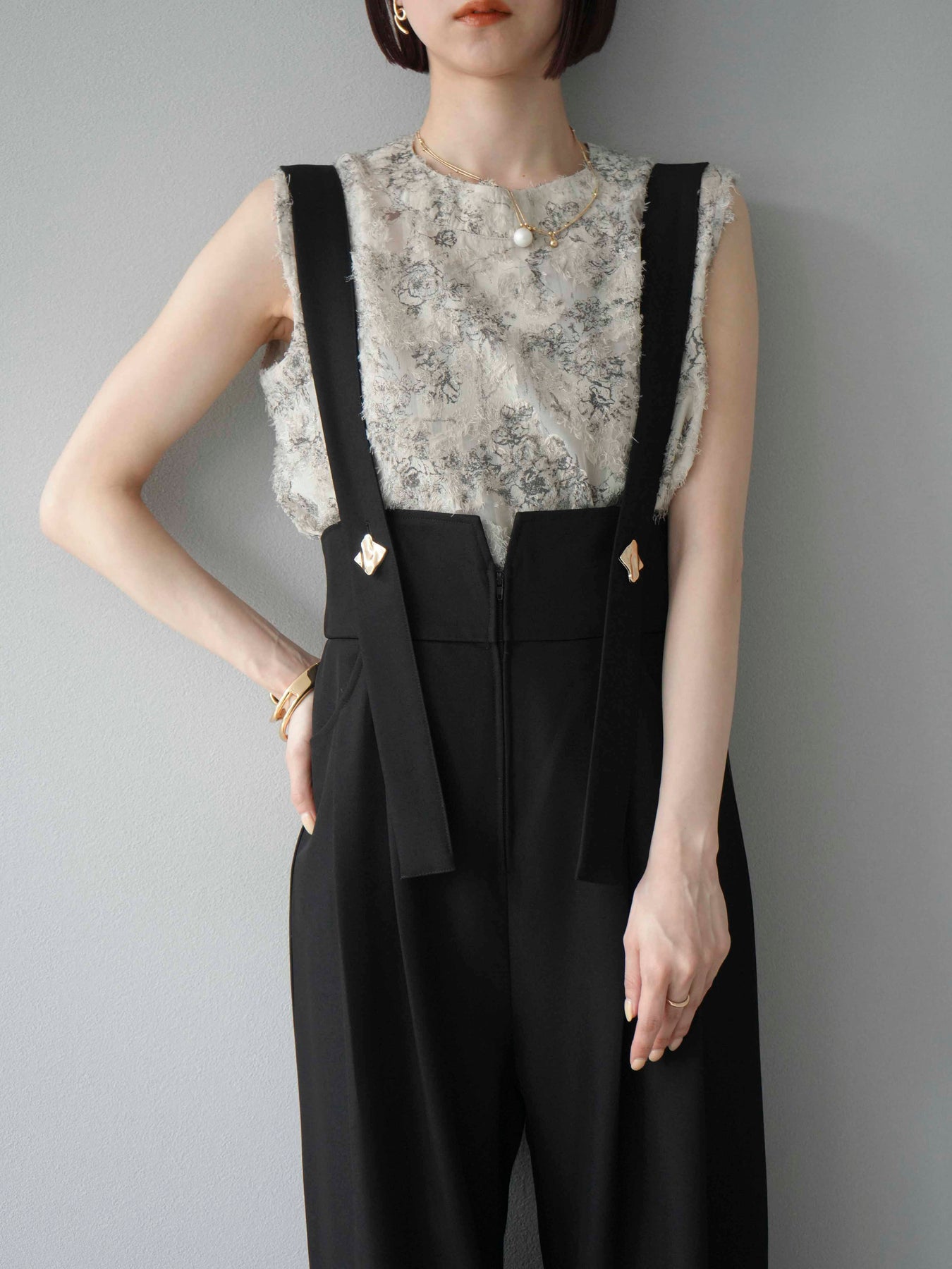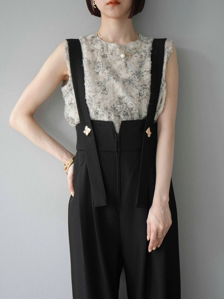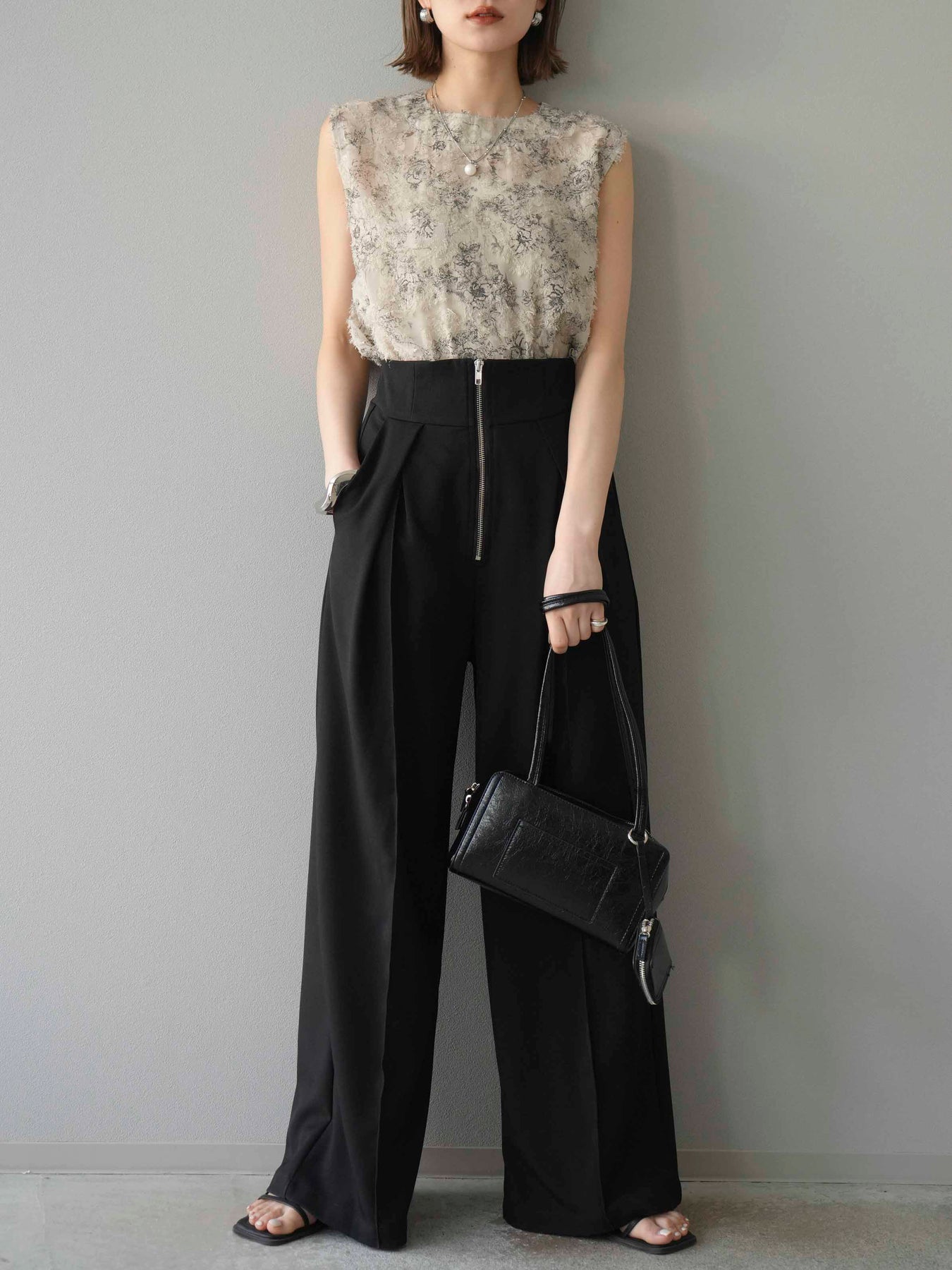 表情豊かなフリンジジャガード素材が印象的なノースリーブブラウス。繊細な柄感と程よい立体感がトレンドムードを演出し、着るだけで着映えする一枚。ボックスシルエットでゆるやかに体を包み、インでもアウトでもバランス良く決まります。きれいめからカジュアルまで幅広いスタイリングにマッチ。 ※ボトムス、キャミソール(インナー)以外の商品は一律でインナーは付属していません