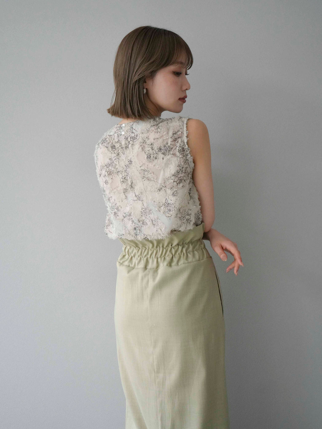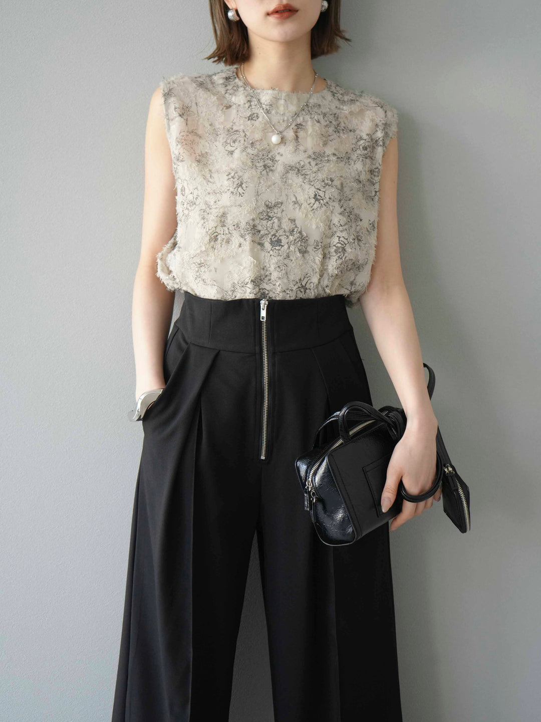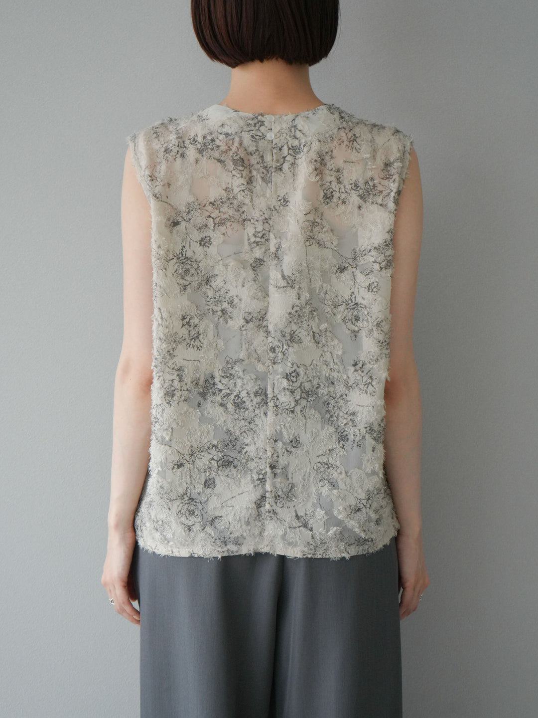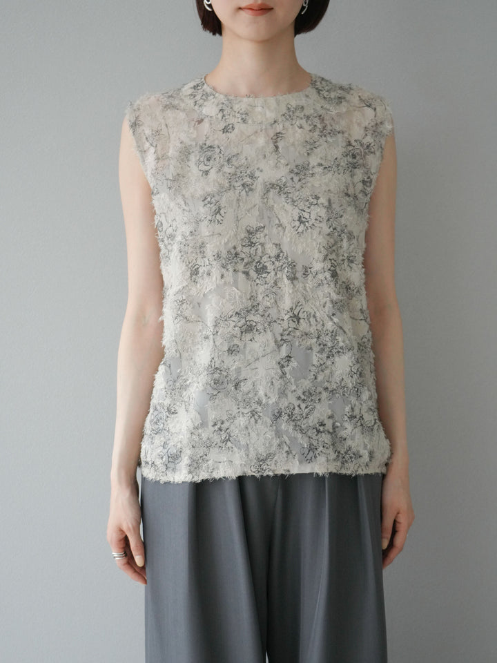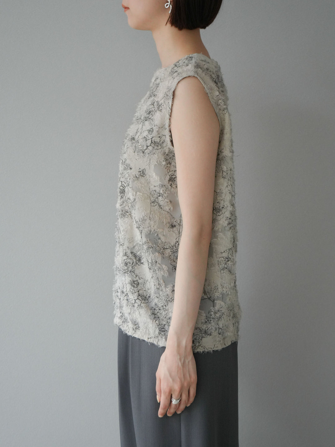 [予約]ニュアンスフリンジジャガードノースリーブブラウス/ベージュ