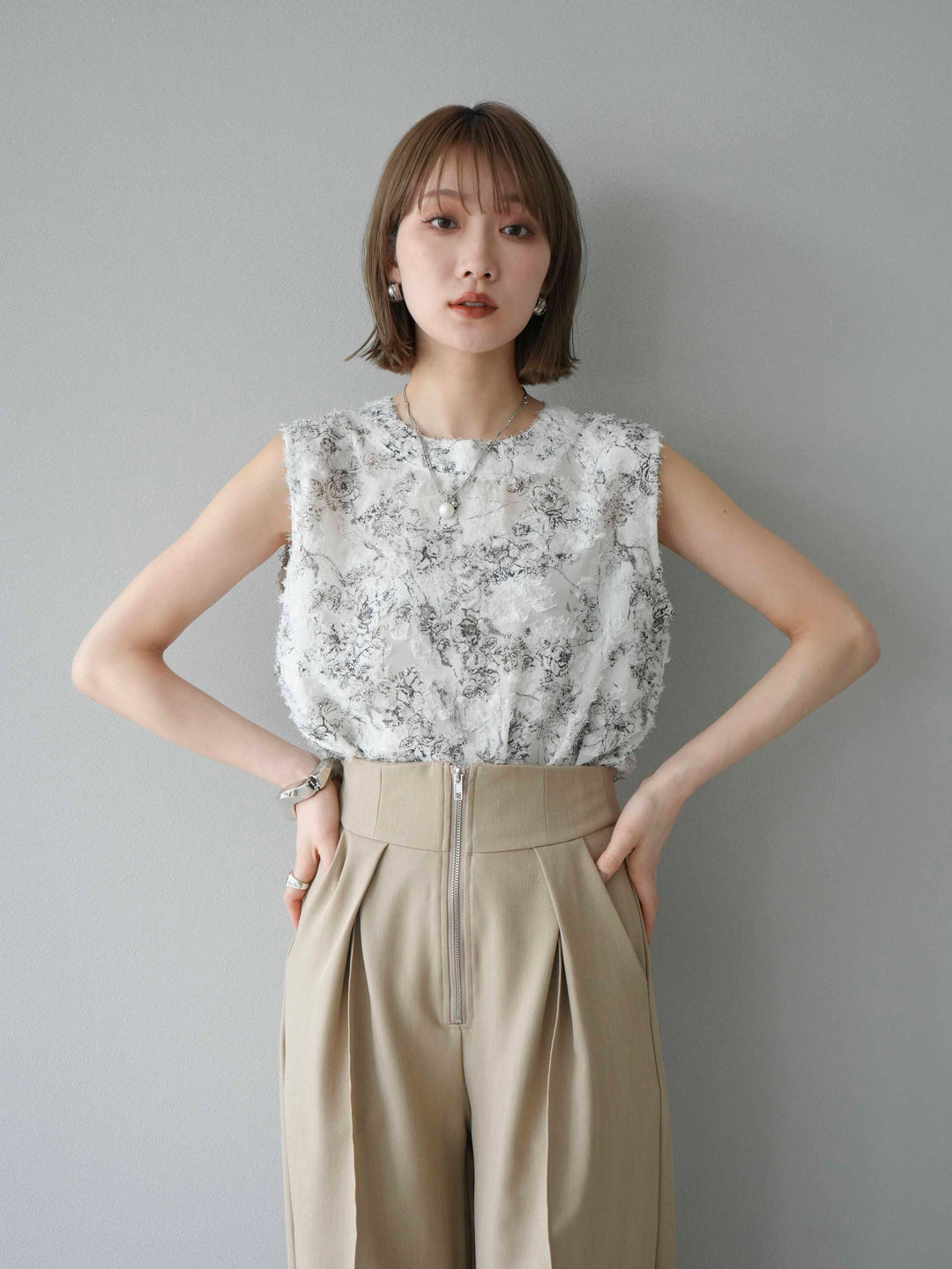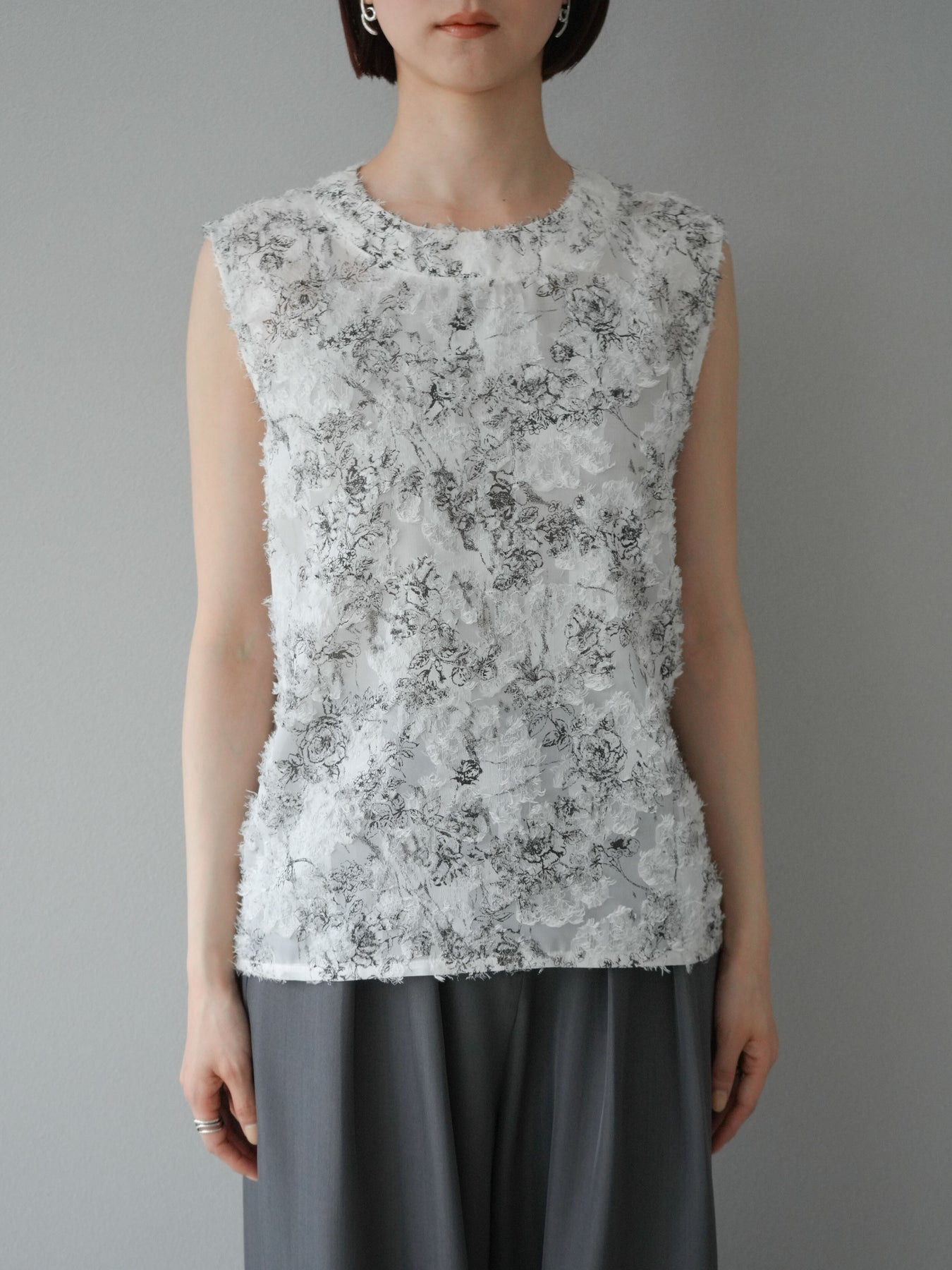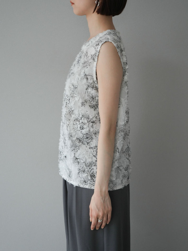 [予約]ニュアンスフリンジジャガードノースリーブブラウス/オフ