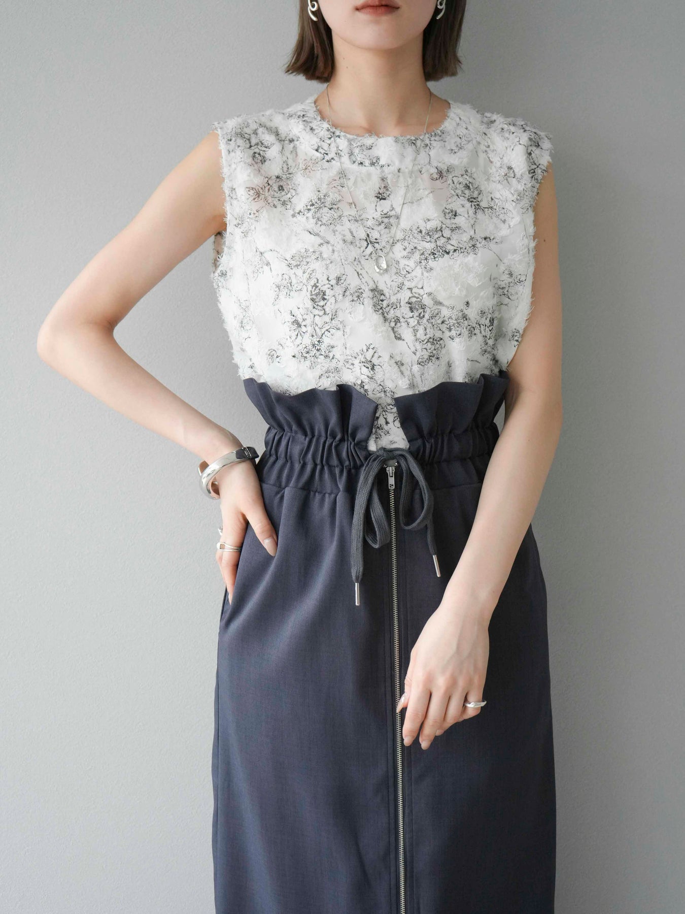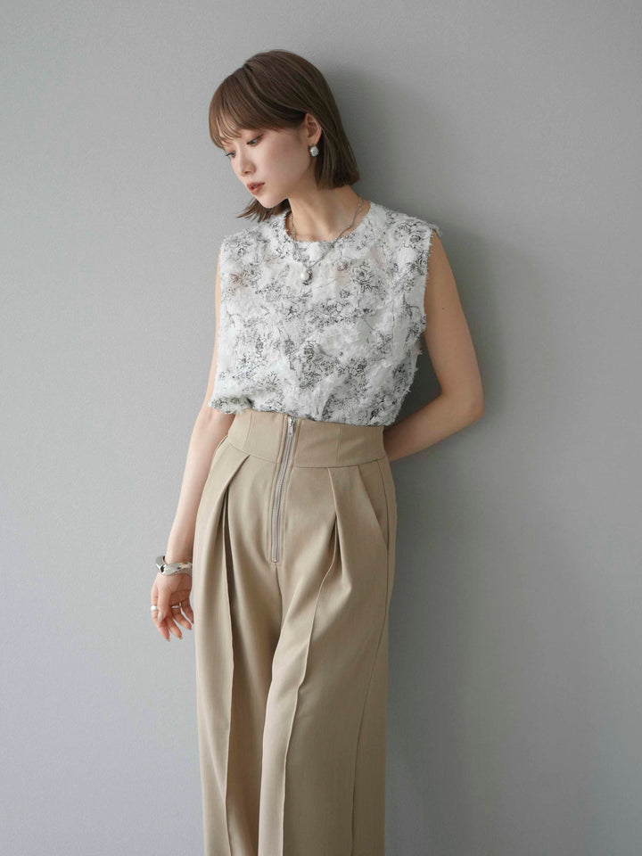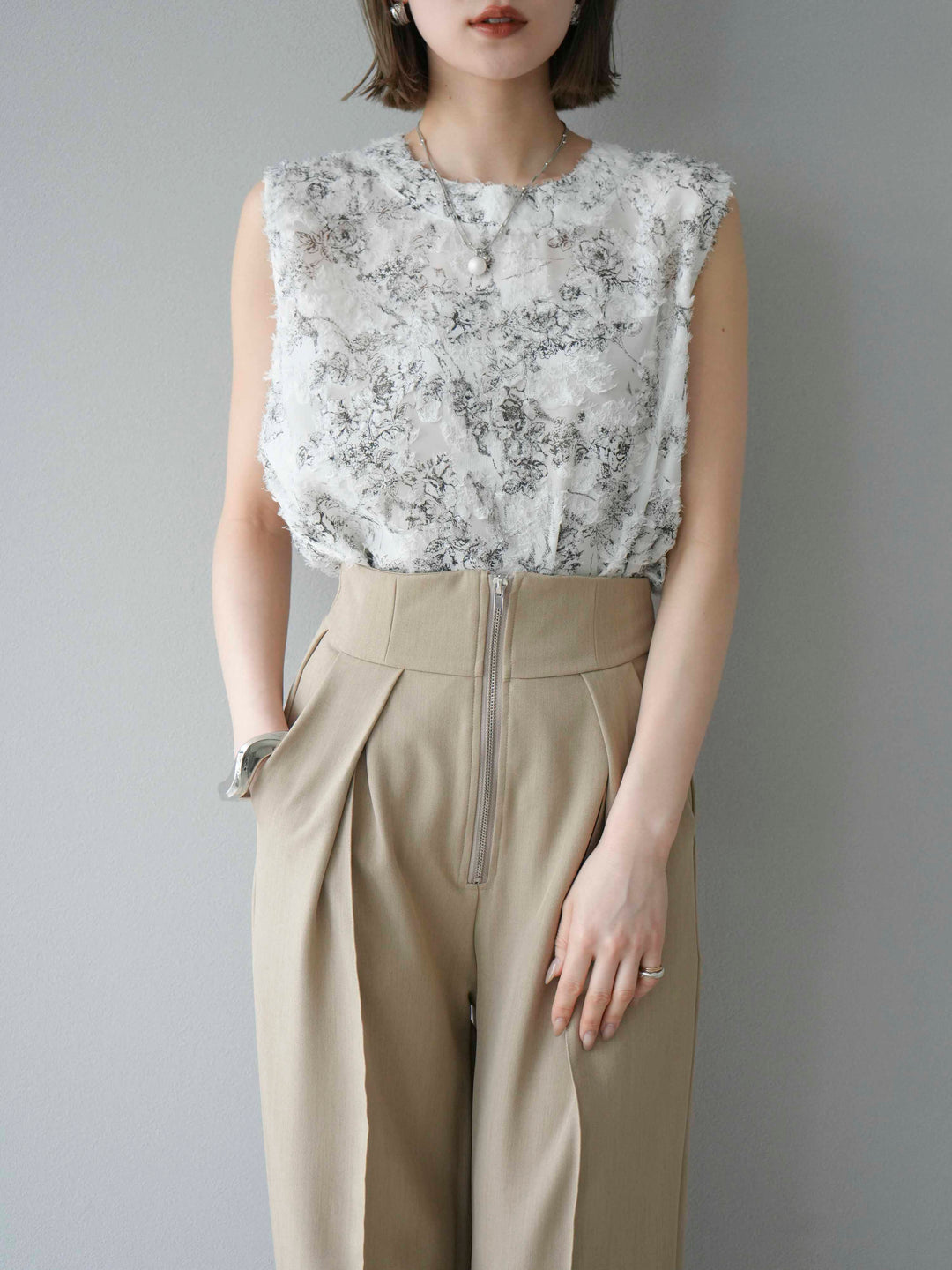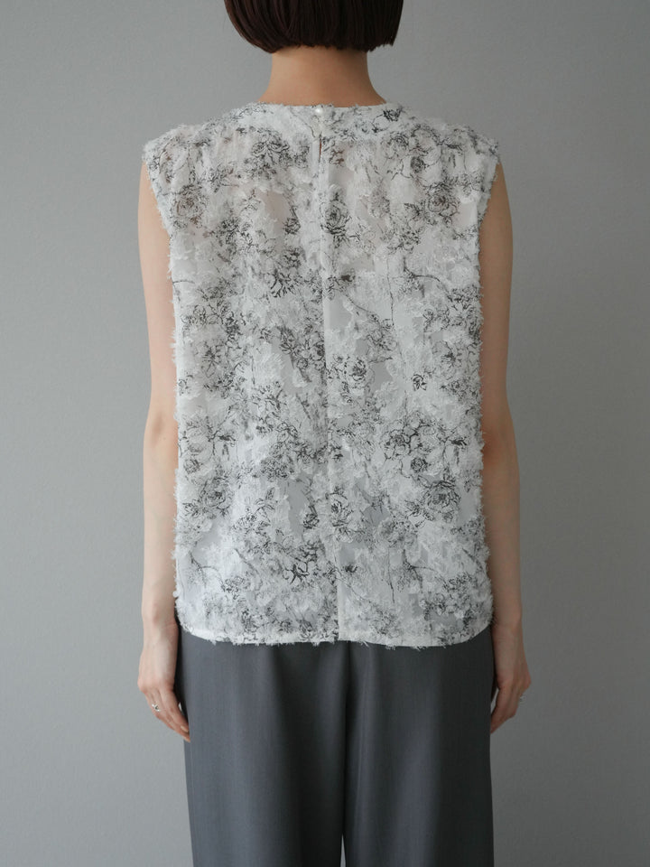 [予約]ニュアンスフリンジジャガードノースリーブブラウス/オフ