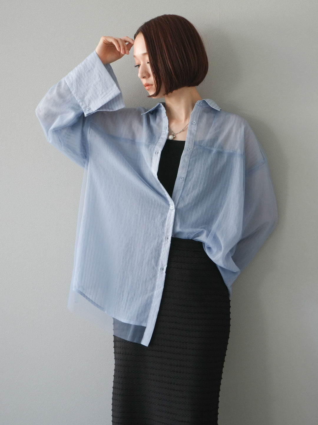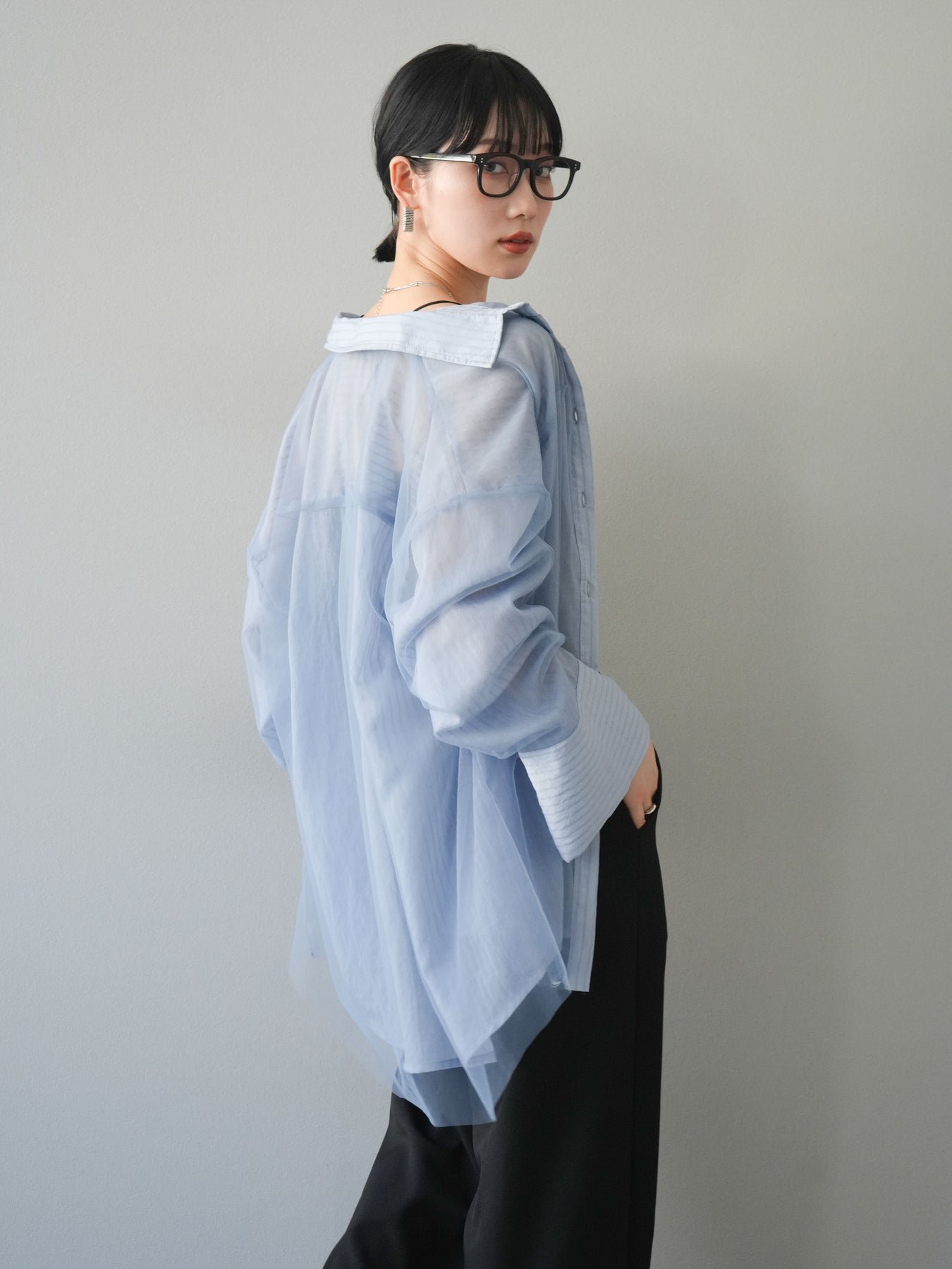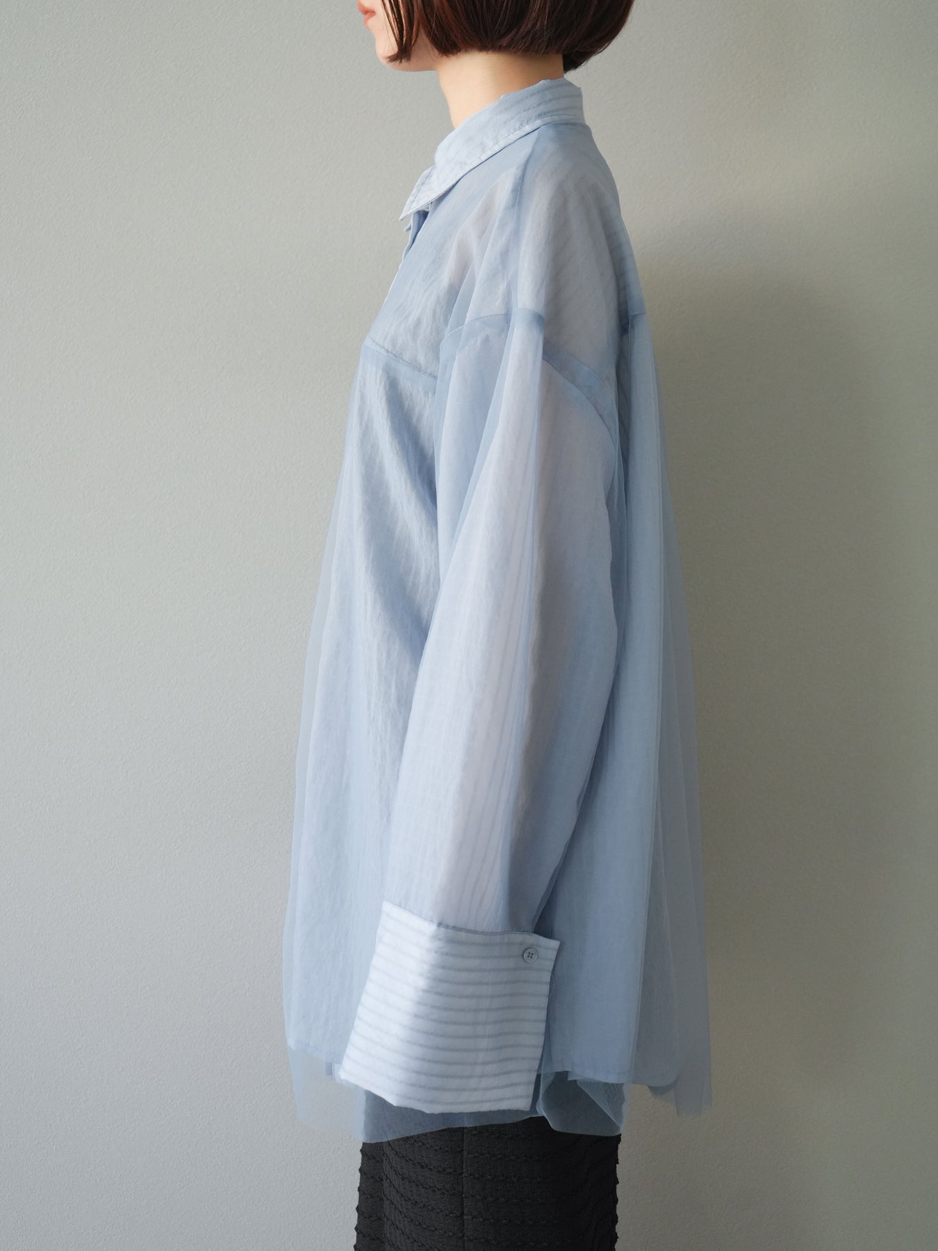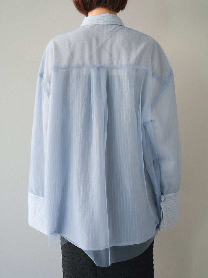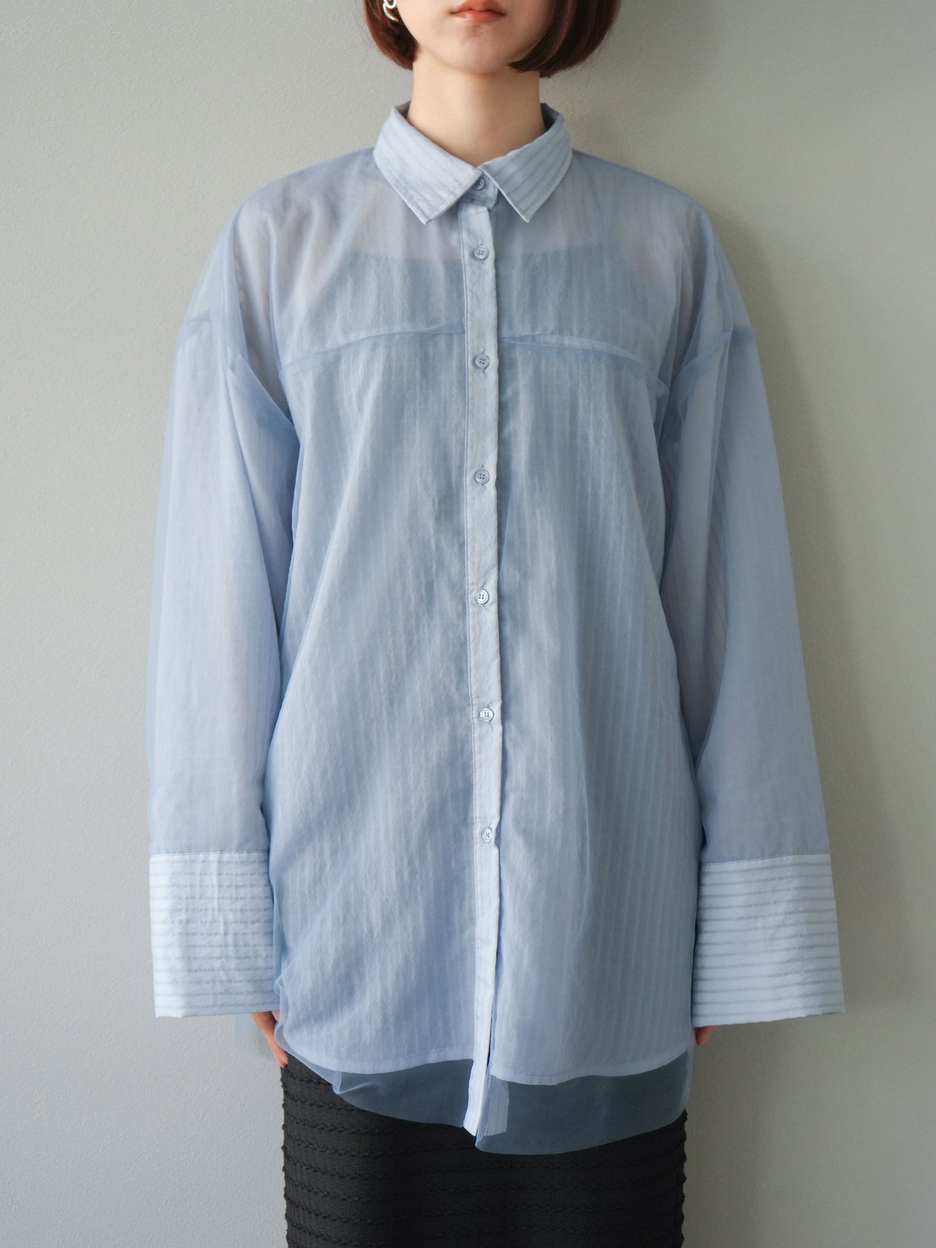 [予約]チュールドッキングシアーストライプビッグカフスオーバーサイズシャツ/ブルー
