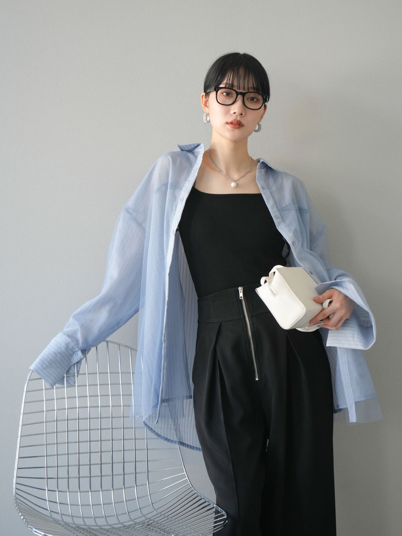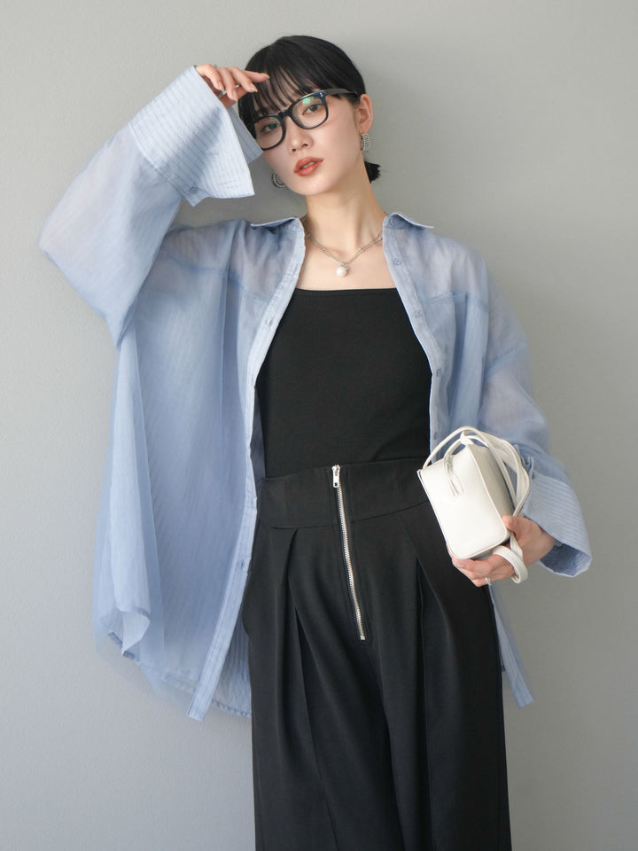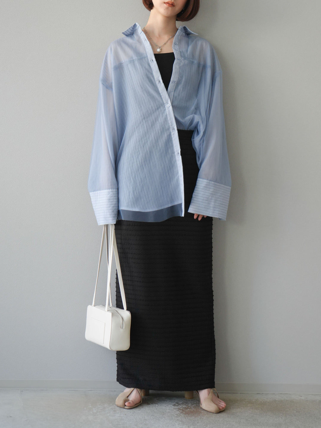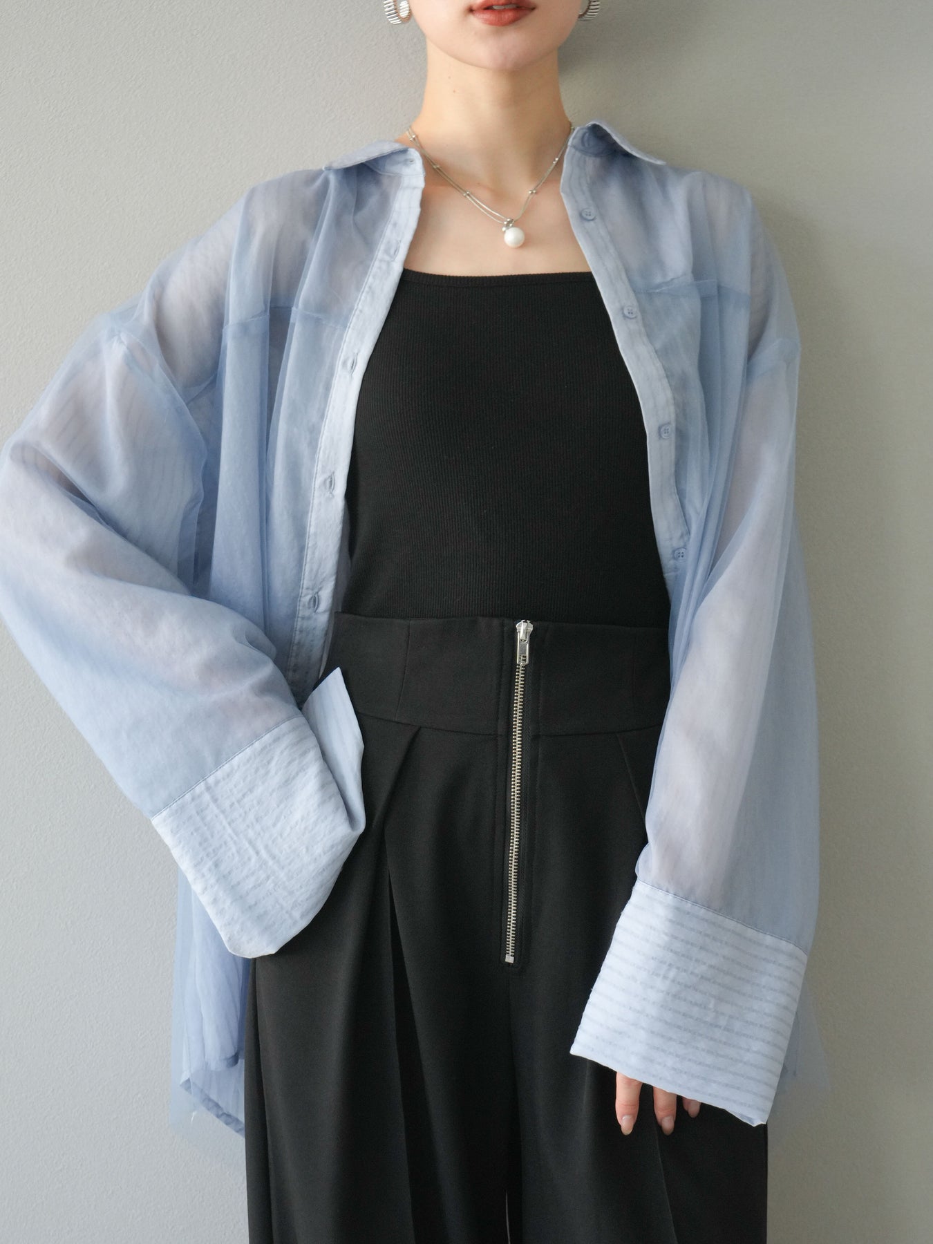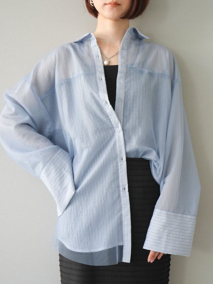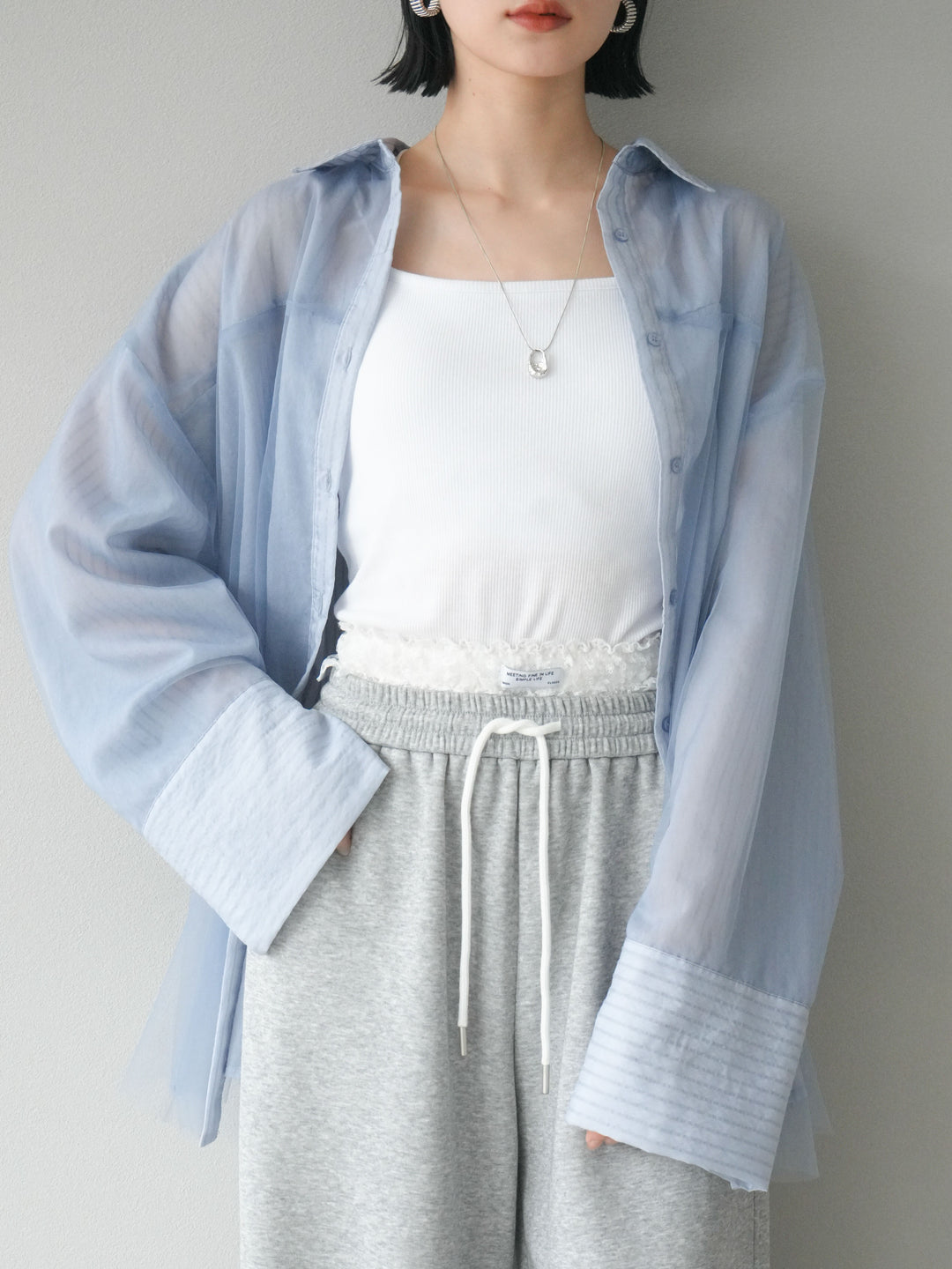 [予約]チュールドッキングシアーストライプビッグカフスオーバーサイズシャツ/ブルー