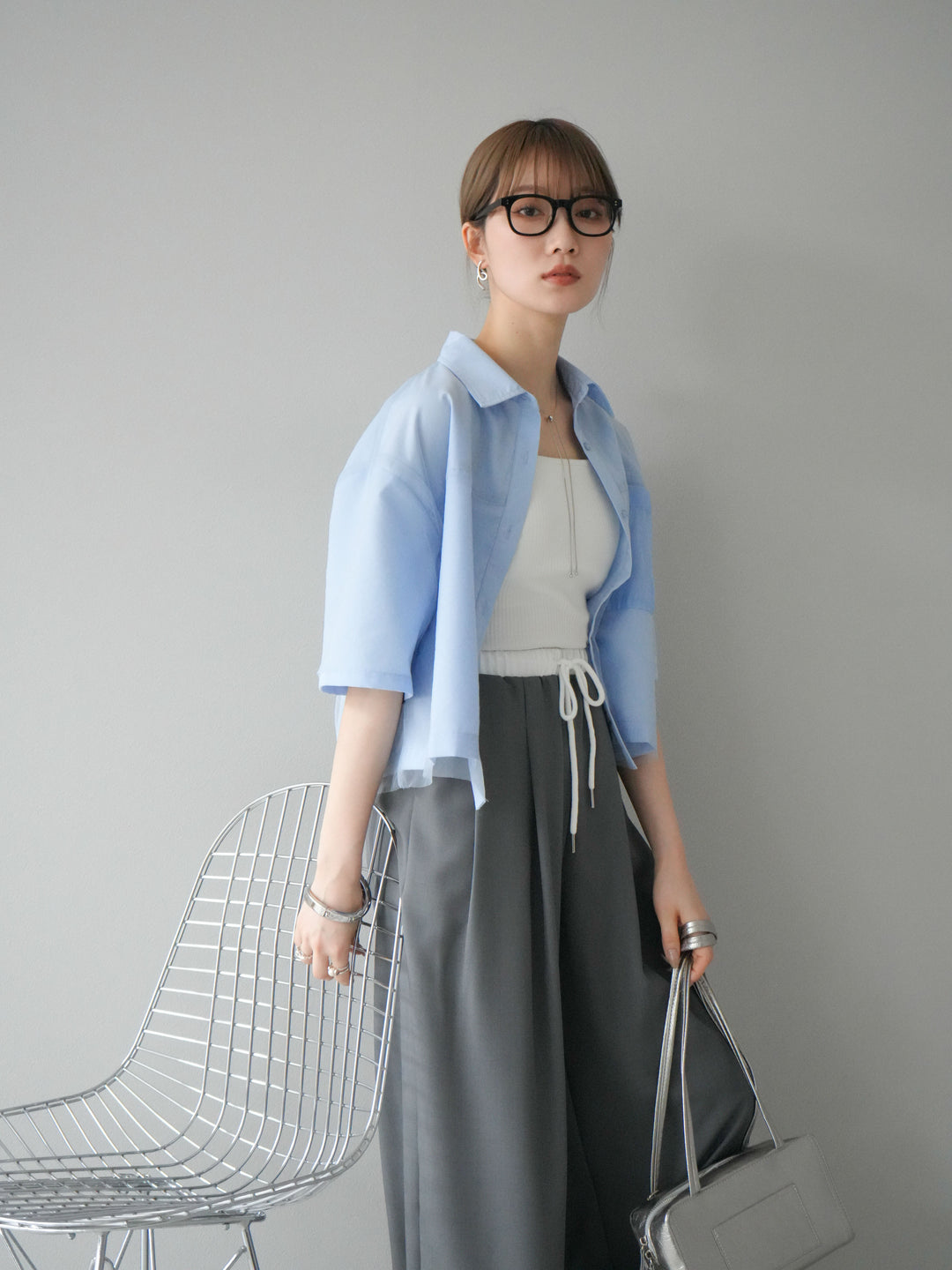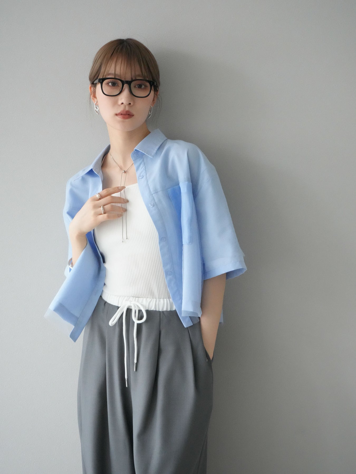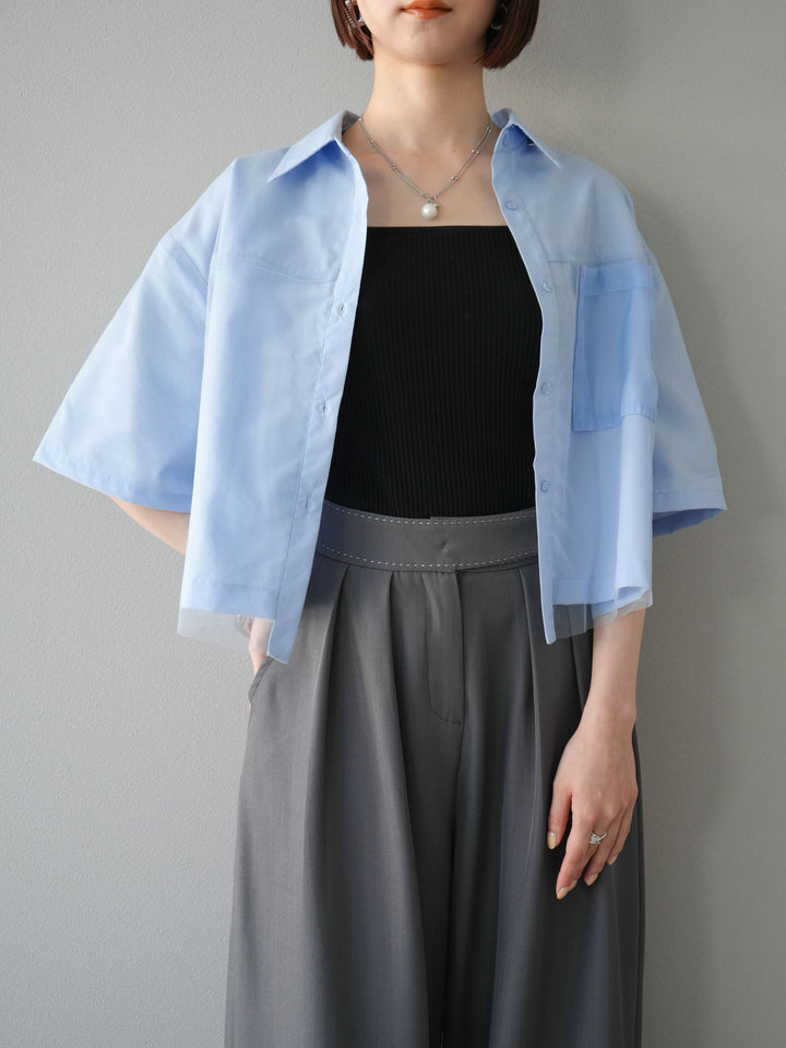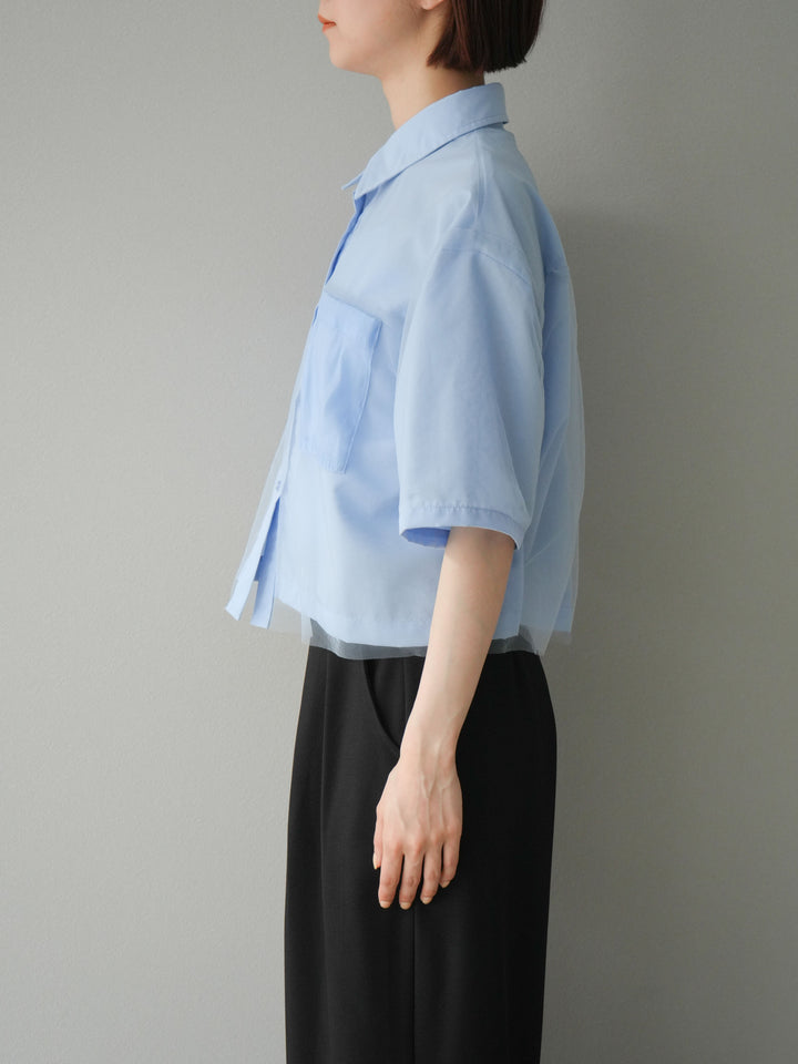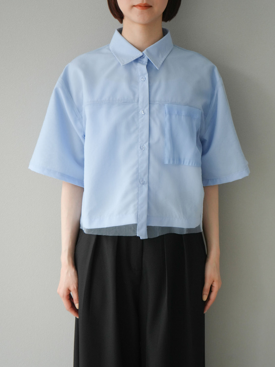 [予約]フロントシームチュールレイヤードハーフシャツ/ブルー