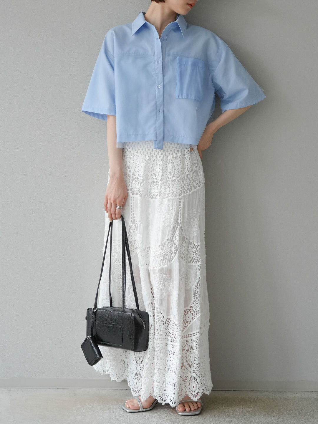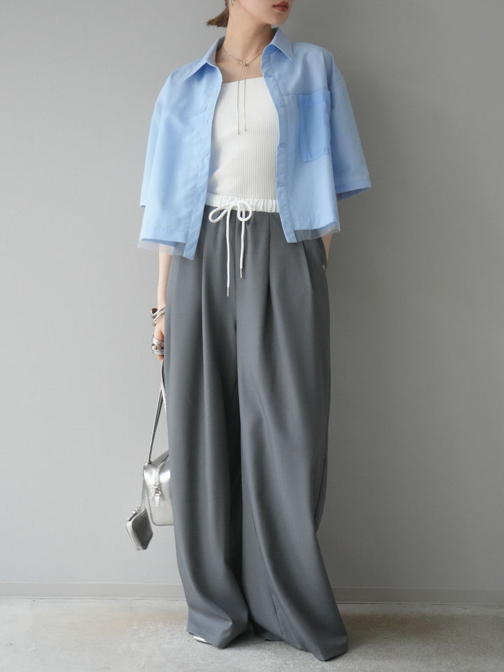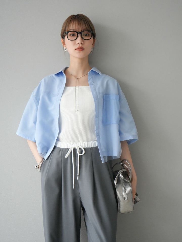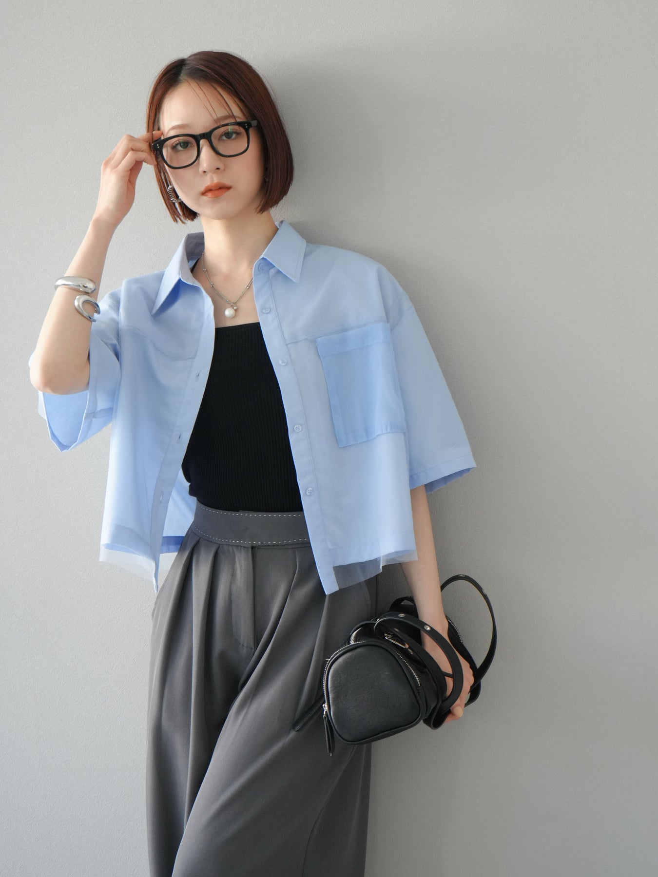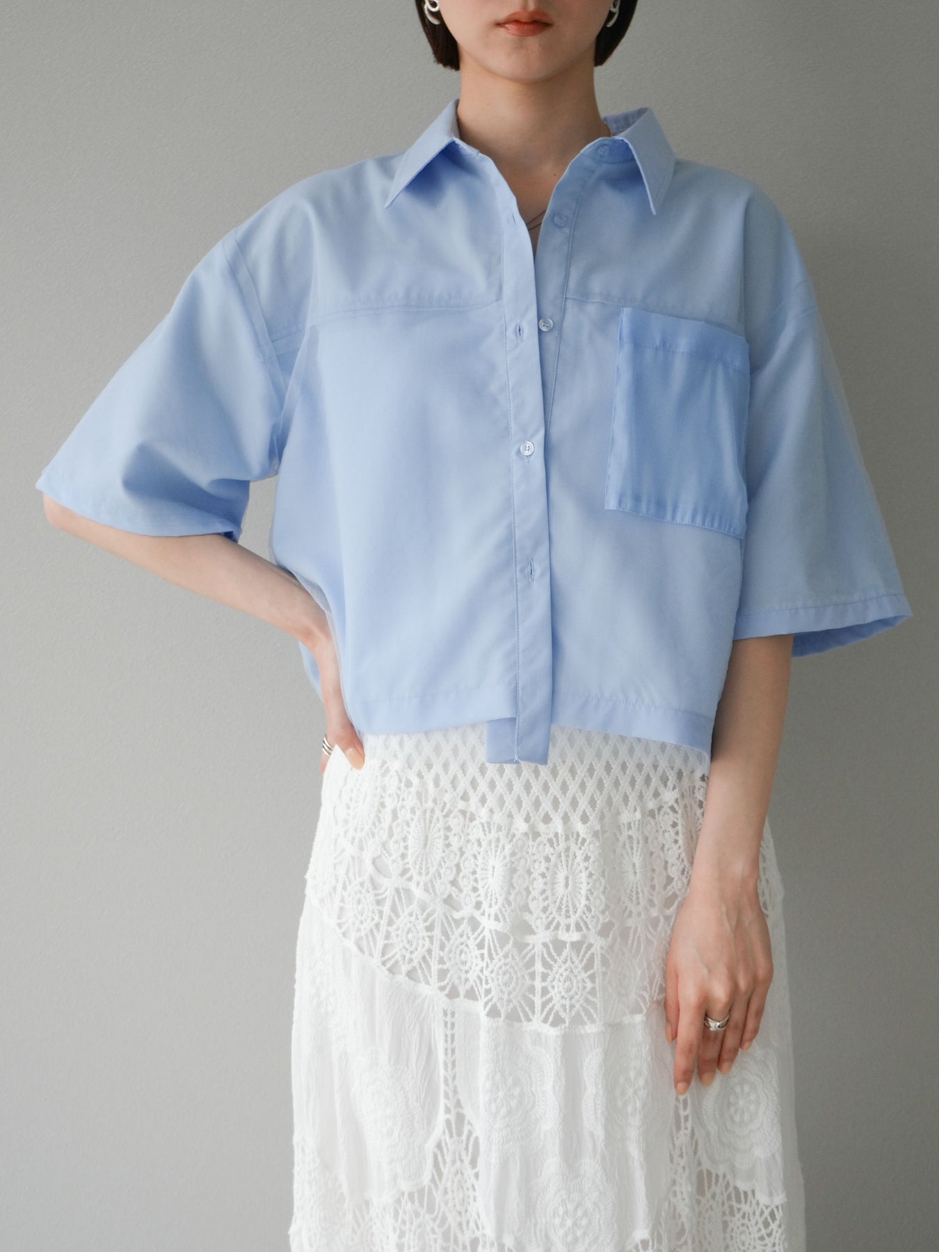 [予約]フロントシームチュールレイヤードハーフシャツ/ブルー